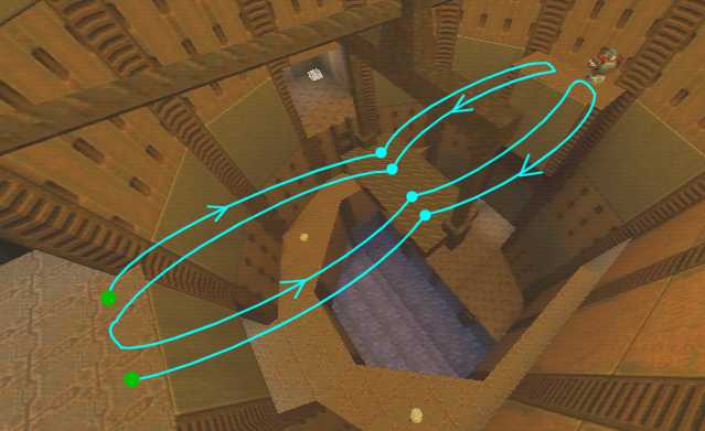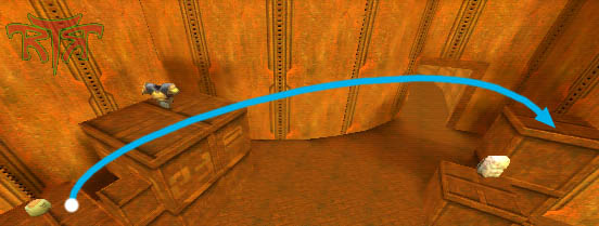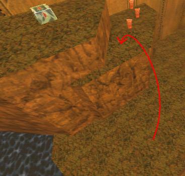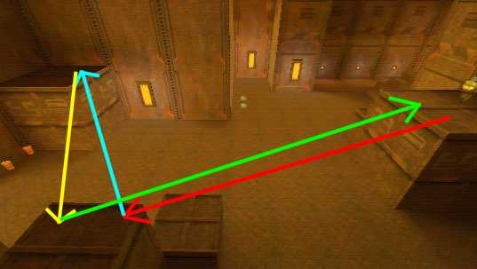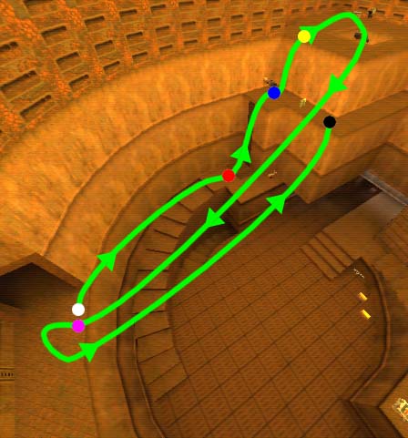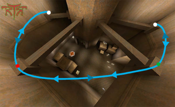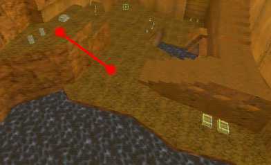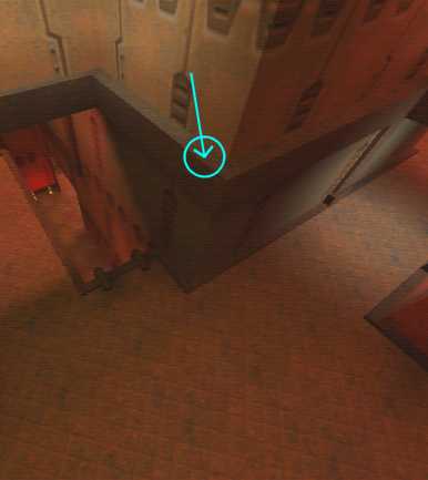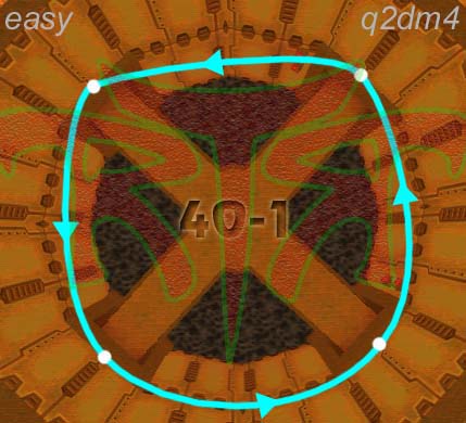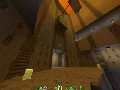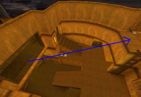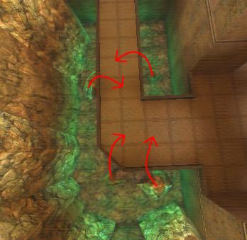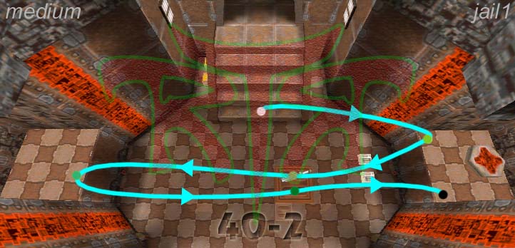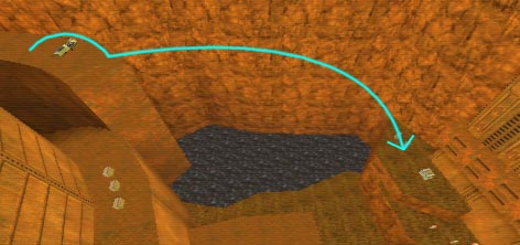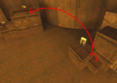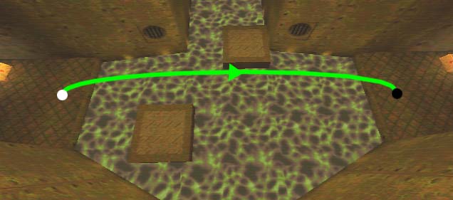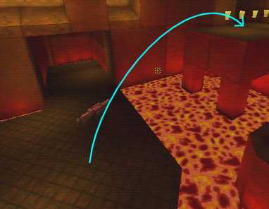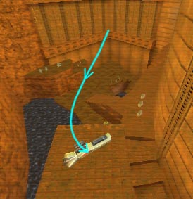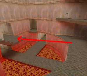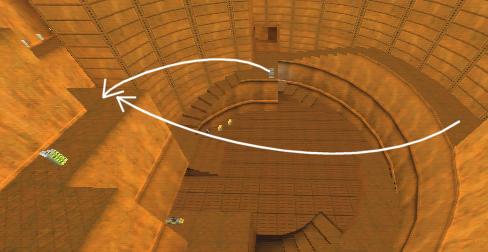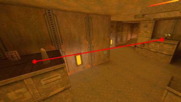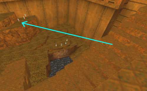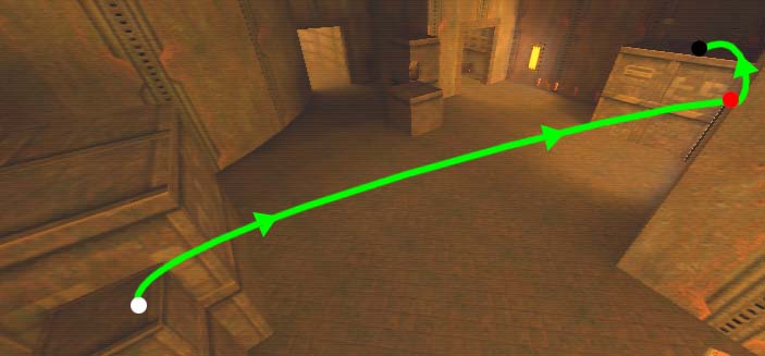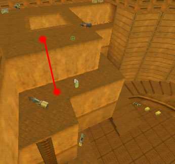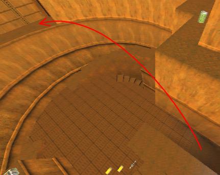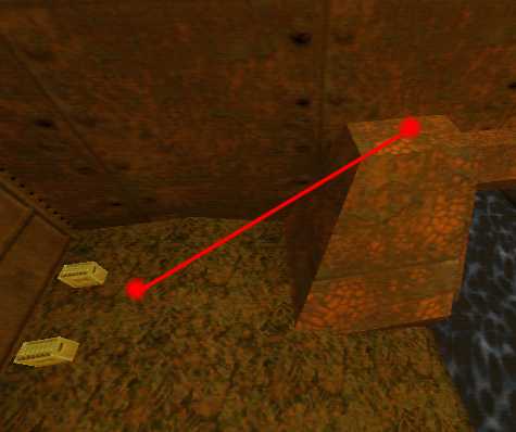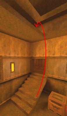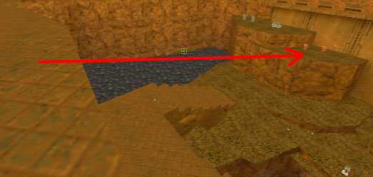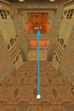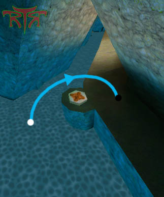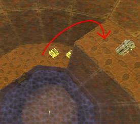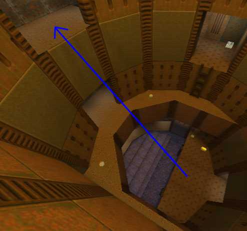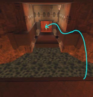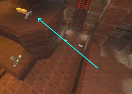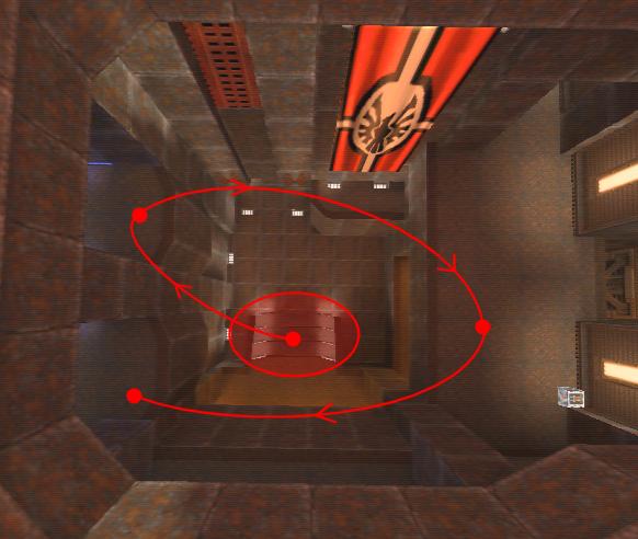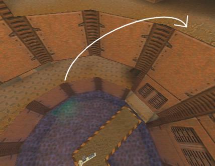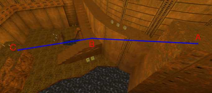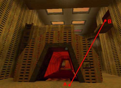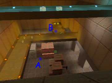 WINNER: DarkDeath DarkDeath’s on a roll here… the backwards jumping gave his entry the edge over the others, however the Artistic Award must go to Mojox who KeyGripped in a soundtrack aswell in his demo. Okay, this isn’t a very fair challenge at all to those who posess erm.. ‘framerate-challenged’ machines, but it’s such a useful and little-known trick I had to include it. On q2dm8, without using any weapons, you have to get from A to B in this screenshot without leaving the room.