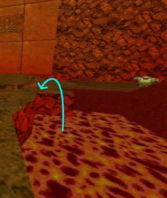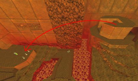 WINNER: caulfield caulfield assures me the remaining 69 health in his demo was pure coincidence =). In q2dm6; jump into the lava pictured here on the right-hand side, swim under the pipe and emerge on the other side on the ladder. No god mode allowed; just a single ‘give all’ so you must start the challenge with 100 health / 200 armour. Winner will be judged on least health lost. Note power armour, as always, is NOT permitted unless I say it is.