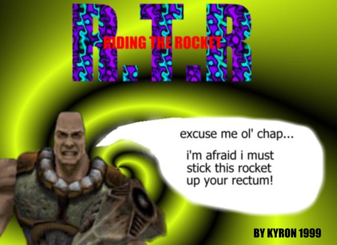 Rocketjumping is pretty simple: Look down at your feet, then fire a rocket and jump simultaneously. This is usually easiest if you have fire and jump both as mouse buttons. You will propel yourself an incredible distance upwards, but the drawback is you’ll lose up to 53 health (depending on armour and how “perfect” the rocketjump was executed). If you vary how much you look down, you can give up some height in return for distance; so if it’s distance you need rather than height you should aim at the ground infront of you so that when you fire a rocket, only the edge of the explosion hits you.