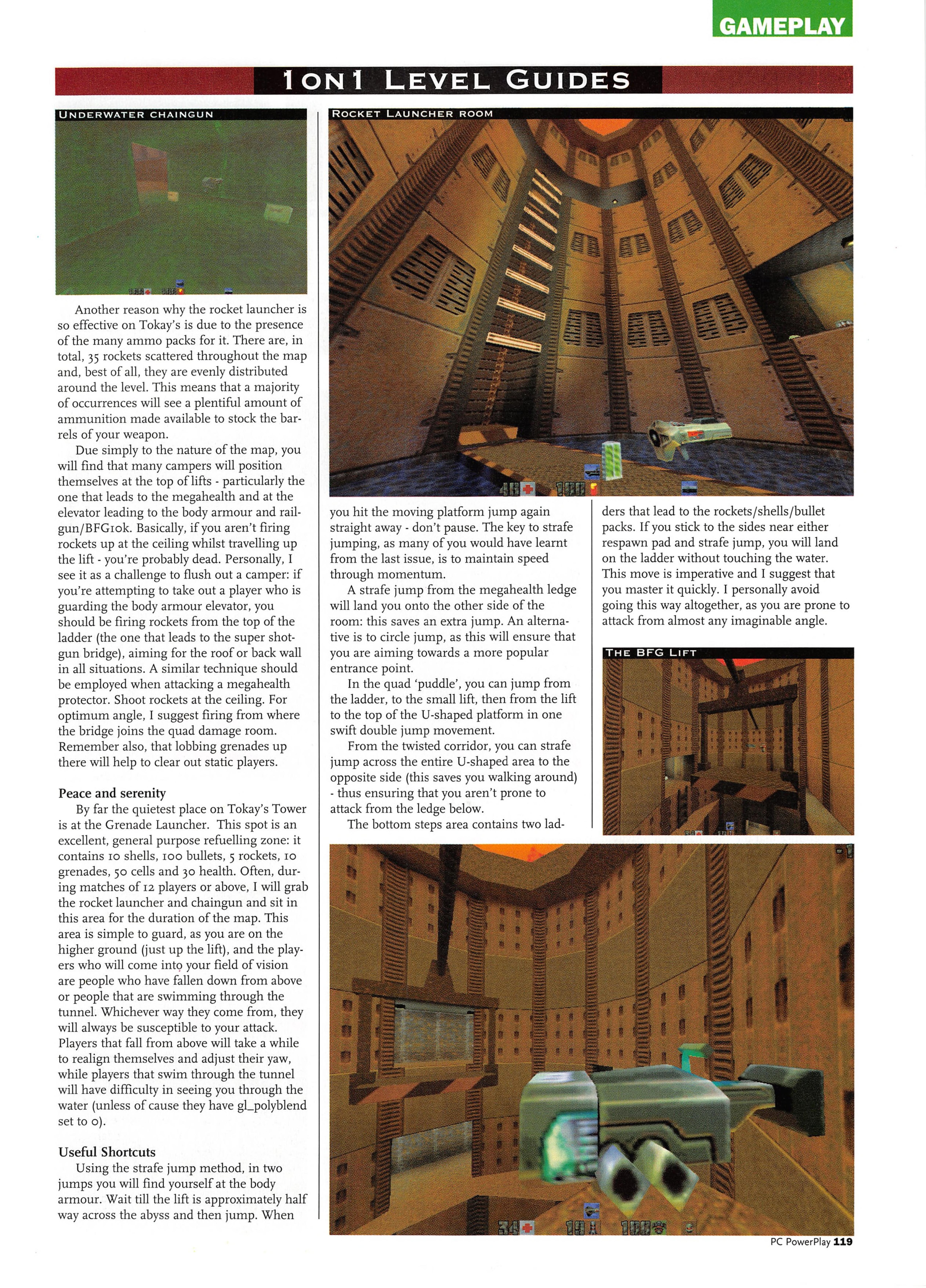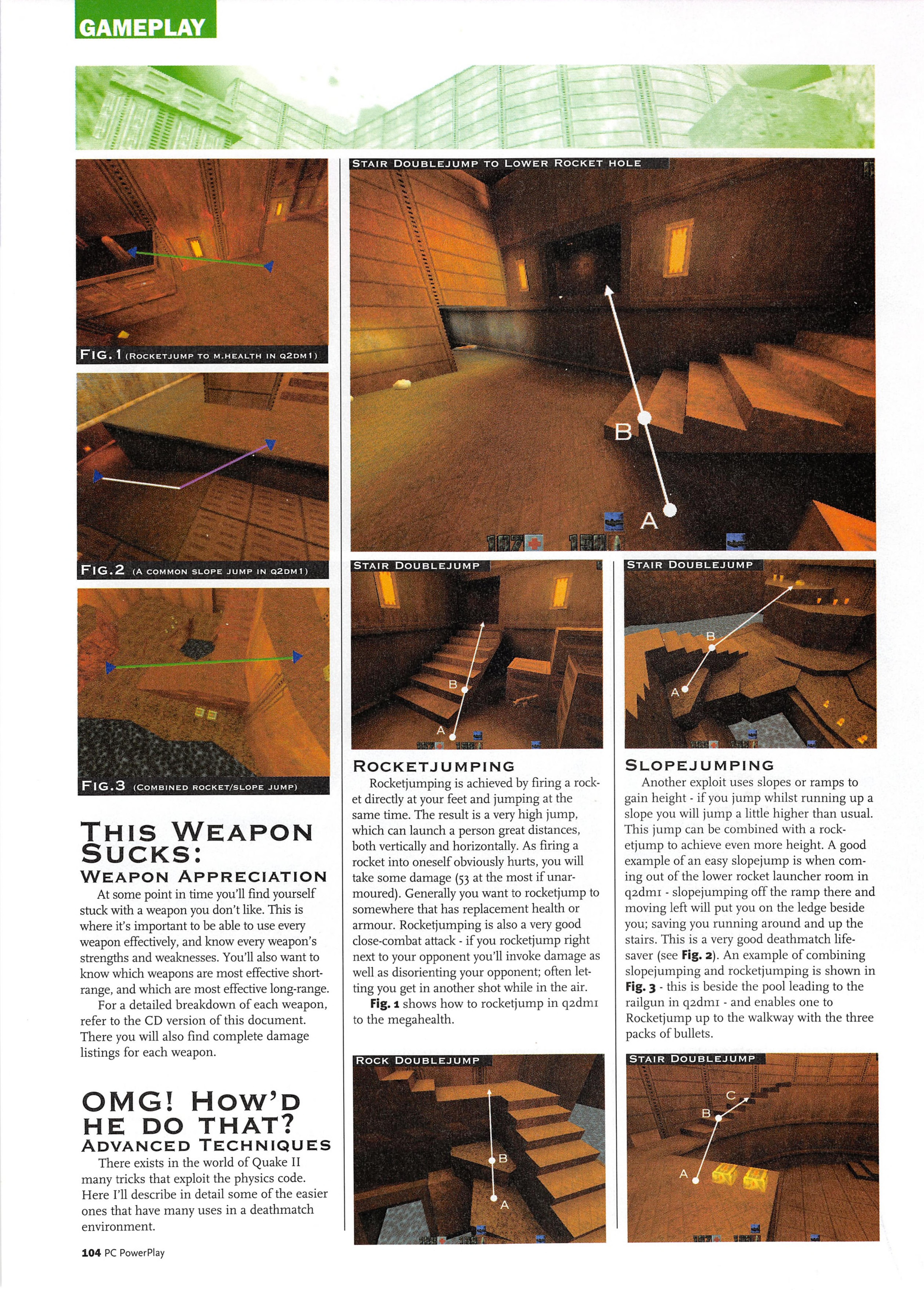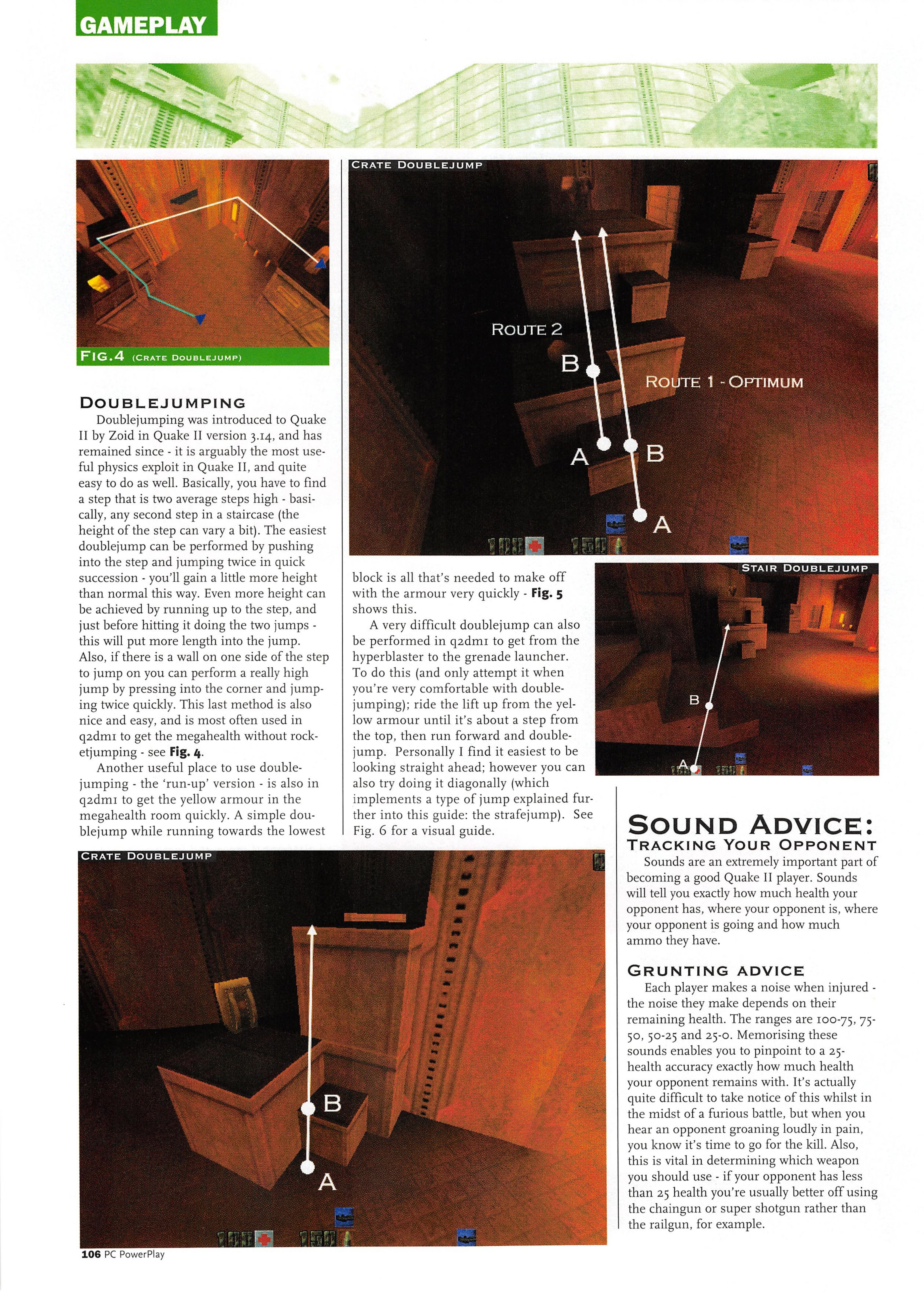 Quake II Uncovered — The Tips and Tricks of the Masters Explained Step by Step, by Kaj s8n Haffenden and Elih Caulfield Brading On April 1, 2020 By DondeIn Community, Entities, Maps, Skills, The Quake 2 community Q2DM1 and Q2DM2 Strategy by Elih Caulfield Brading -Excerpt and images courtesy of the Internet Archive, PC Powerplay magazine, Issues 036 and 037, June and July, 1999