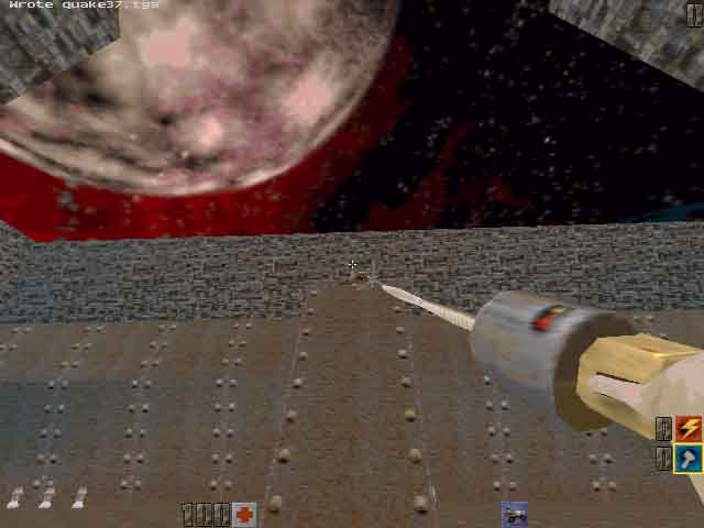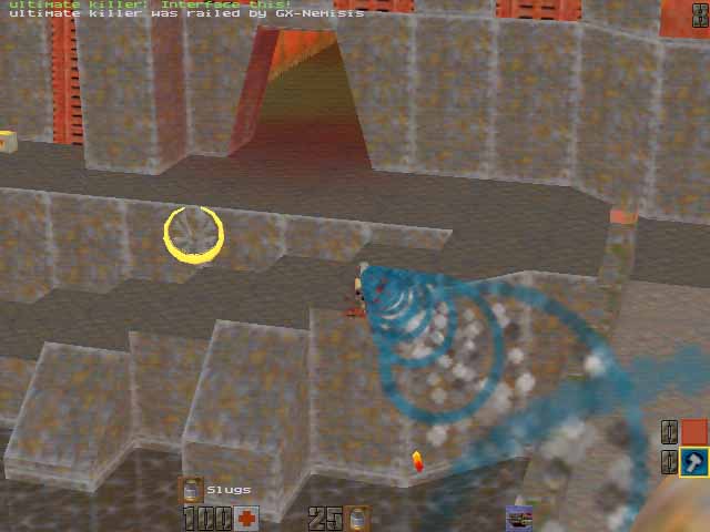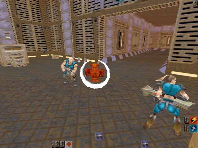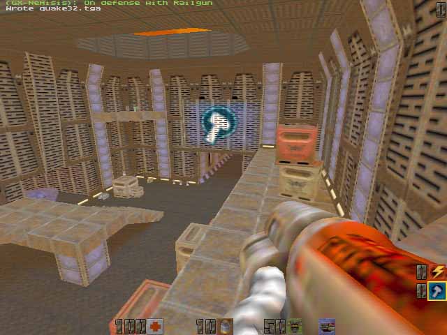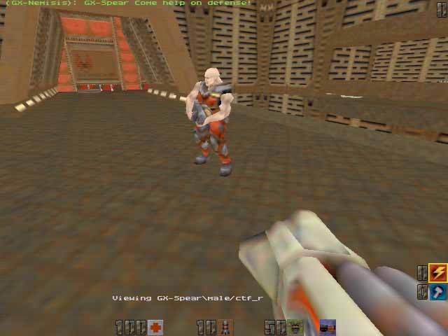 In both of these cases, you need to have a “Secret Service” mentality. By this I mean you need to be able to throw yourself in front of a bullet if it means saving the flag carrier. This may sound counter-intuitive from normal quake playing, but it is quite necessary in CTF. You have to pretend that the flag carrier is the president, and you are his top SS agent. If you see a rocket flying his way, push him aside and take it yourself. If you die, but he caps, then your team comes out ahead (besides, you will respawn anyway). Win one for the Gipper!