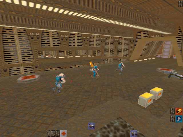 Lastly is visual communication. The addition of the waves in Q2 is a good idea, but in the fast pace of CTF games they just can’t keep up. They take too much time to do, plus you have to keep the right visual angle on the person waving. In a fast game there is very little time to look at a player. They are also lacking sound. If you are not paying attention to the players around you a hand signal can be easily missed, while a verbal or textual communication is accompanied by a auditory stimulus. (big words!)