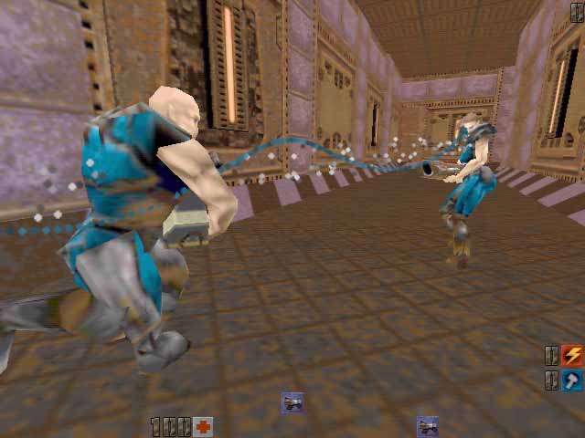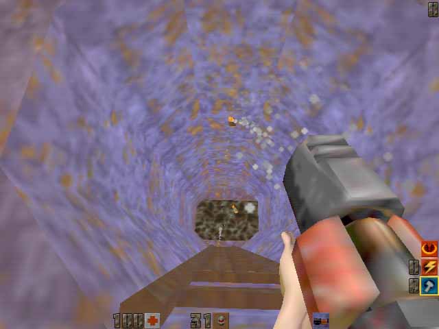Now that you have weapons and armor, you need to get to the enemy base. This is where knowledge of the map becomes tremendously useful. In all of the CTF maps (the maps that came with the original patch), there is more than one way into the enemy base. The “main” entrance into a base is the one that is easier to access, and will have more people coming in and out of it. Going into an enemy base this way will lead to more encounters with the enemy, whether they are going into their base to return to defense or if they are enemy offense going towards your base. Getting yourself into the enemy base through this entrance is faster in the sense that it is more direct, but this path will also lead to more encounters with the enemy. These fights will deplete your ammo and armor, and you may even be fragged before getting into the base. The main entrance will also be more likely to be covered by a sniper. Running into a base, fully decked out and ready to rumble just to be railed the second you step into a base is not the ideal offensive tactic.