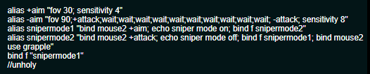 Here are a few example configs. These configs are meant to be used in public pickup games, as more complex bindings are needed for more advanced team tactics. Again you should use a key configuration that is the most comfortable for you.