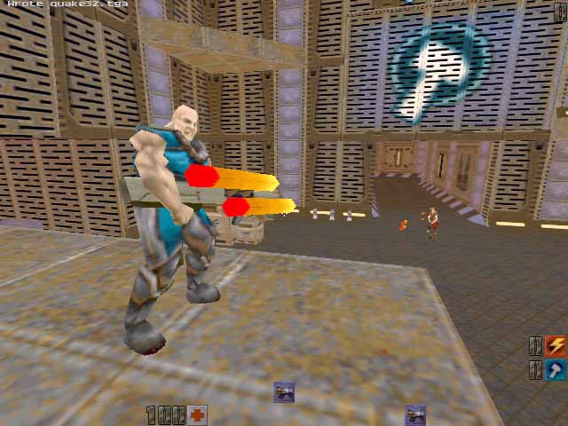 All weapon, armor, and item respawn times are the same as they are in normal Quake and Quake 2. The new Tech power-ups respawn times are different than normal items. At the beginning of a game, they will spawn in at a random player respawn point, and “jump” a little off to the side. Any time the techs are left on the ground for 60 seconds, they will respawn at a random player respawn point.