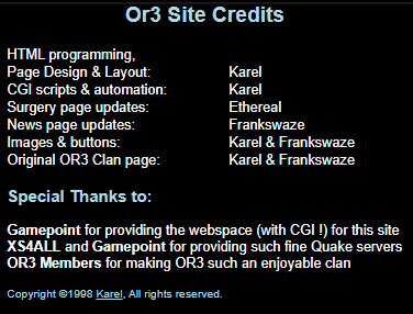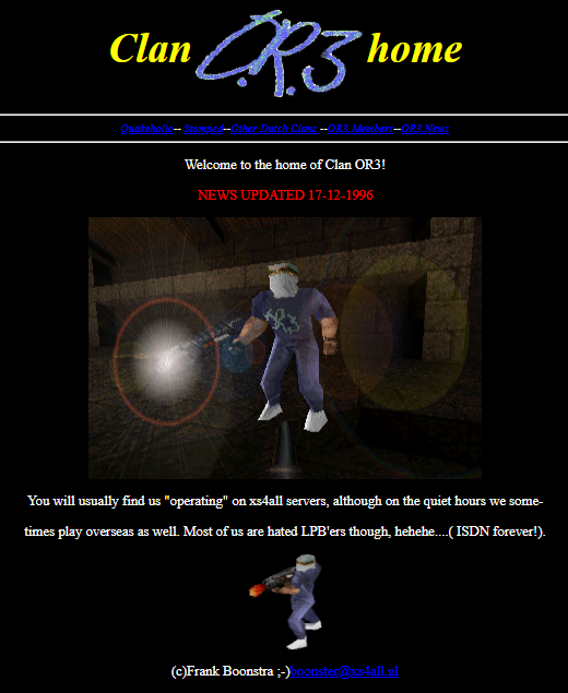 “Welcome to the home of Clan OR3! News updated — 17-12-1996. You will usually find us ‘operating’ on xs4all servers, although on the quiet hours we some- times play overseas as well. Most of us are hated LPB’ers though, hehehe… ( ISDN forever!).” (c) Frank Boonstra ;-)