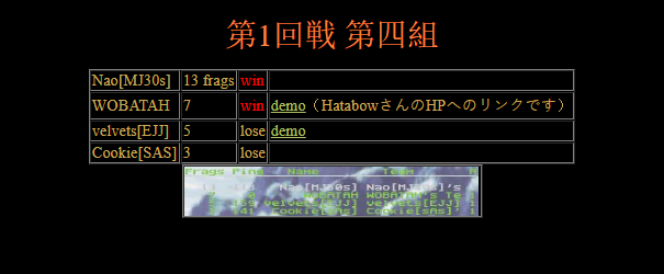 https://web.archive.org/web/20010525113317/http://majin30s.w-w.ne.jp/events/2kaitaikai/kingofdm/dmfinal/INDEX.HTM