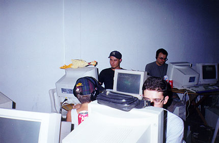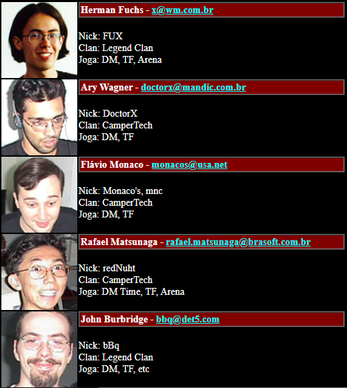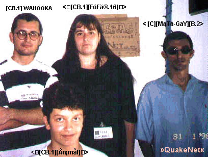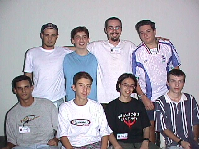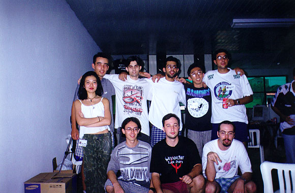 A QuakeNet não foi uma idéia isolada. Foi o resultado de uma experiência conjunta de um grupo de amigos que já estava mais do que acostumado a fazer encontros “micrados”, mas nunca numa escala tão grande como foi essa QuakeNet. Apesar de alguns bicões que só apareceram neste encontro (como o locutor que vos fala, ou melhor, digita :), esse grupo – composto em sua maioria por membros do demogroup theEnd (que são coincidentemente, também na sua maioria, membros do Clan CamperTech) se esforçou imensamente para que a QuakeNet fosse o sucesso que foi, muitas vezes sacrificando horas de almoço, dias de trabalho, noites mal dormidas, espaço ocupado no bolso e suor cerebral. São eles:
