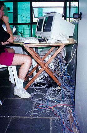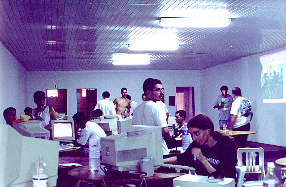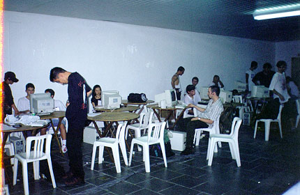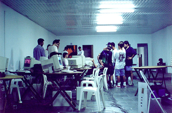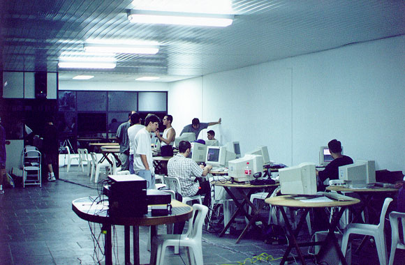 Com já foi dito, a primeira QuakeNet foi realizada entre os dias 30 de janeiro e 1º de fevereiro de 1998, em São Paulo, SP. Tendo como palco um salão de festas alugado na móoca. Planejado para até 150 pessoas (sem computadores :), o salão ficou pequeno para o número de pessoas que compareceram – 77 – e seus micros – 46 no total. Não esperávamos tantas pessoas (nem tantos micros). No entanto, tudo correu bem e o encontro foi um sucesso de crítica e de audiência!