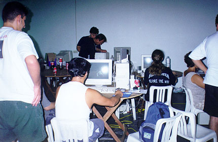 Bastante comuns em países com uma maior agitação ao redor do mundo dos computadores (leia-se Estados Unidos), esses tipos de encontros visam não só aproximar as pessoas um pouco mais – afinal, quem é que não quer conhecer aquele cara de nickname esquisito que você vê todo dia no servidor? – mas também jogar numa rede local, gozando dos prazeres de um ping ínfimo (40, em média), evitando assim as enormes travadas que são comuns ao jogar via Internet logo na hora que você ia dar aquele tiro. ;-)