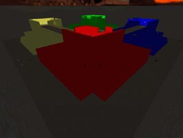 Action Quake 2: Deathmatch — 9 towers connected by walkways. Each tower has a weapon and ammo for that weapon.