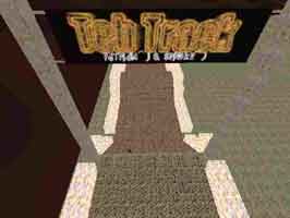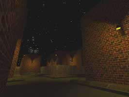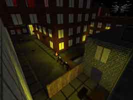 Action Quake 2: Deathmatch, Teamplay — A small city with a small hotel and other areas. There is a stack of boxes in an outside area of the map. There is a special jump technique that must be used to jump ontop of the boxes (other than 100+ fps.)