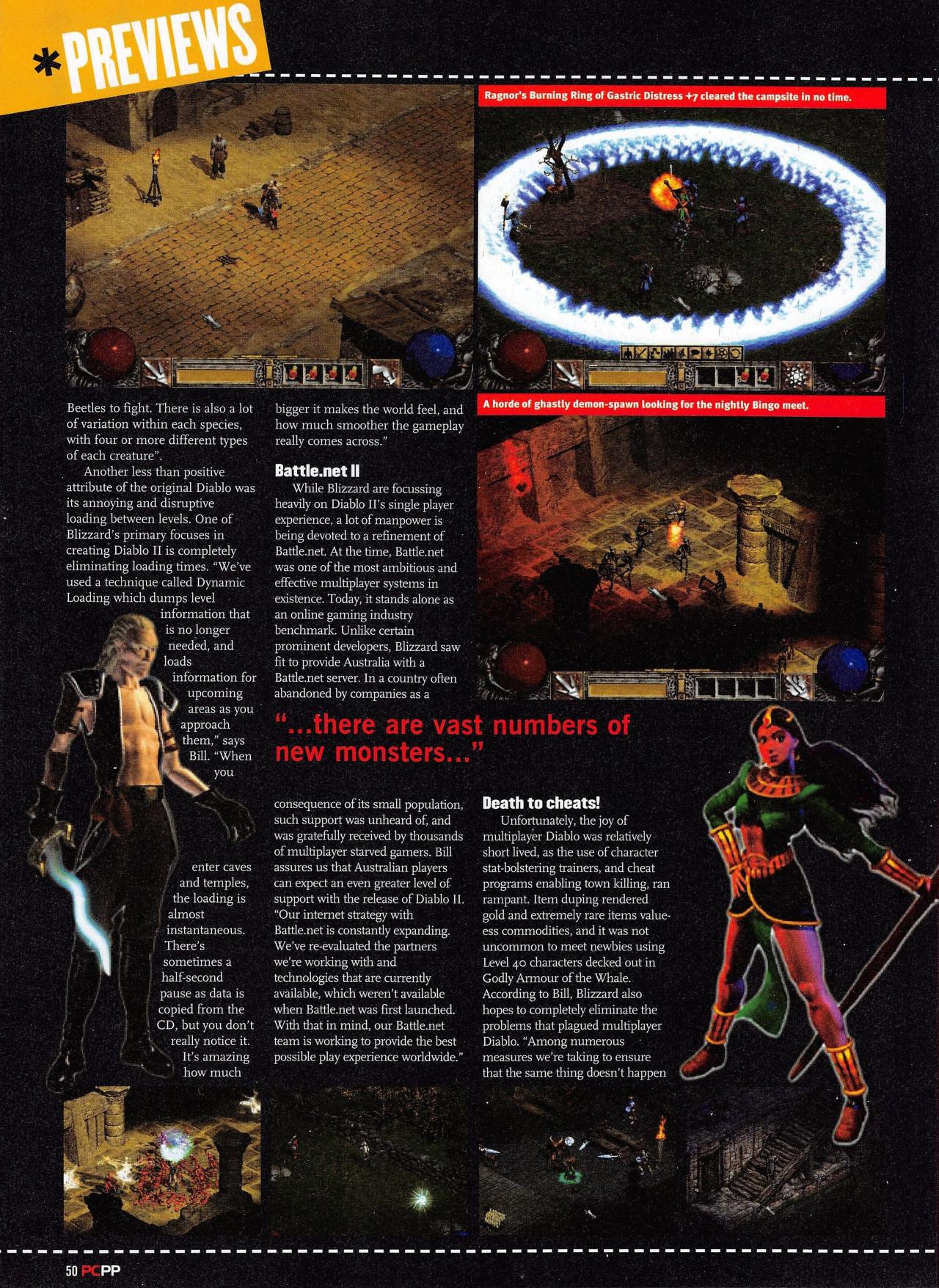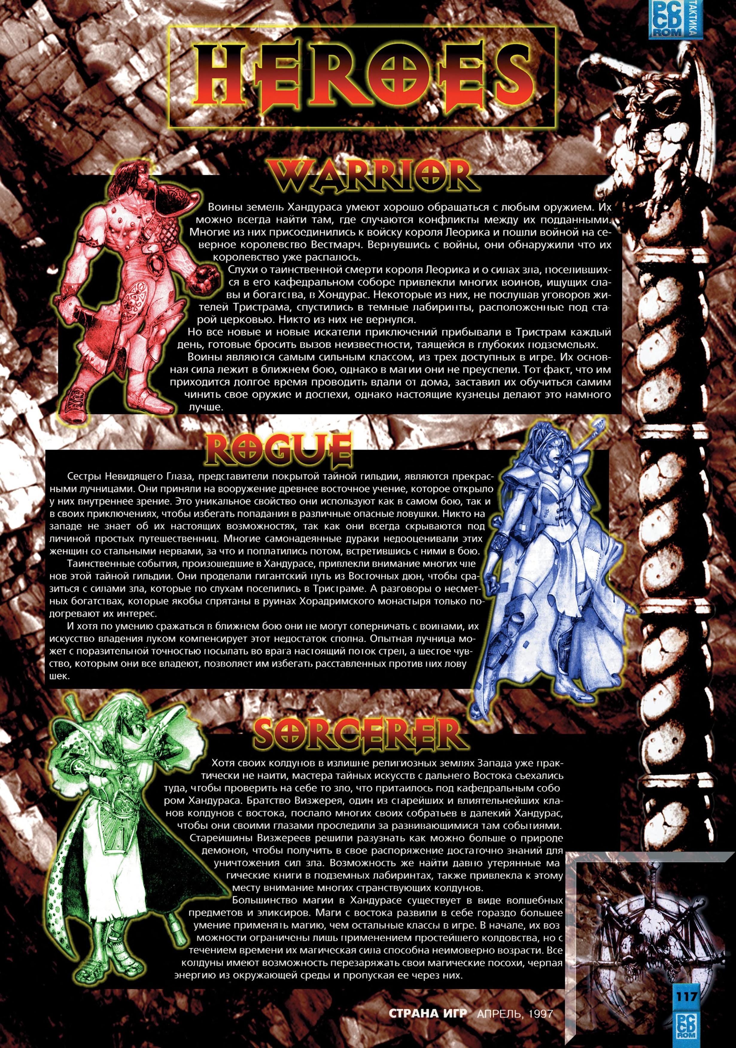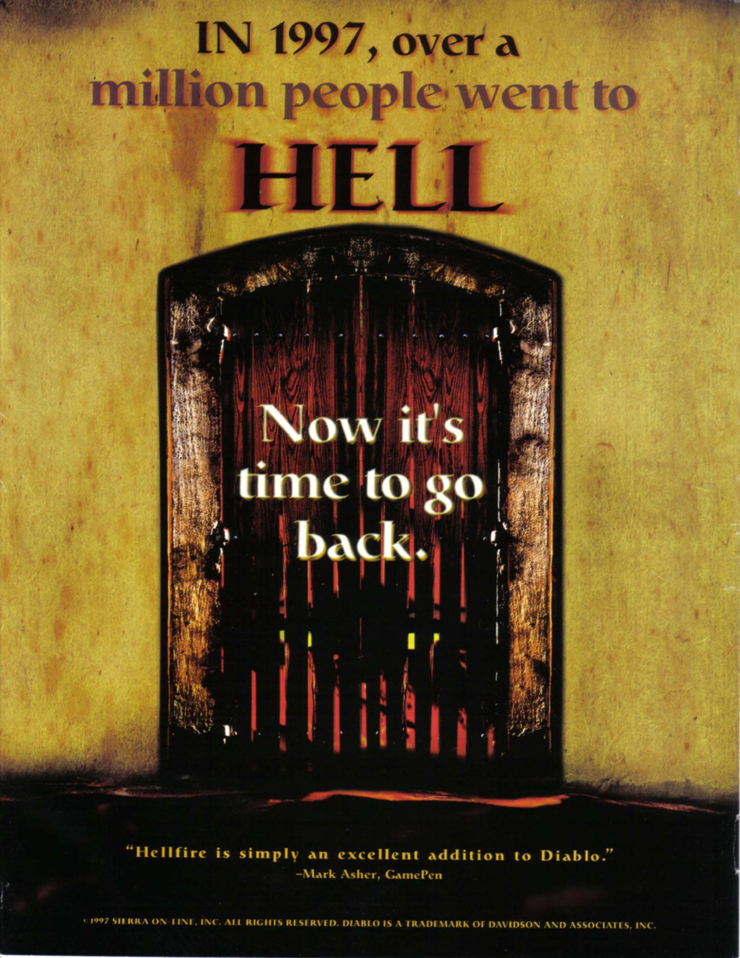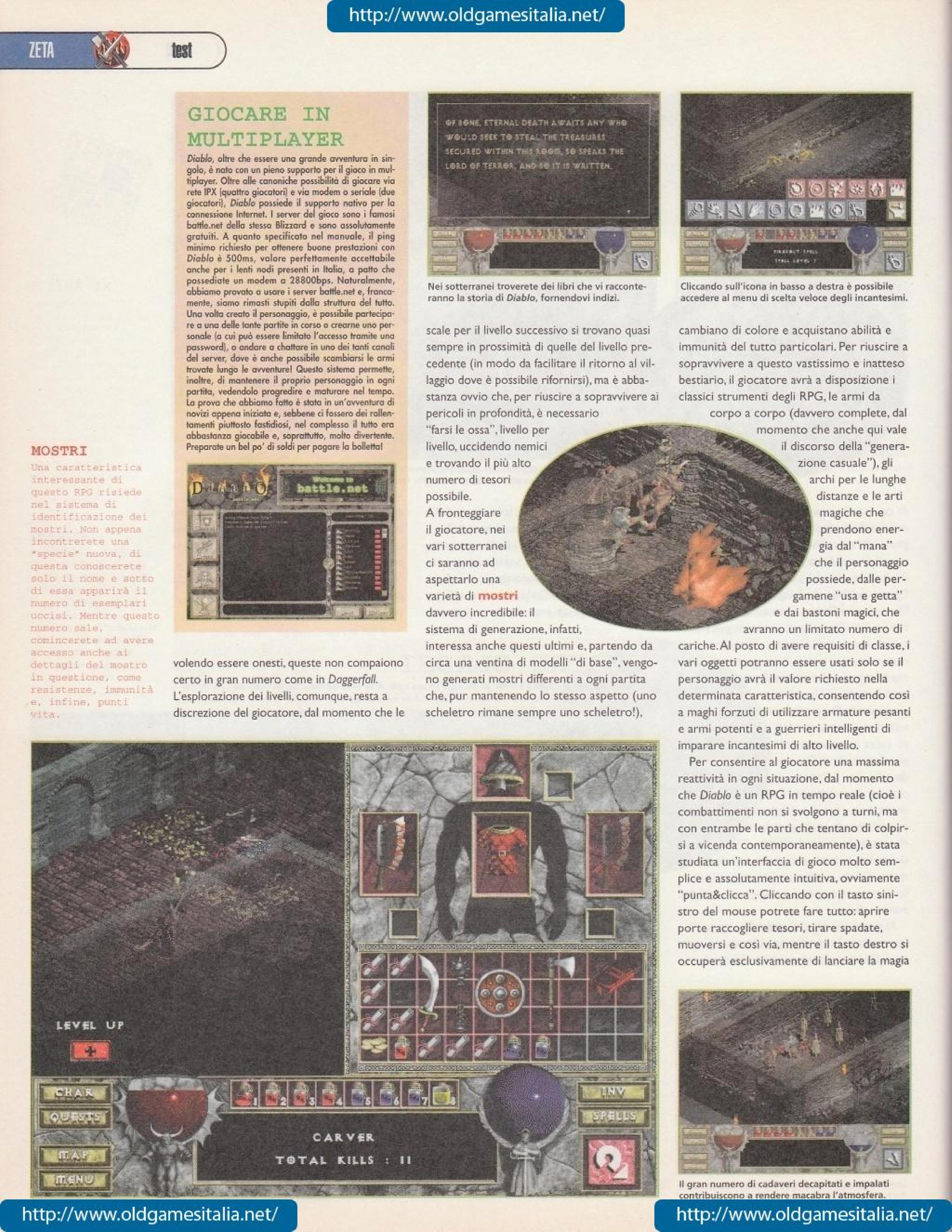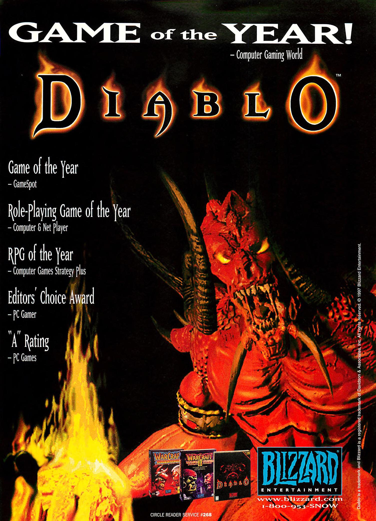 “In a quest for vengeance, players assume the role of warrior, rogue or sorcerer and descend into the expansive labyrinth hidden beneath their village. As players venture deeper into the catacombs, they discover weapons, armor, and magical treasures — all of which develop their character’s skills and abilities. With every new weapon or spell, players build a more powerful arsenal for their final attack on Diablo.”
