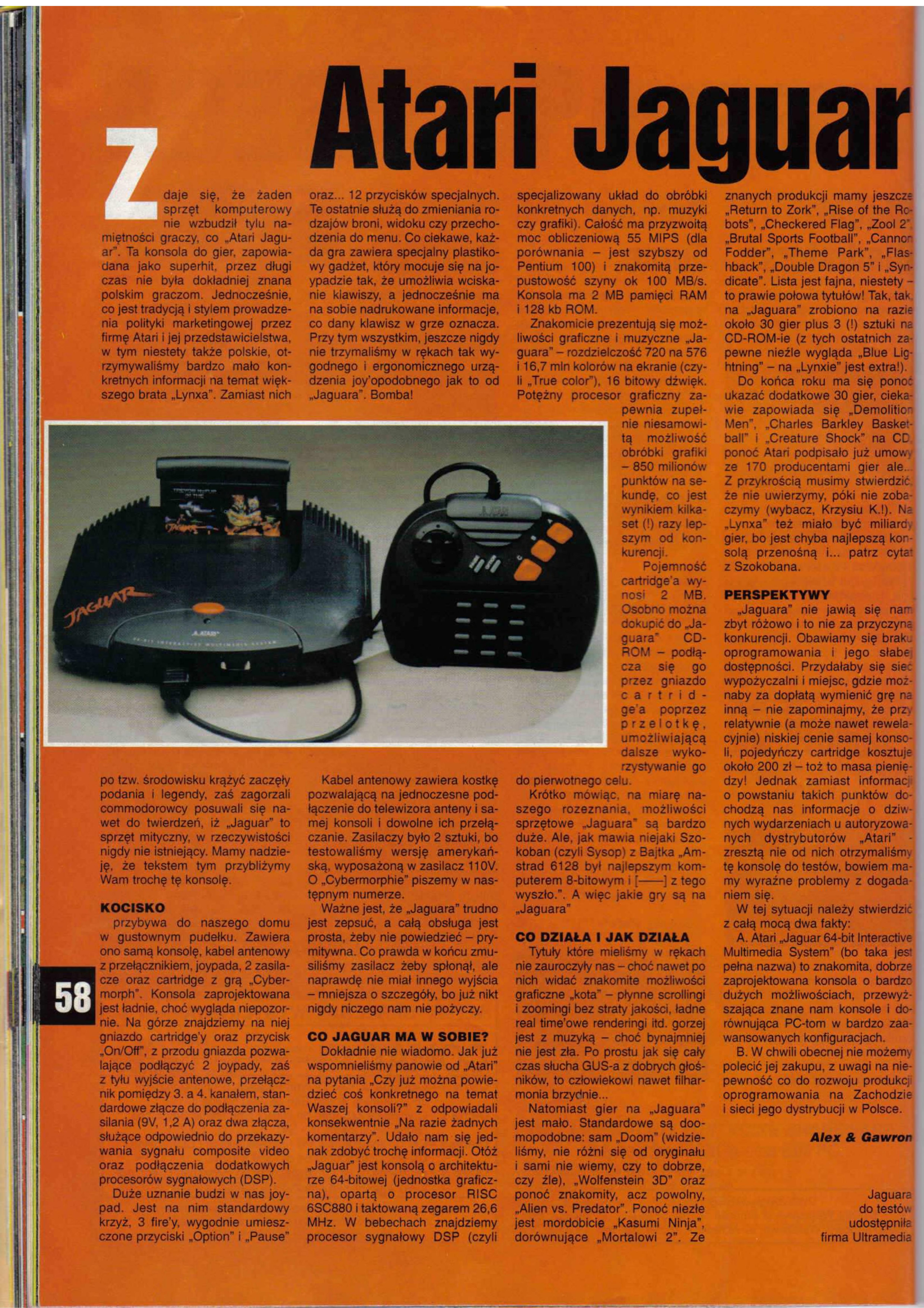 “Throughout the history of gaming, the flared red Atari badge remained an enduring fixture. Formed in 1972 by Nolan Bushnell, Atari is the oldest videogame company in the world. Pong, the VCS 2600, the ST computers, the Lynx and now the Jaguar, all have emerged from Atari’s Silicon Valley Headquarters — to meet with varying degrees of success.”