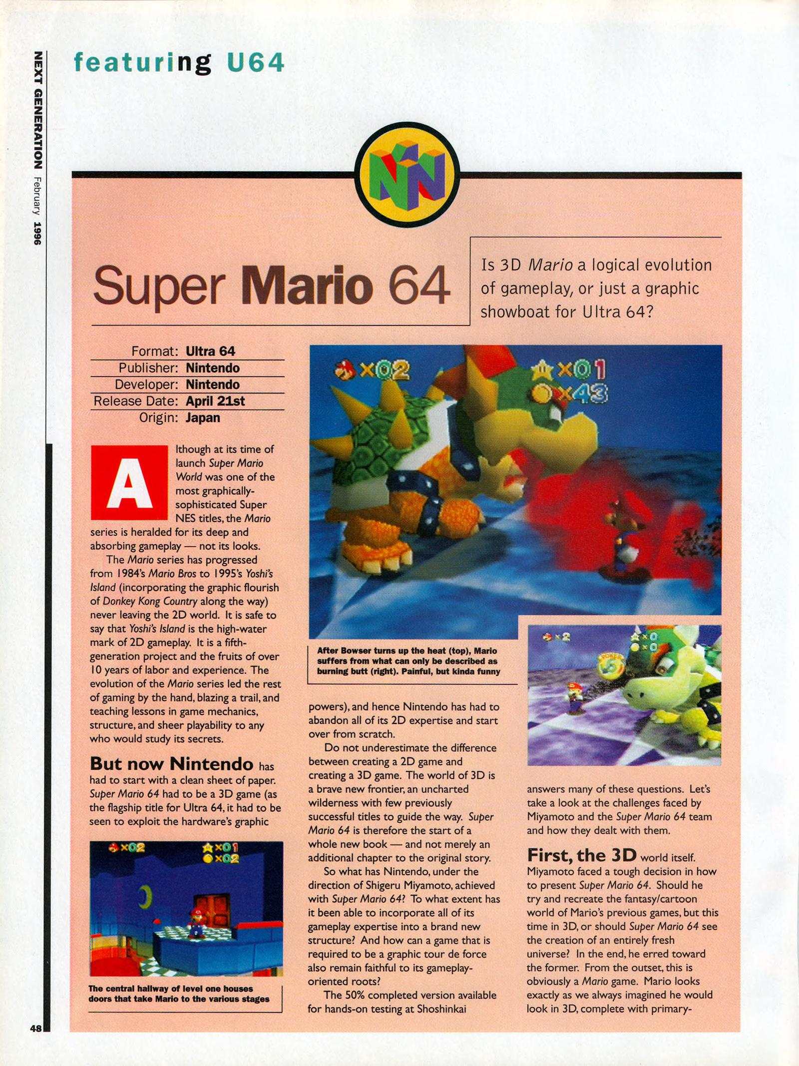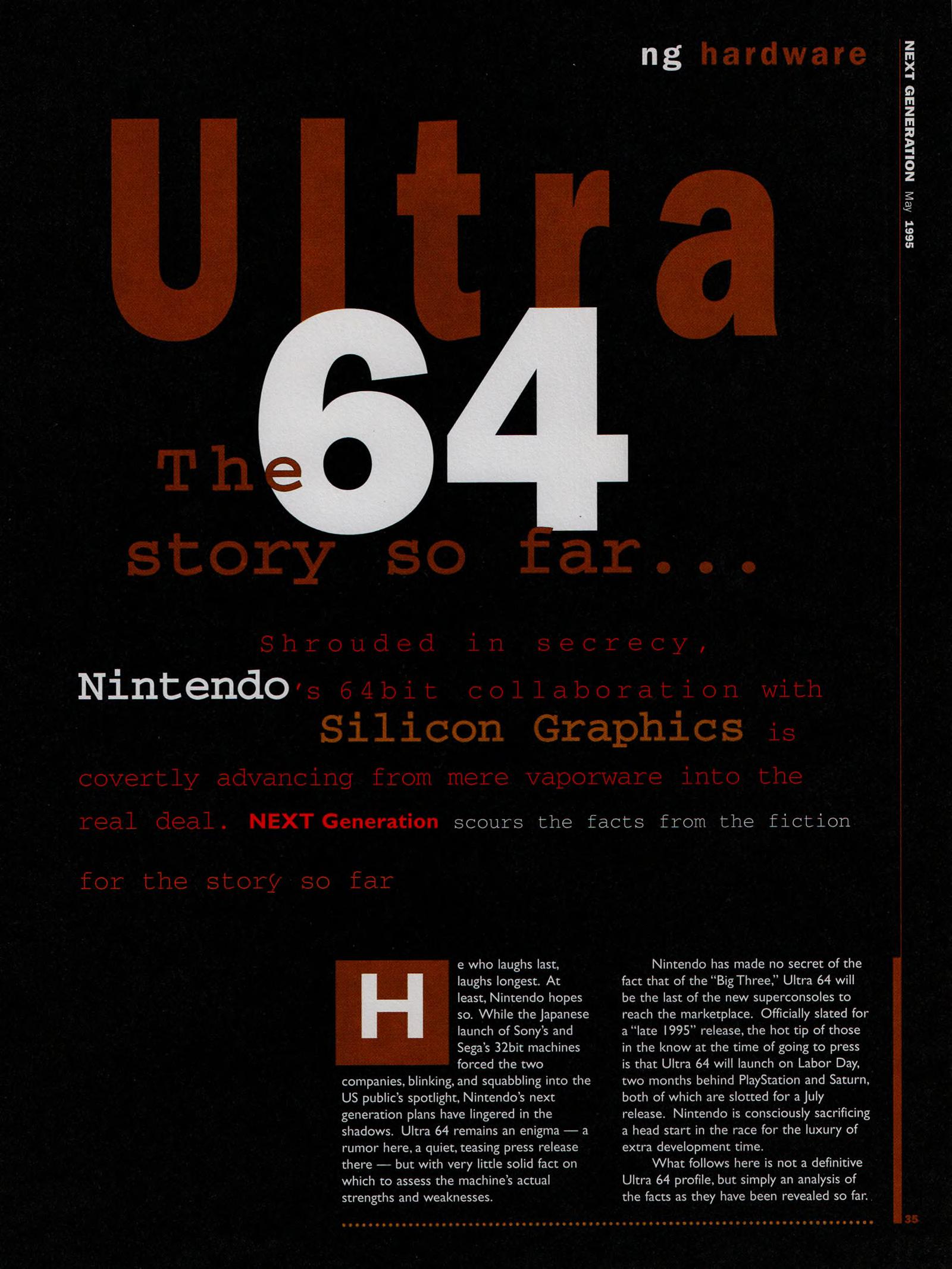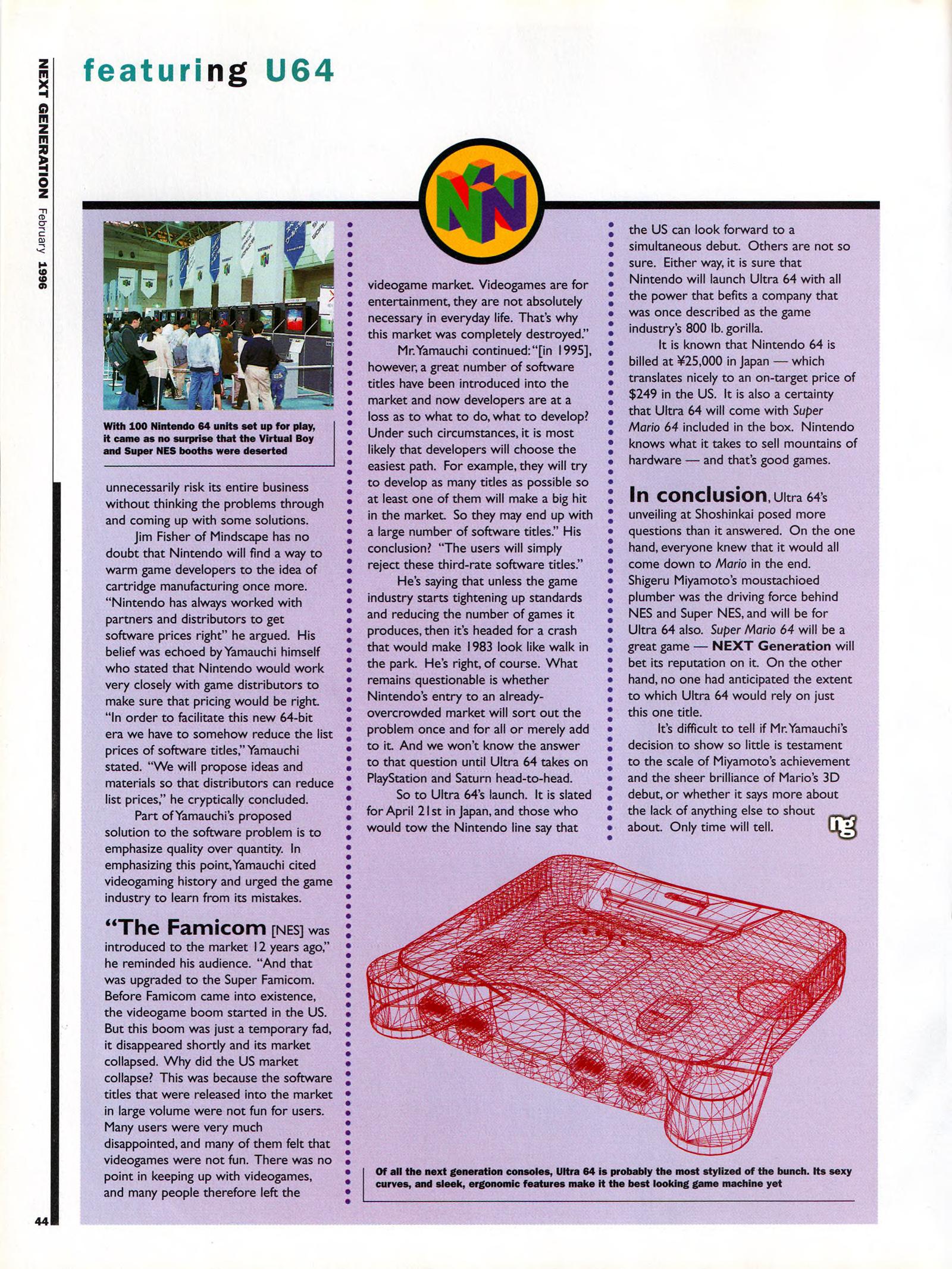 “Ultra 64: Nintendo’s shot at the title. It was the best kept secret in videogames. Some people say that it still is. Ultra 64’s launch at Tokyo’s Shosinkai exposition on November 24 was the most anticipated videogaming event of the 1990’s, possibly of all time. What could be more momentous than the world’s most powerful game machine from the world’s most powerful game company?”