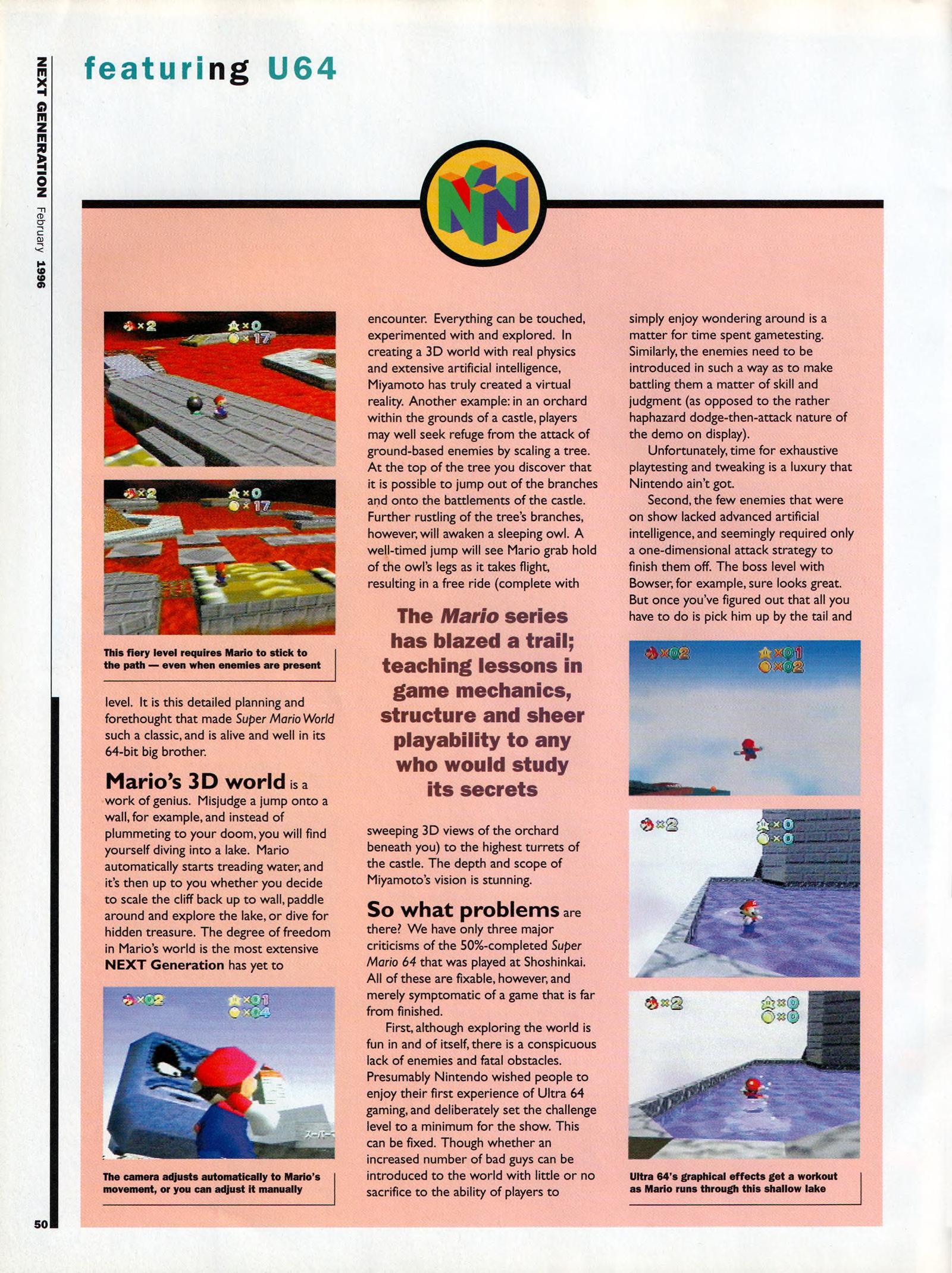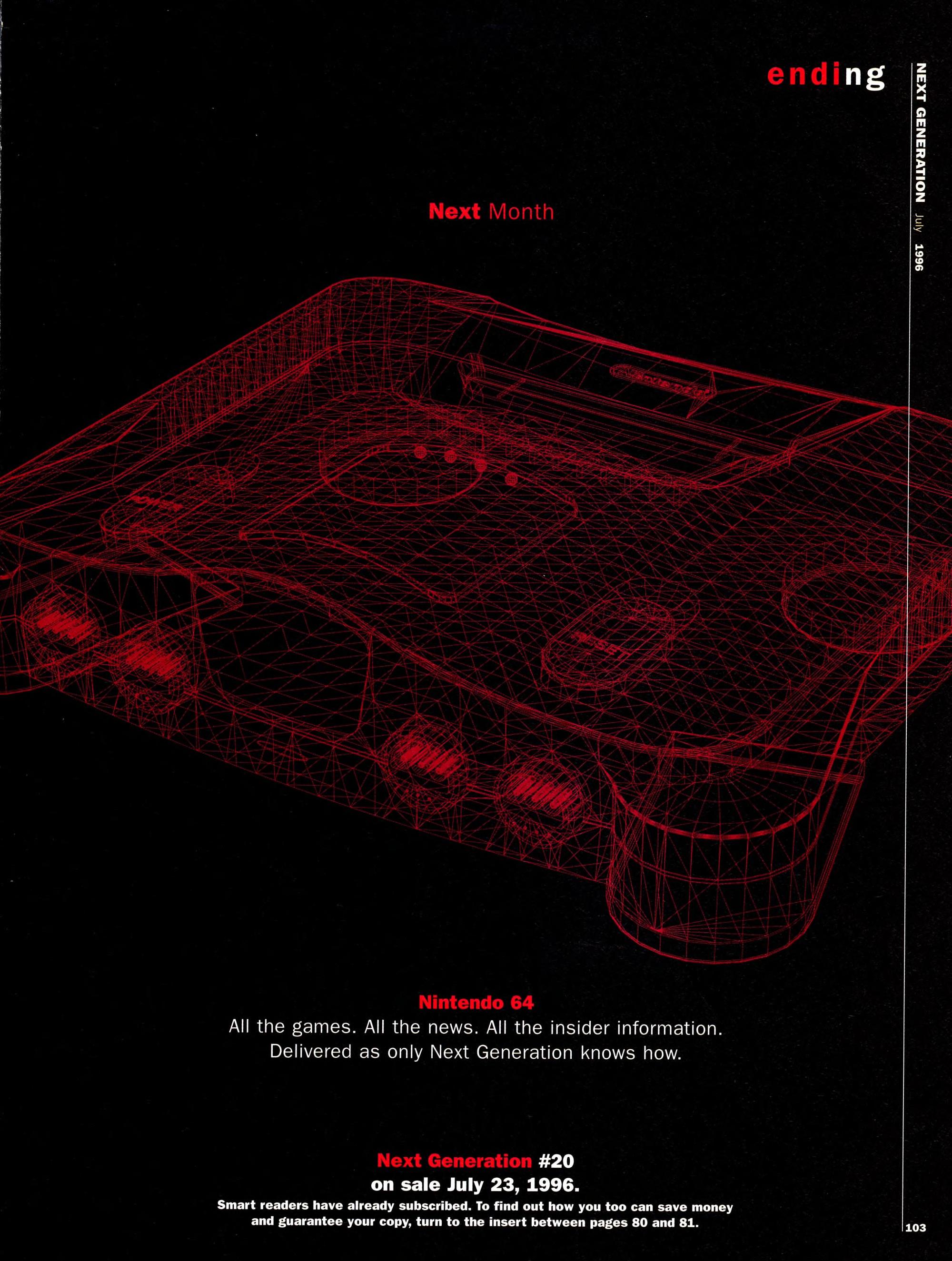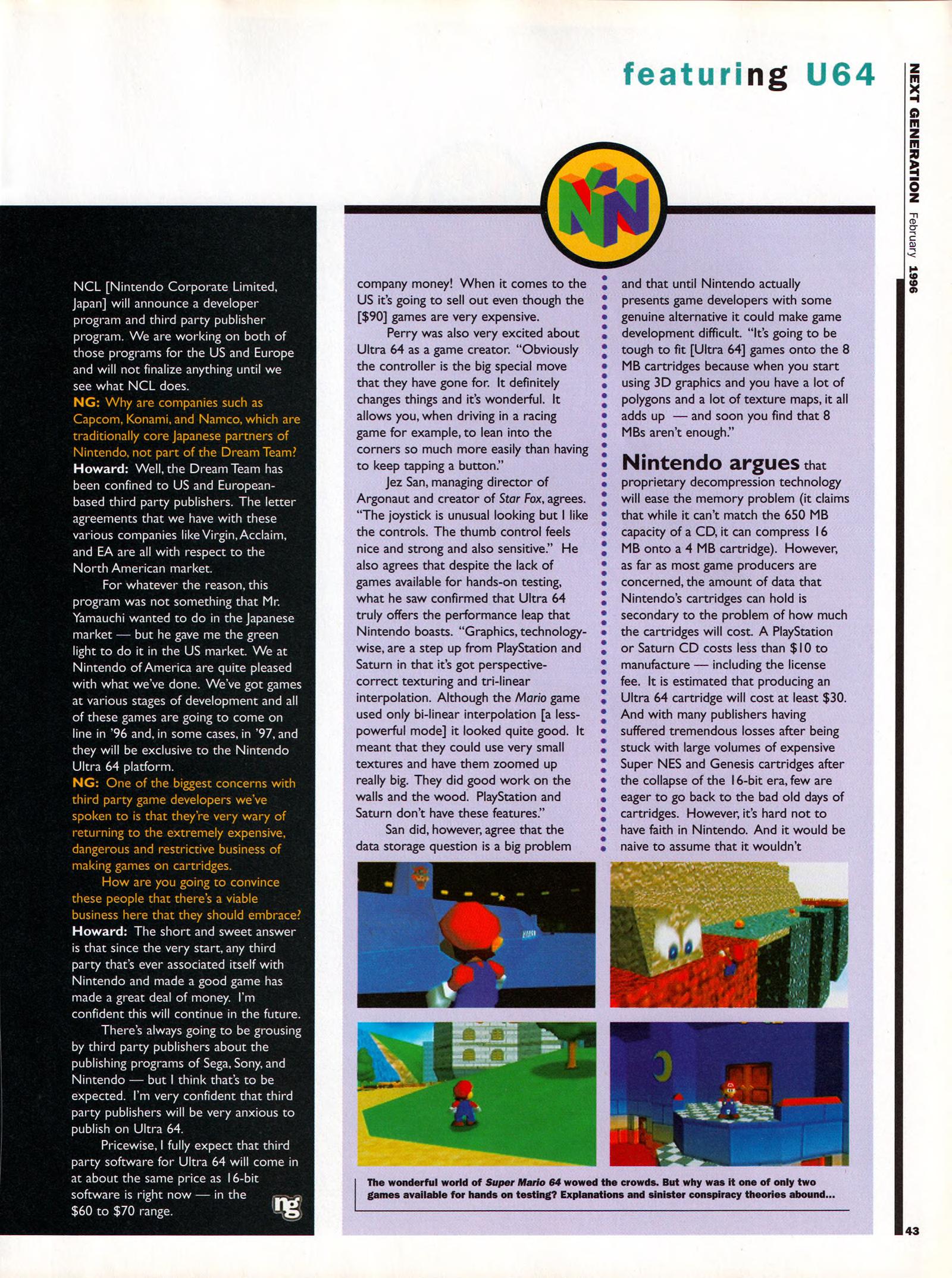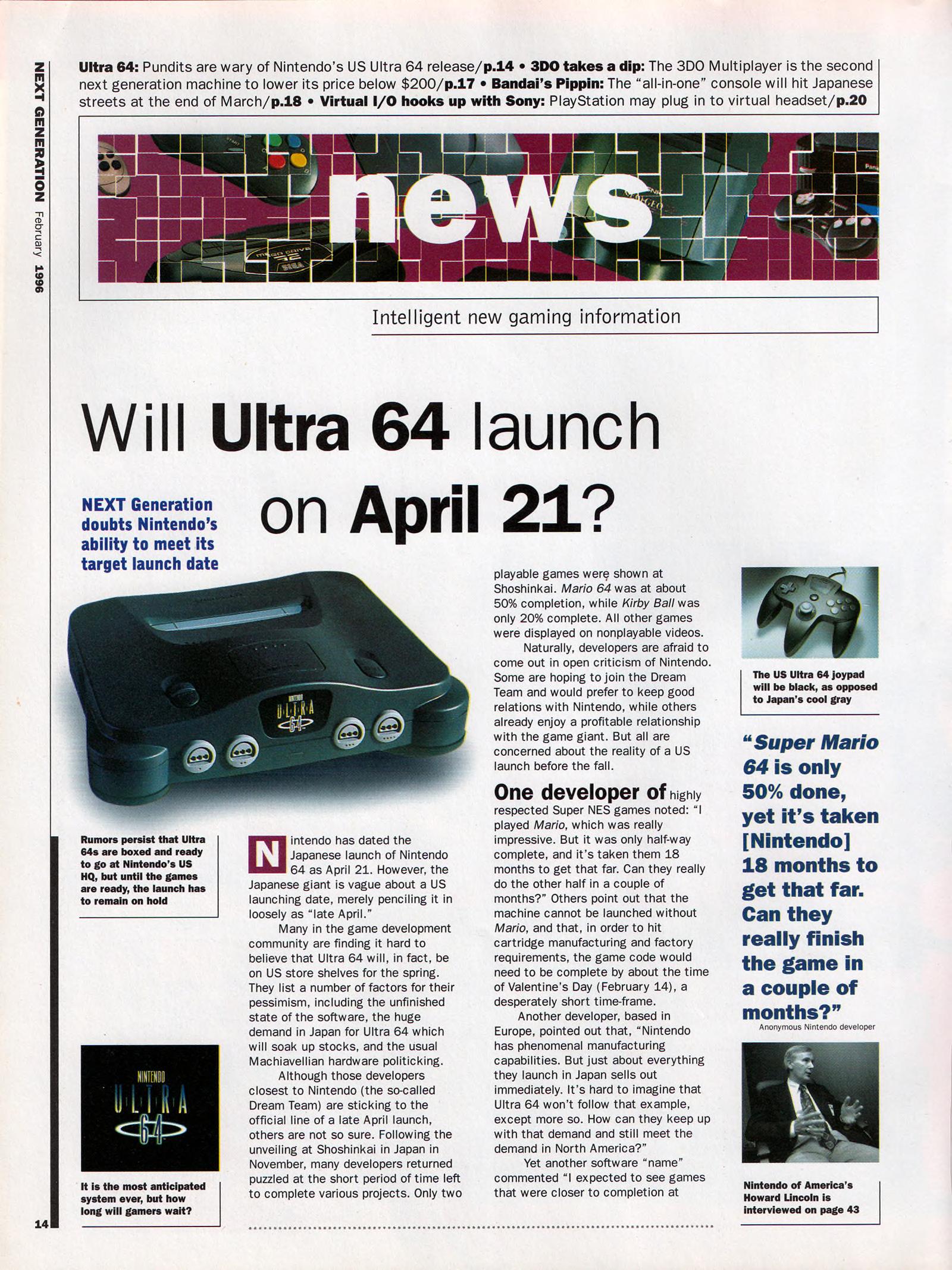 “Ultra 64: Nintendo’s shot at the title. It was the best kept secret in videogames. Some people say that it still is. Ultra 64’s launch at Tokyo’s Shosinkai exposition on November 24 was the most anticipated videogaming event of the 1990’s, possibly of all time. What could be more momentous than the world’s most powerful game machine from the world’s most powerful game company?”