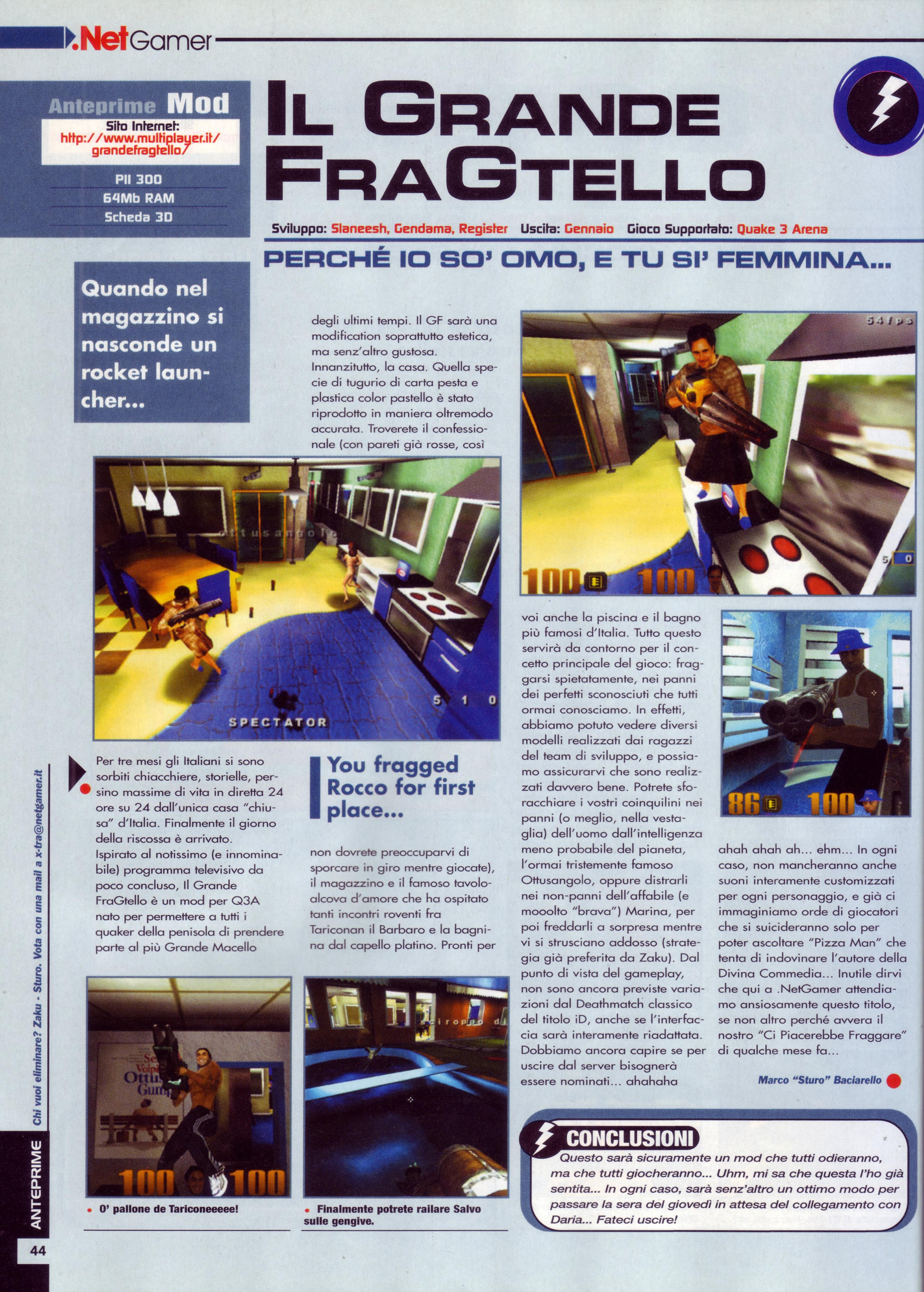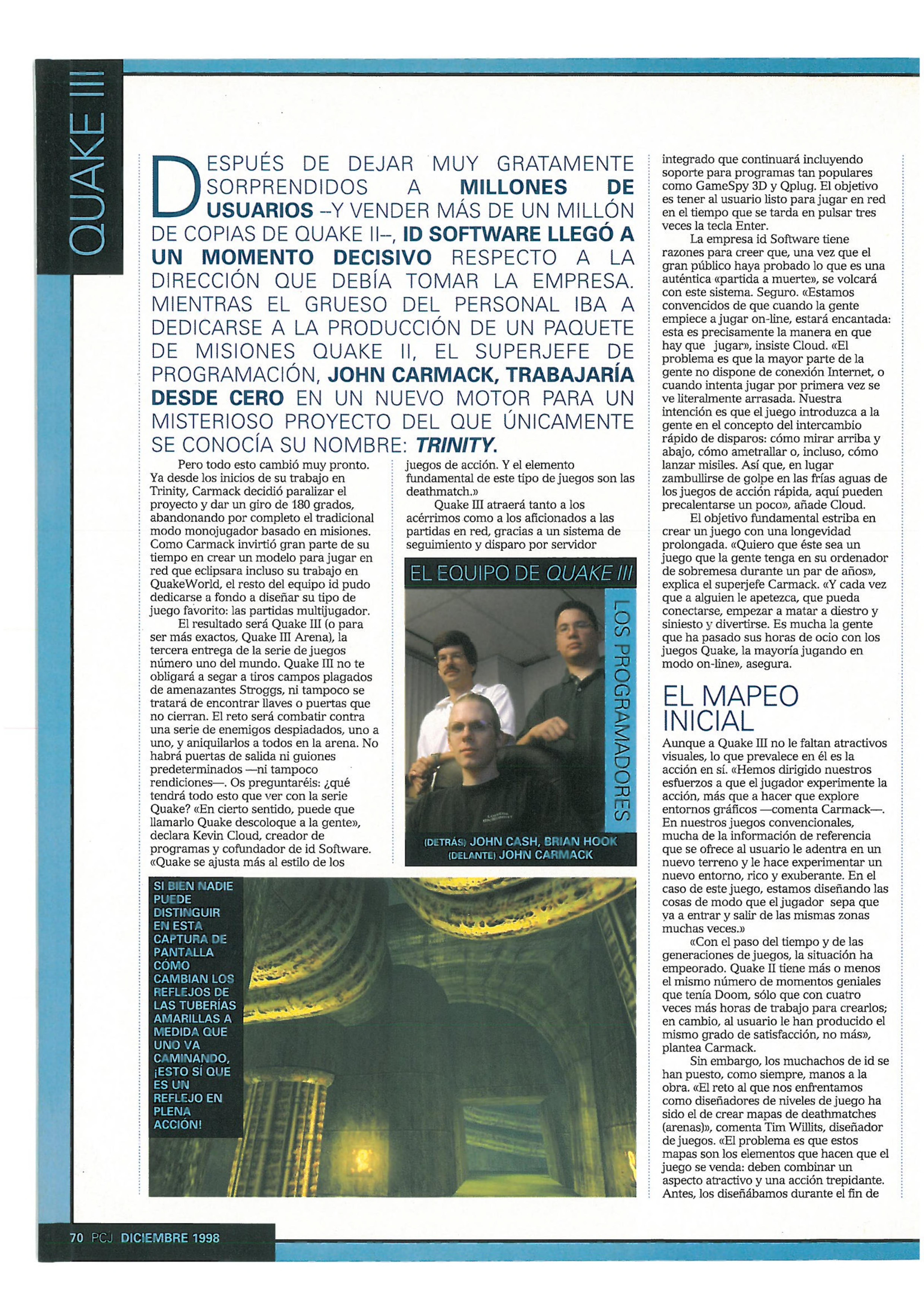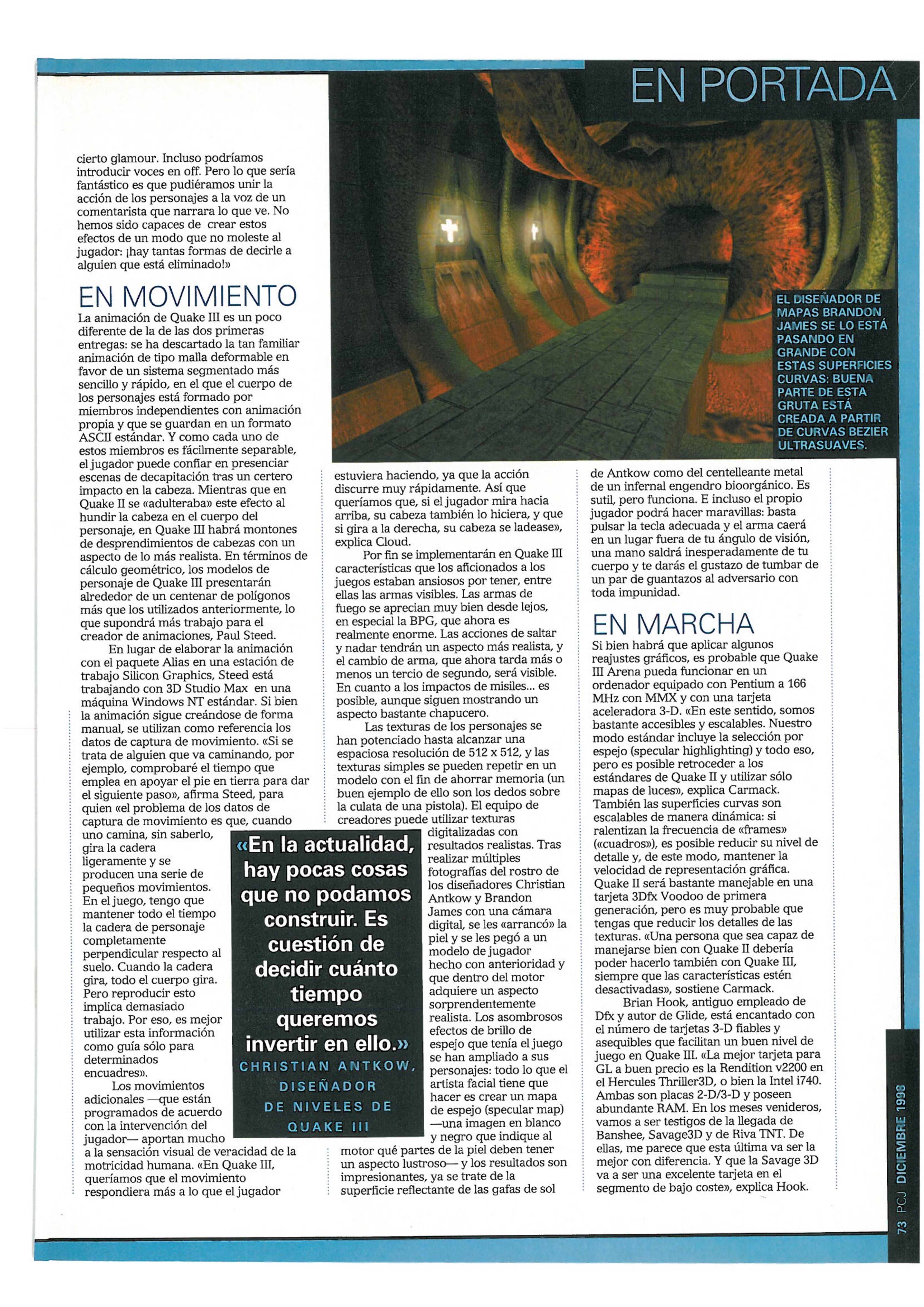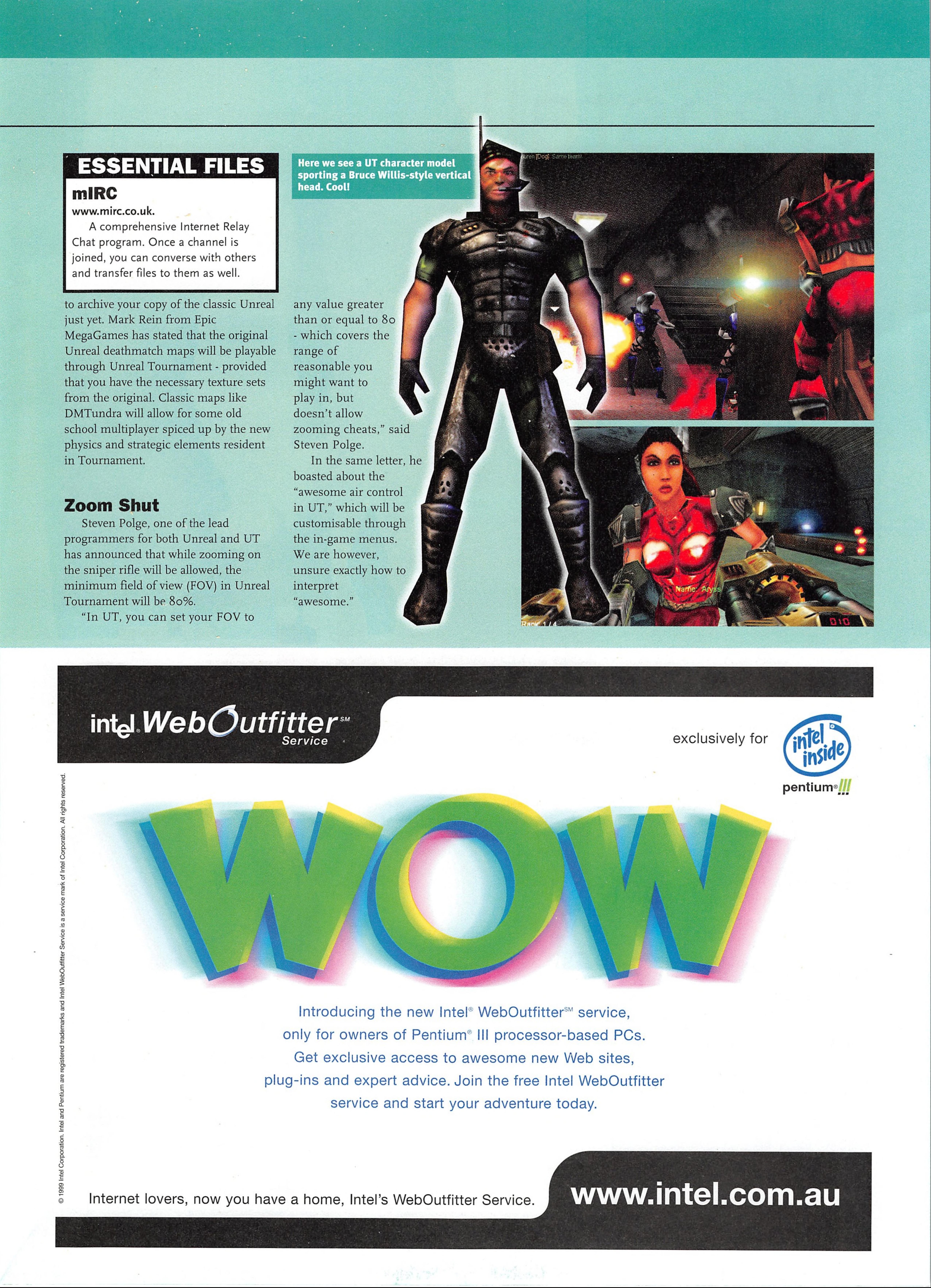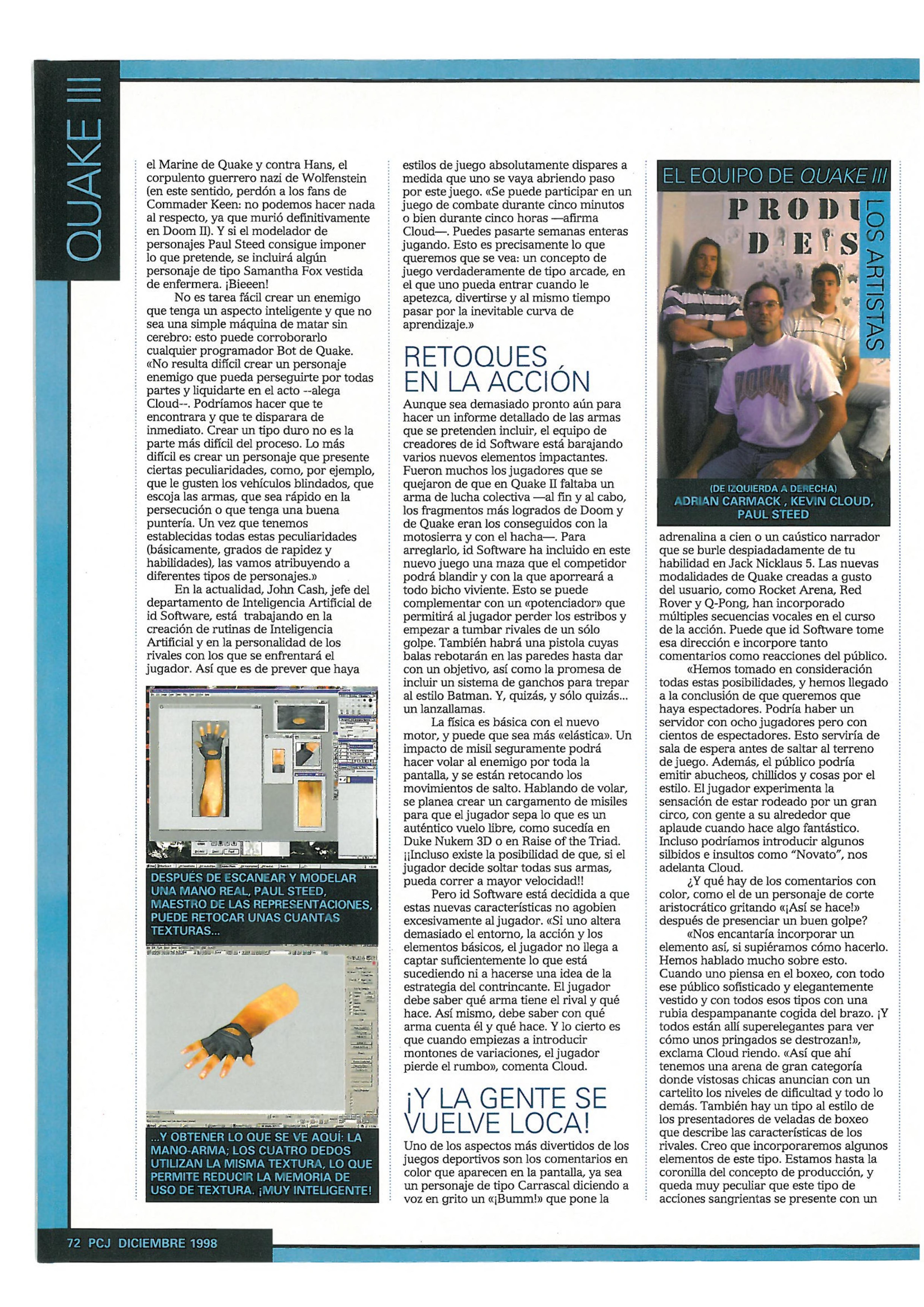 “The sound of footsteps, the smell of burning… you’d be a fool to fire a point blank rocket. Oh, you’re dead! Quake III Arena has been the most awaited game of the year and doesn’t disappoint those looking for the ultimate in deathmatch gaming. Load up, get online, and fight back with your very own BFG — that’s Big Fragging guide.”