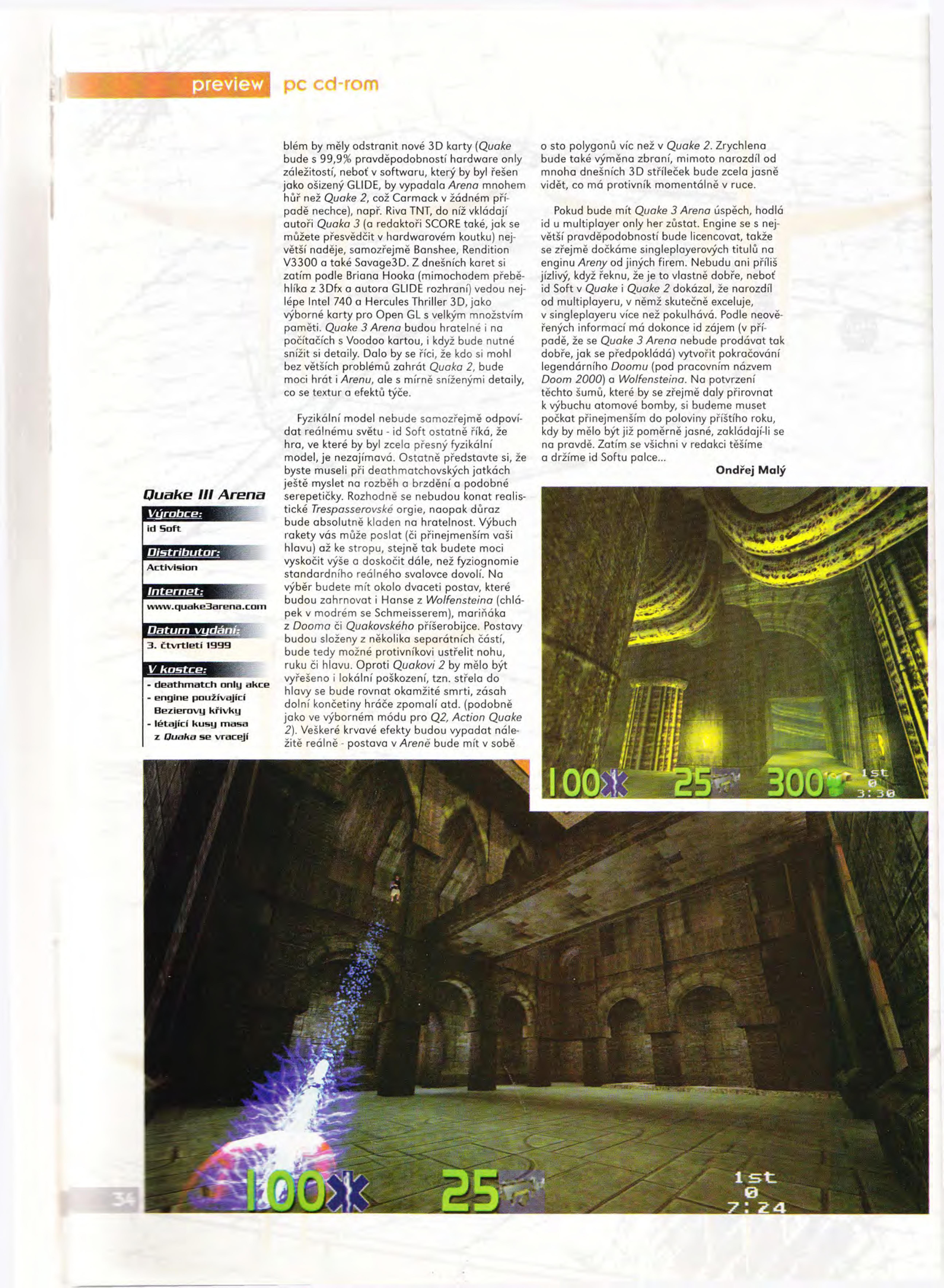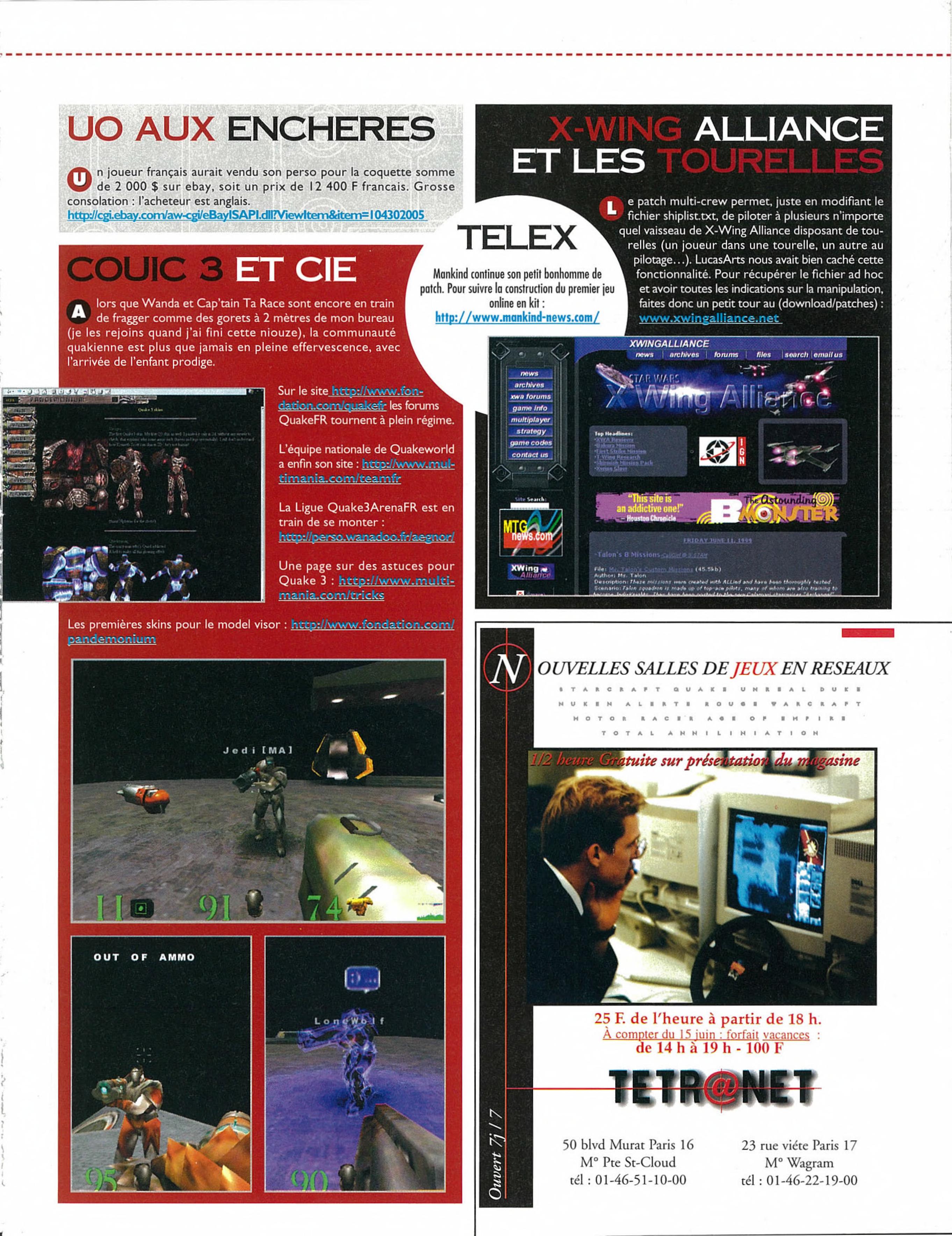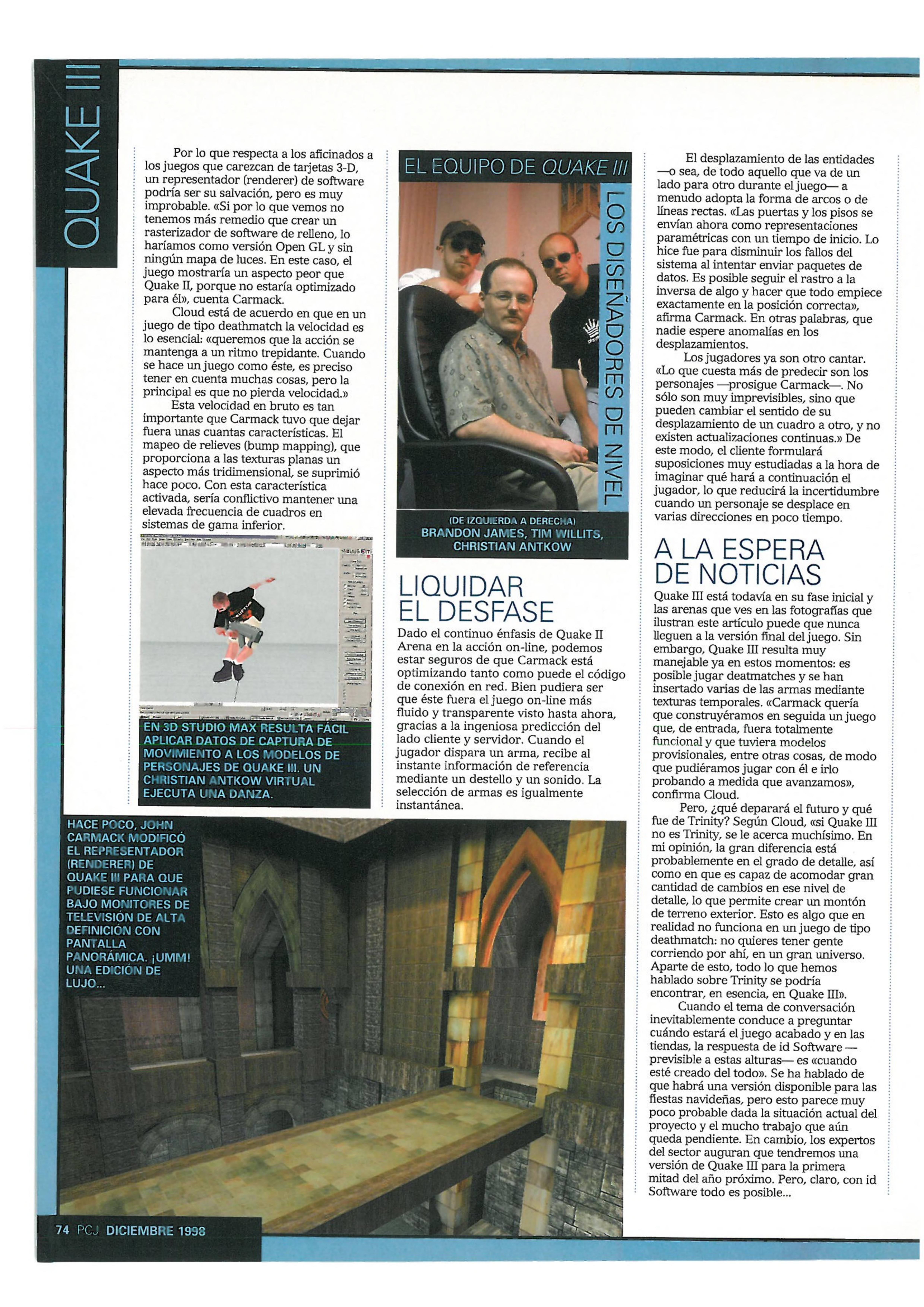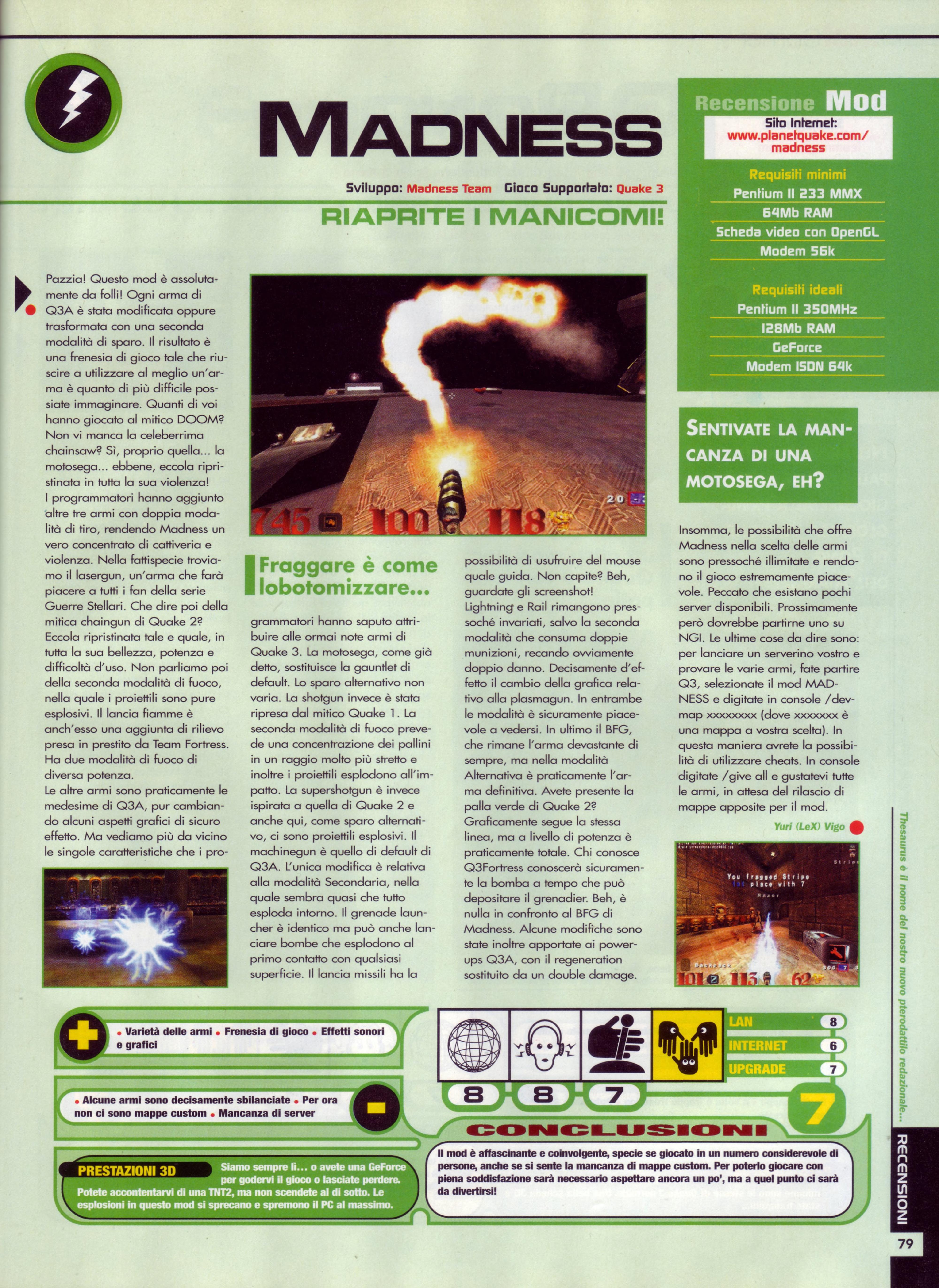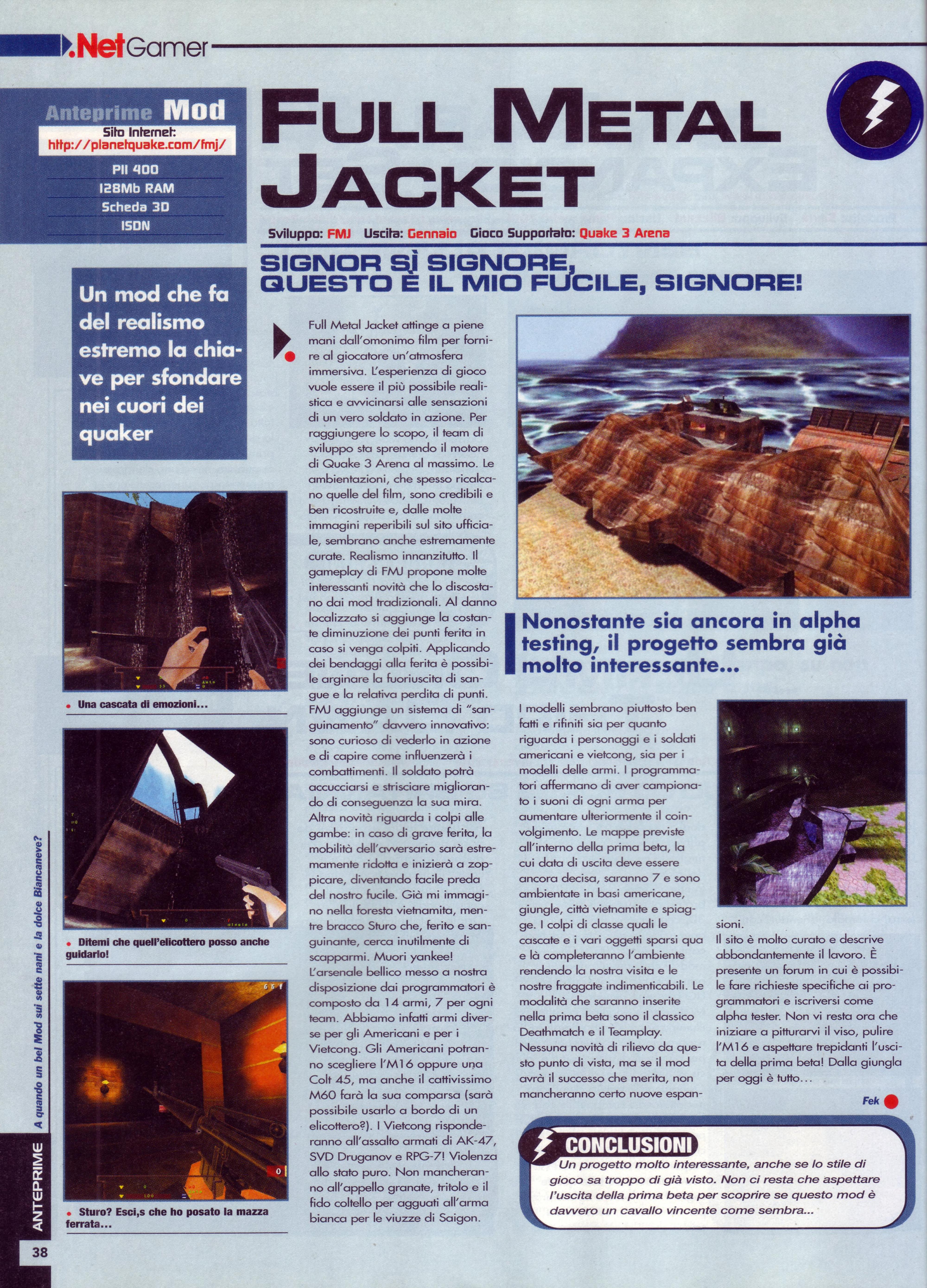 “The sound of footsteps, the smell of burning… you’d be a fool to fire a point blank rocket. Oh, you’re dead! Quake III Arena has been the most awaited game of the year and doesn’t disappoint those looking for the ultimate in deathmatch gaming. Load up, get online, and fight back with your very own BFG — that’s Big Fragging guide.”