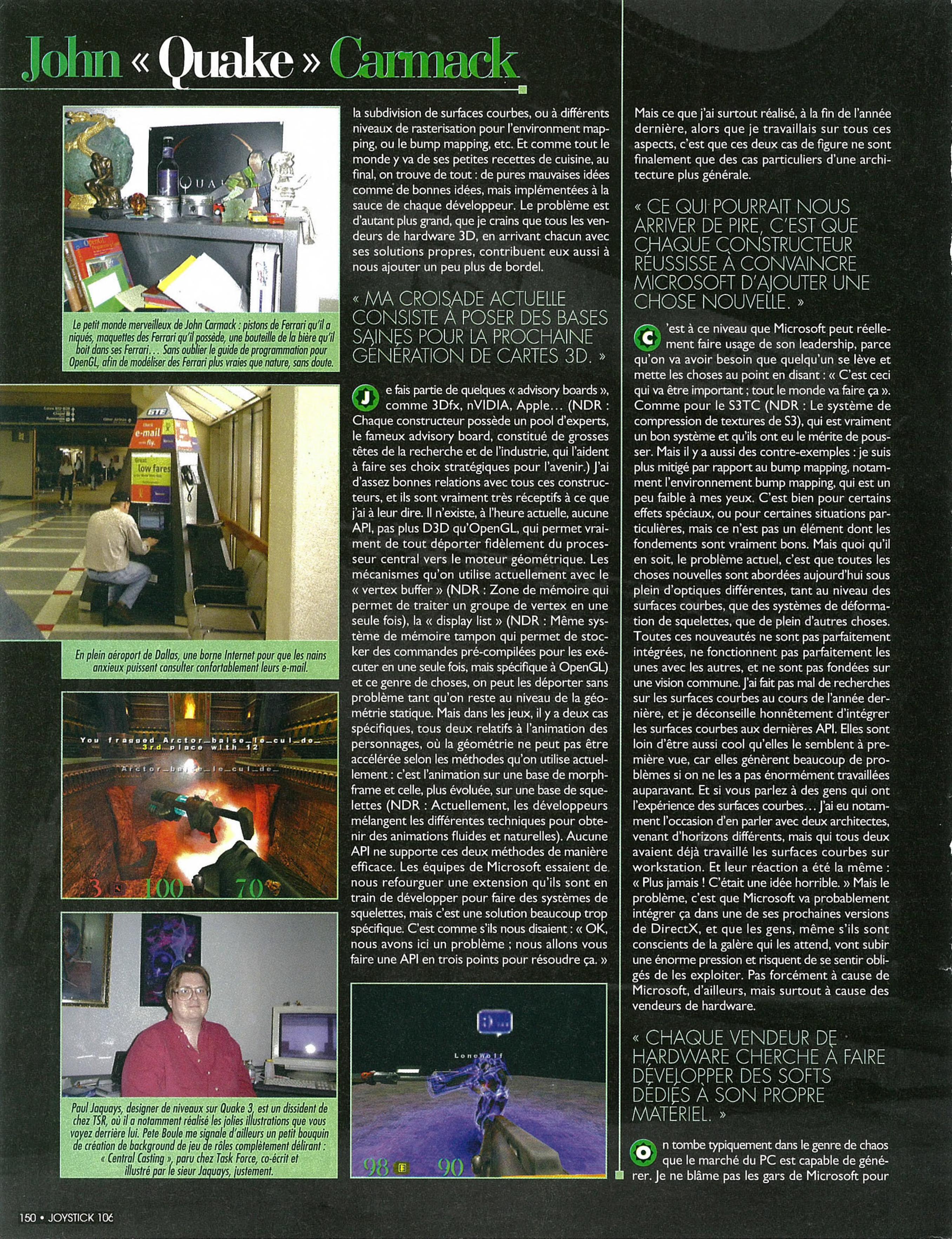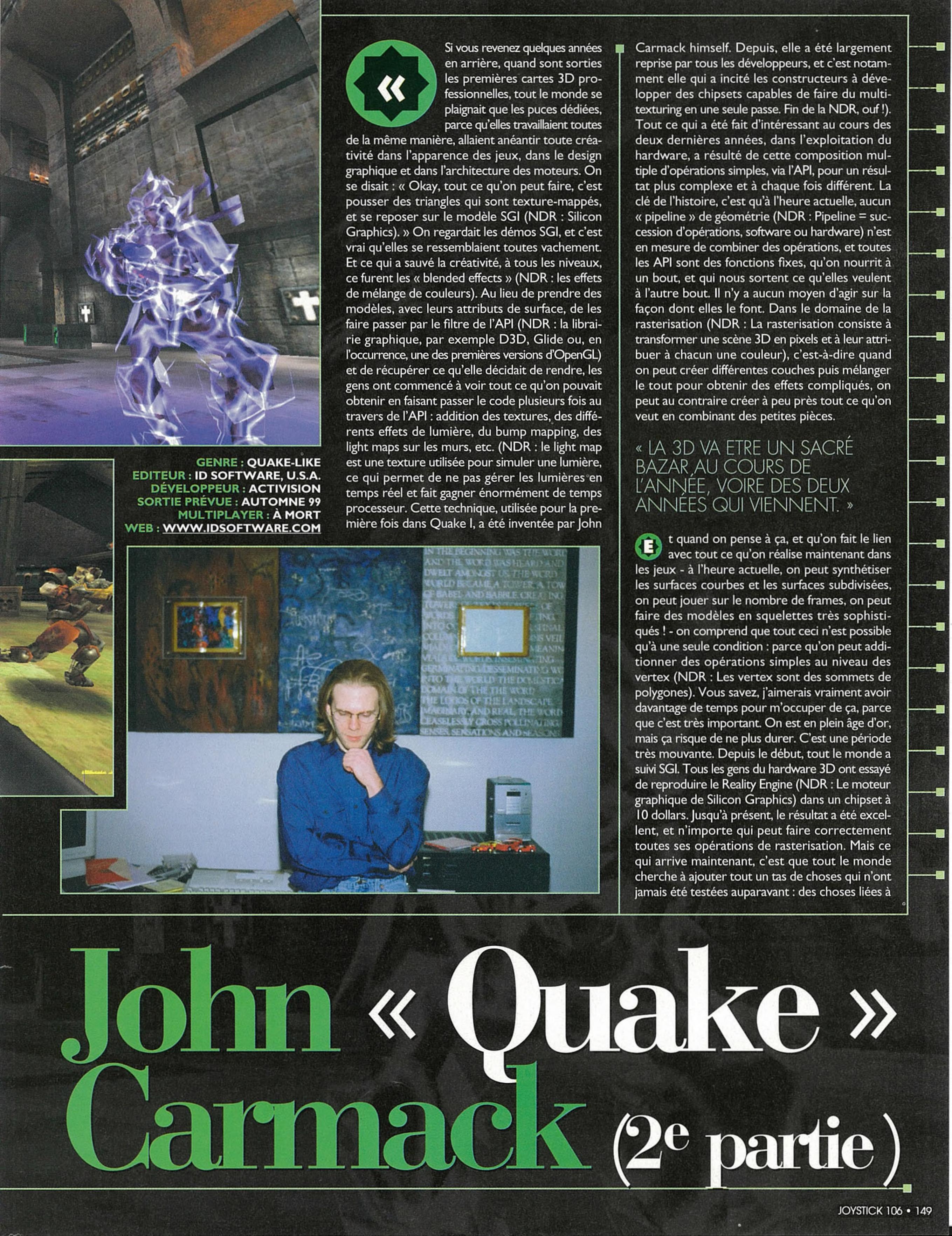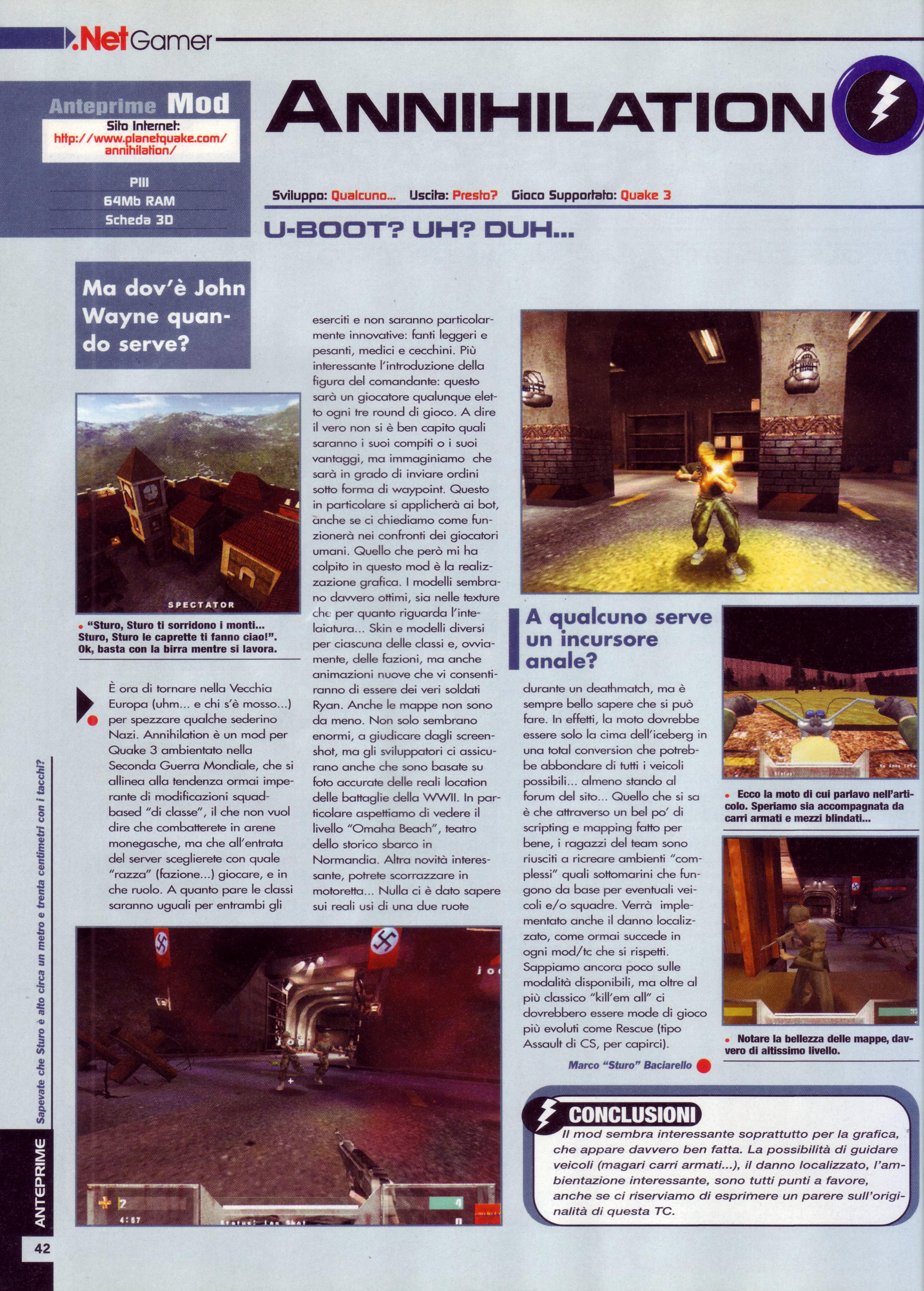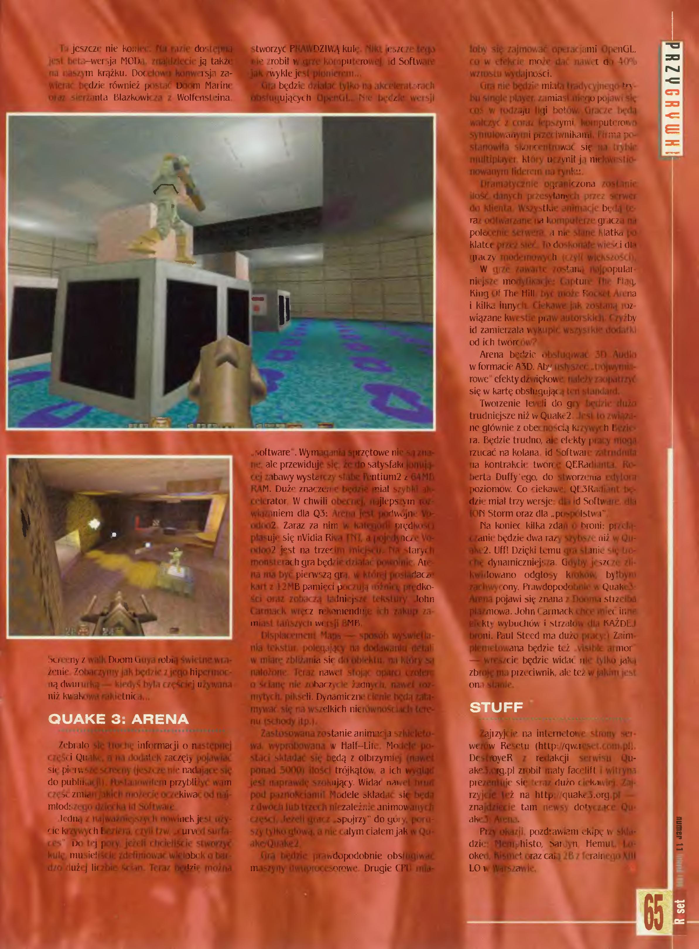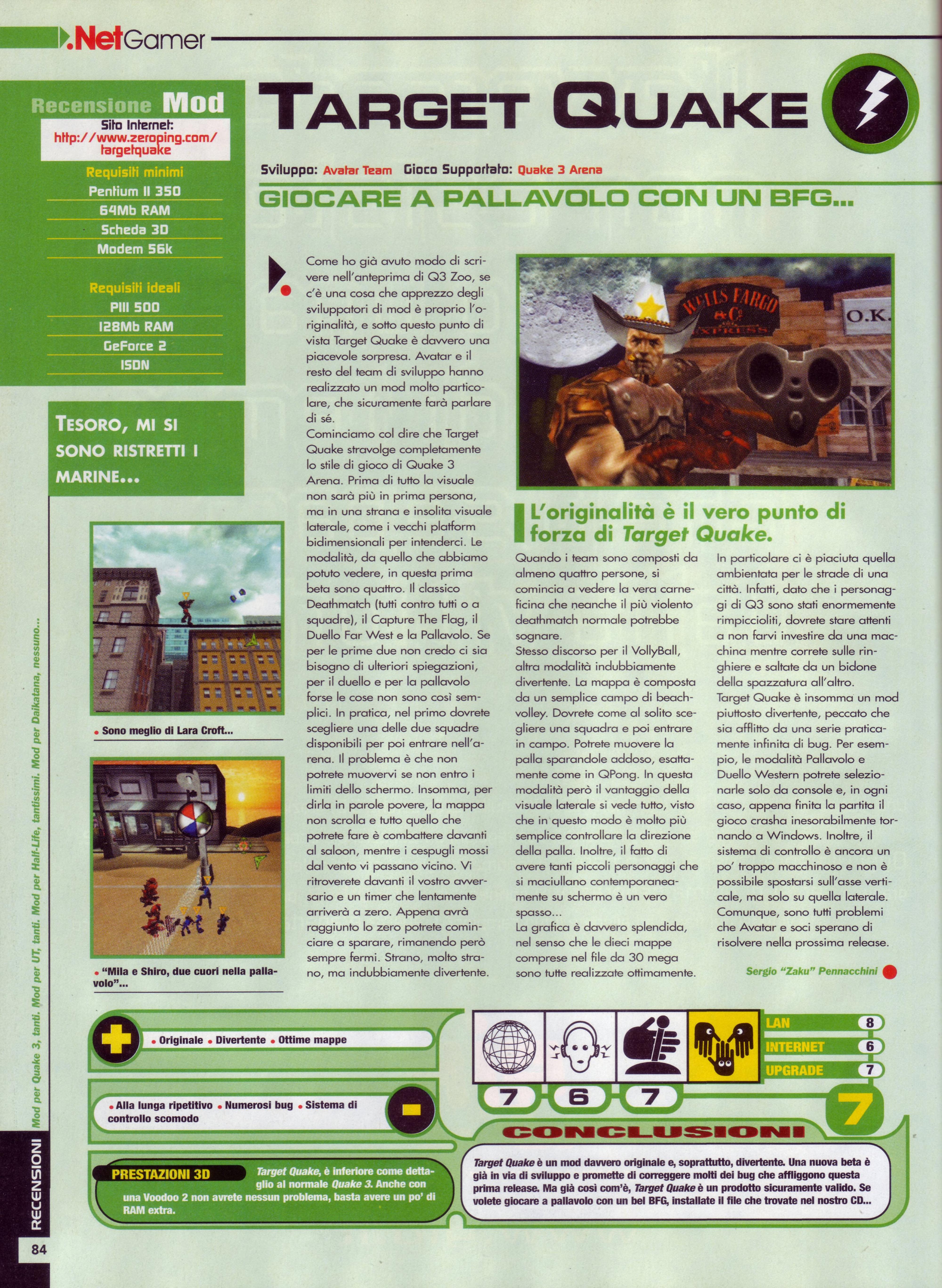 “The sound of footsteps, the smell of burning… you’d be a fool to fire a point blank rocket. Oh, you’re dead! Quake III Arena has been the most awaited game of the year and doesn’t disappoint those looking for the ultimate in deathmatch gaming. Load up, get online, and fight back with your very own BFG — that’s Big Fragging guide.”