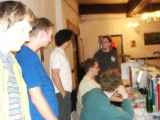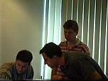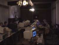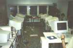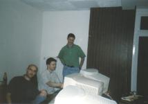 Unser erstes Netzfest, mit mehr als 7 Spielern und es fand nicht im Keller statt. Gekommen waren 19 junge Menschen aus Berlin und Brandenburg um dem angenehmen Zeitvertreib des Netzwerkspiels nachzugehen. Gespielt wurden alles mögliche, auch das bekannte Q-Spiel von ID-Software. Leider vergaßen wir ein Logfile mitlaufen zu lassen, so das wir nur ein paar Bilder präsentieren können. nip3005_4.jpgVerbunden wurden die Computer per RJ45/TP (18’er u. 8’er Hub 10MBit) und BNC Kabel. Der Server für die einzelnen Spiele wurde wechselseitig von einem der angereisten Spieler betrieben. Getränke (Selter,Kaffee und Bier) wurden gestellt und zur Halbzeit bestellten wir Pizza. Netzwerkspielergrundnahrung) Wir hatten mehrere Räume und eine Küche zur Verfügung, so daß wir keinerlei Platzprobleme hatten. RohBo streckte leider eine Salmonellenvergiftung nieder (nicht von der Pizza) aber nach ein paar Tagen legte sich auch das. Wir hatten Viel Spaß und konnten einige Erfahrungen sammeln, wie die Organisation usw.läuft.