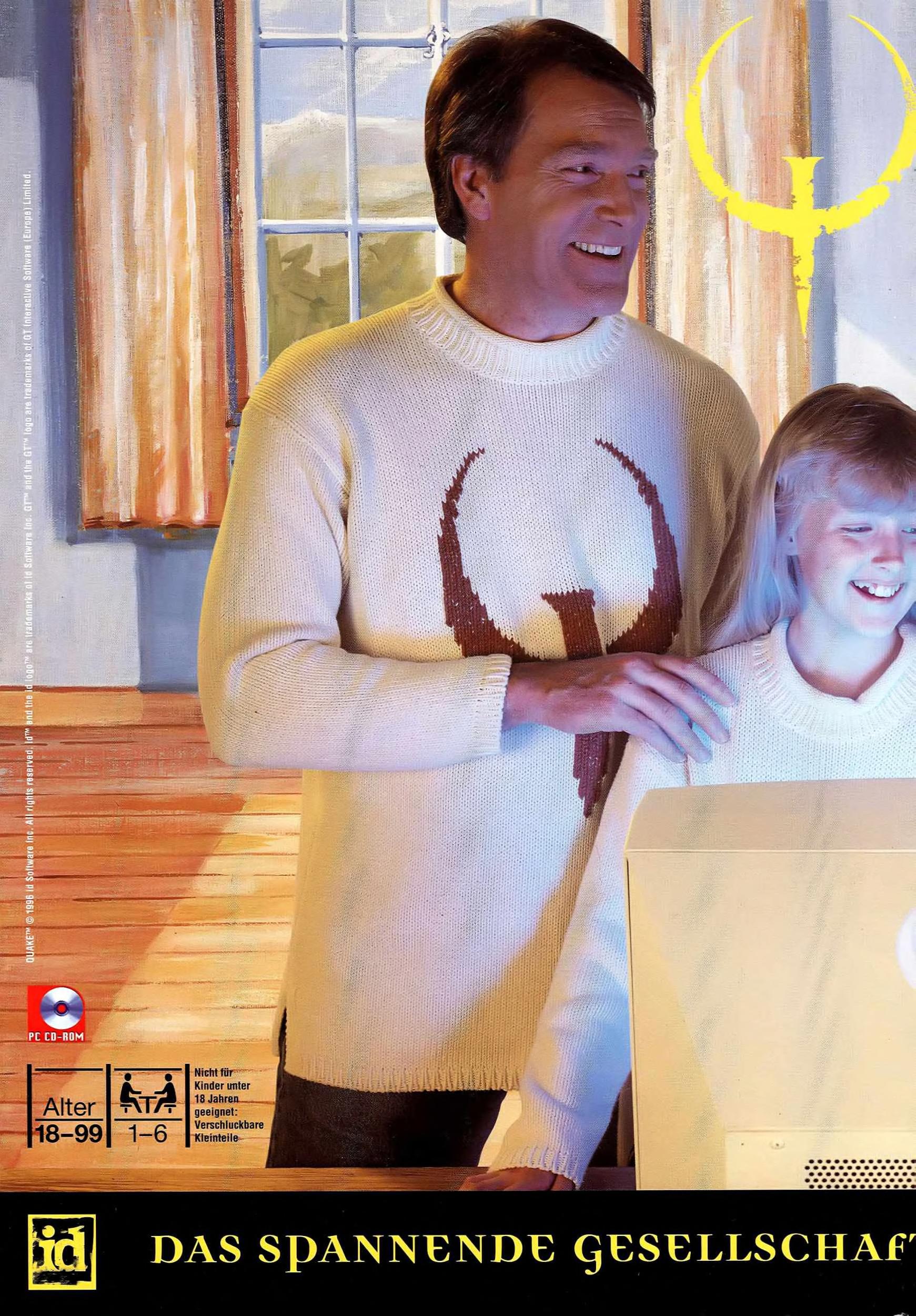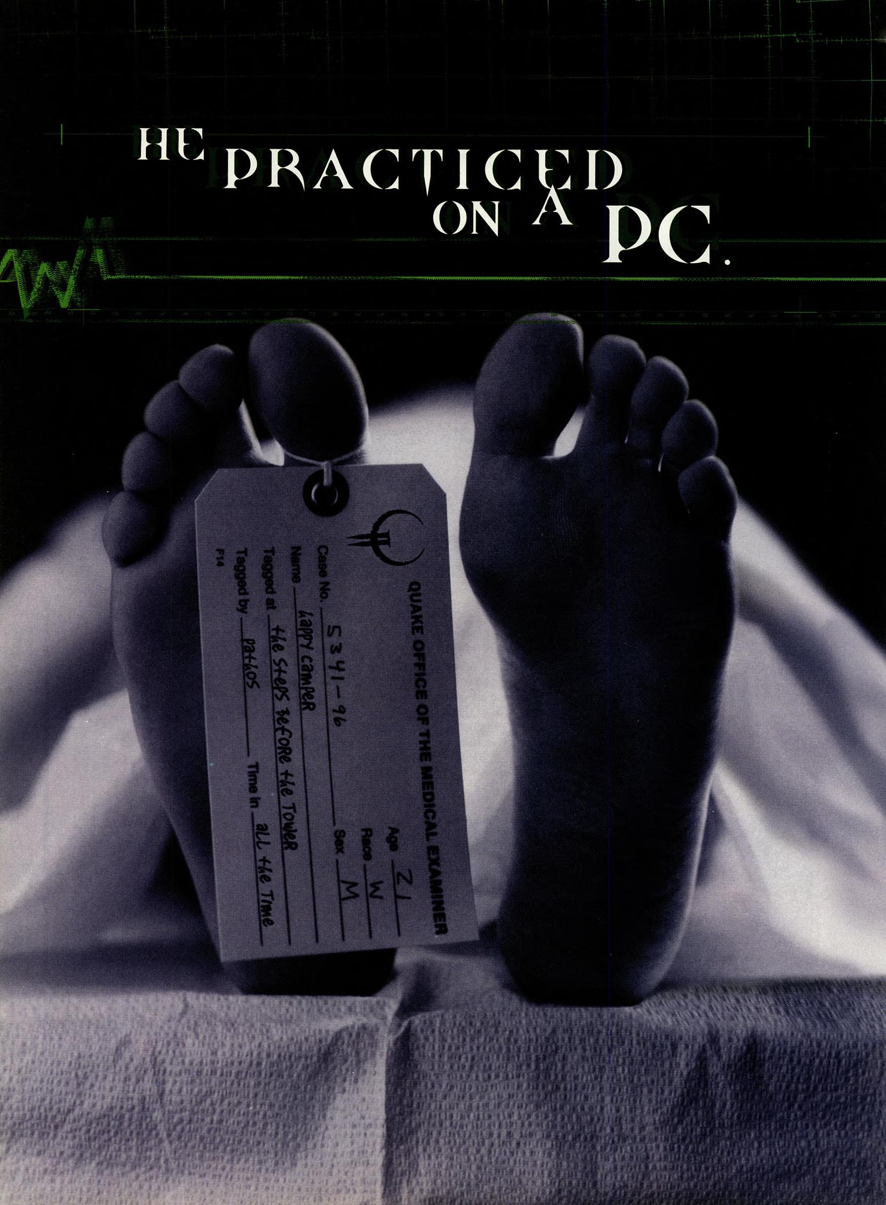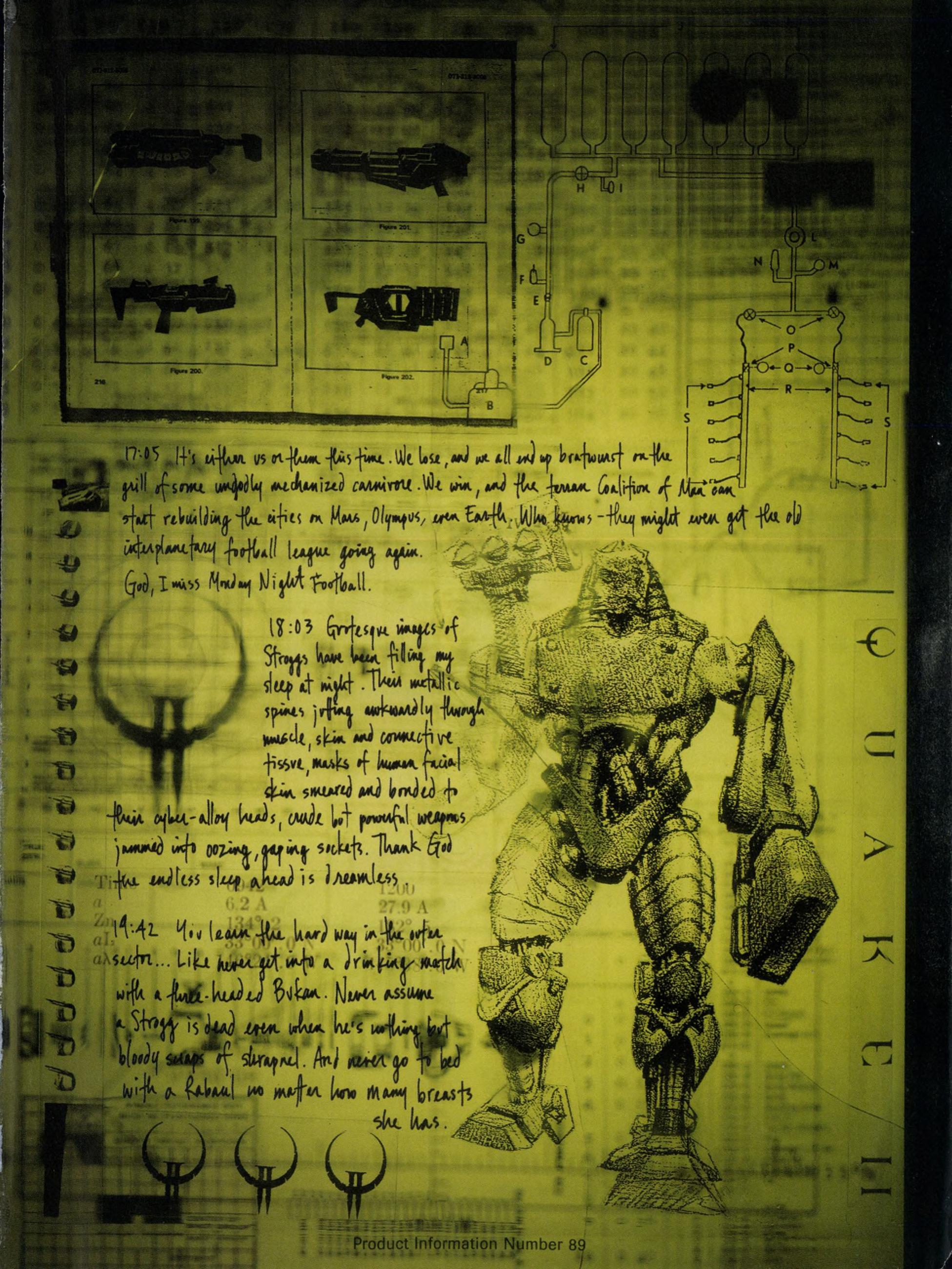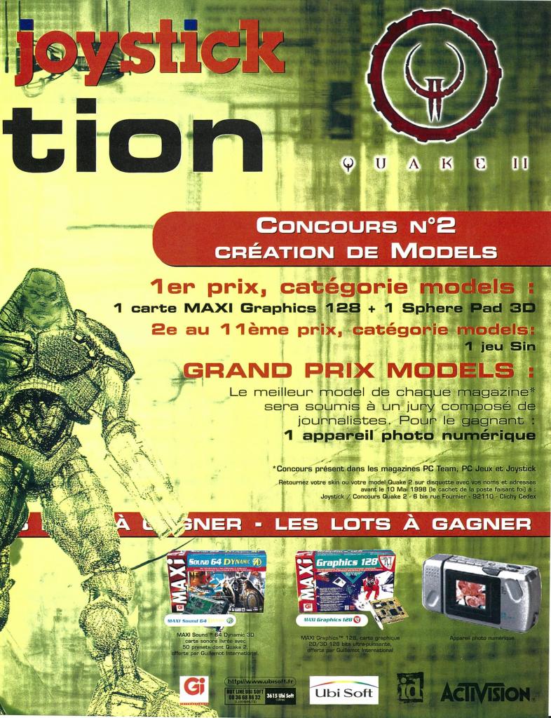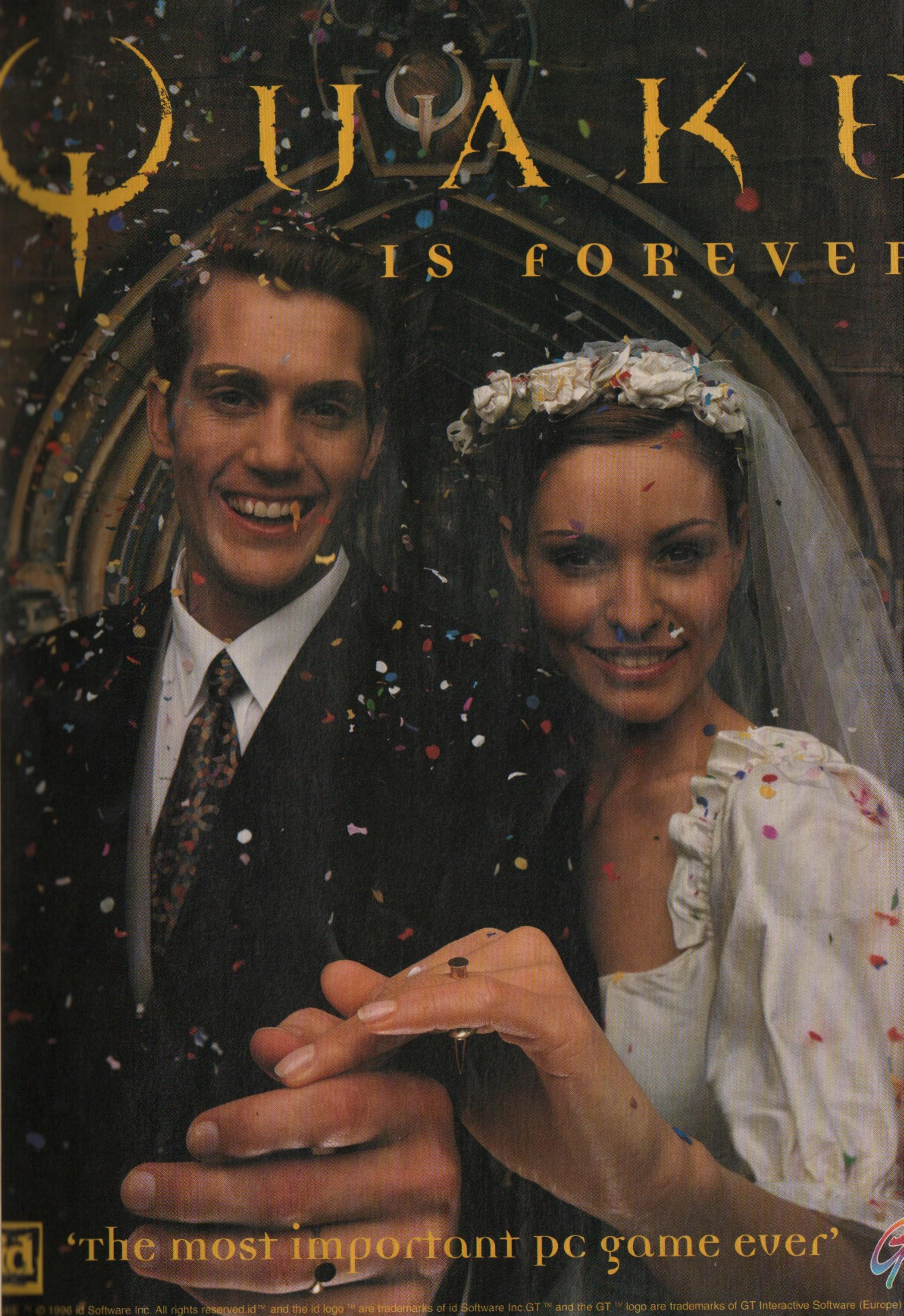 “QUAKE II — the most anticipated game of the year. Internet play has 200 Deathmatch Capability. Larger, mission based levels. Fully interactive environments. Superior enemy AI. Futuristic (sci-fi) setting. AVAILABLE NOW.“