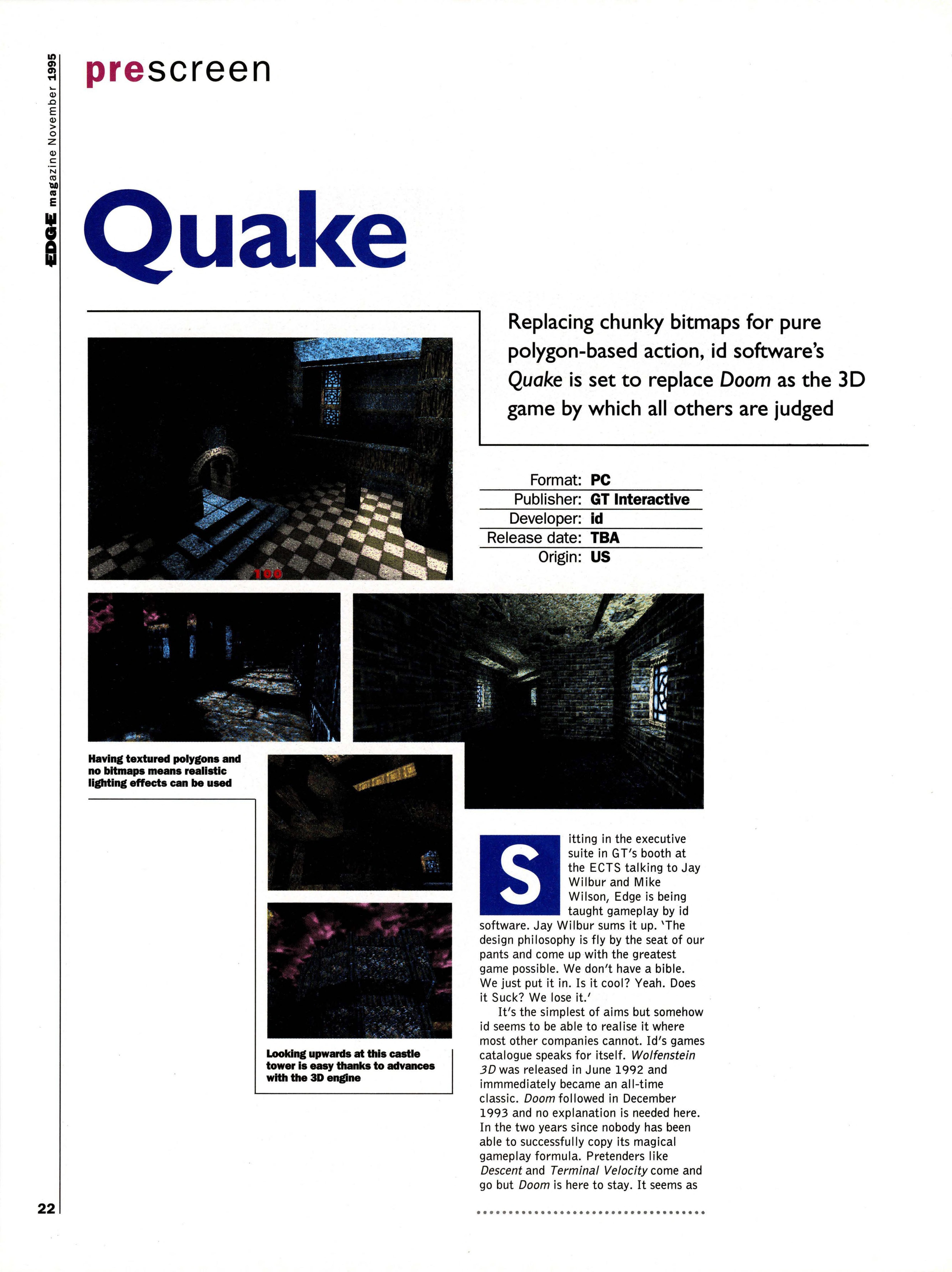 Quake II Magazine Archive: id Software – Quake I On January 30, 2021February 2, 2021 By DondeIn Entities, ID Software, Magazine archive, Mods -All images are courtesy of the Internet Archive magazine collection.