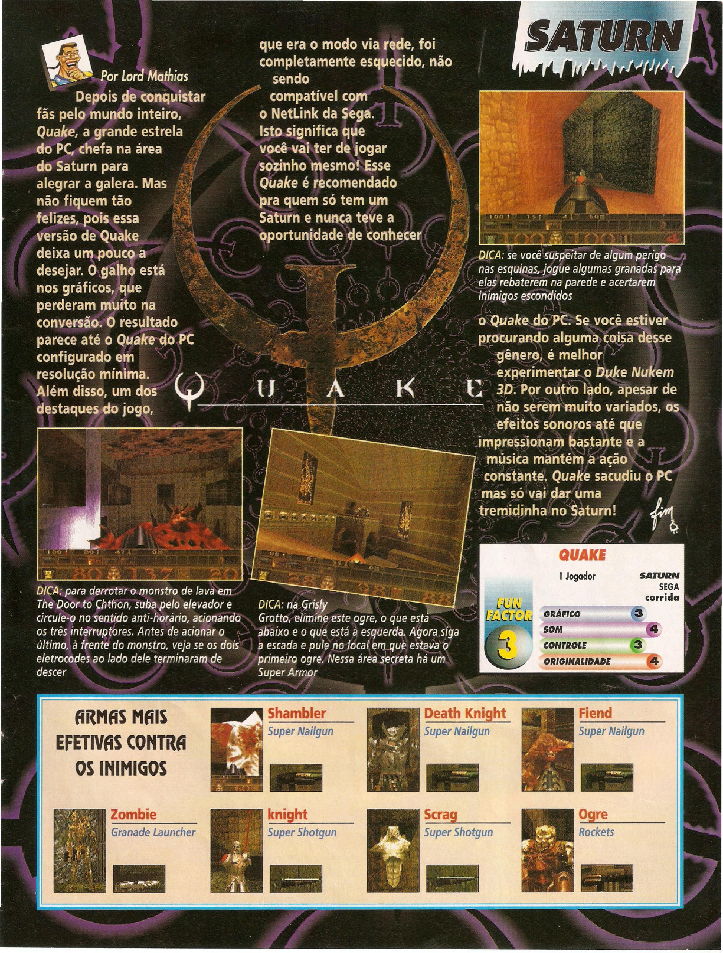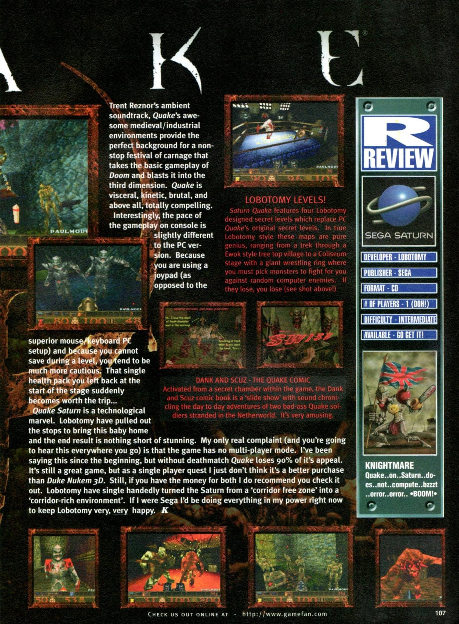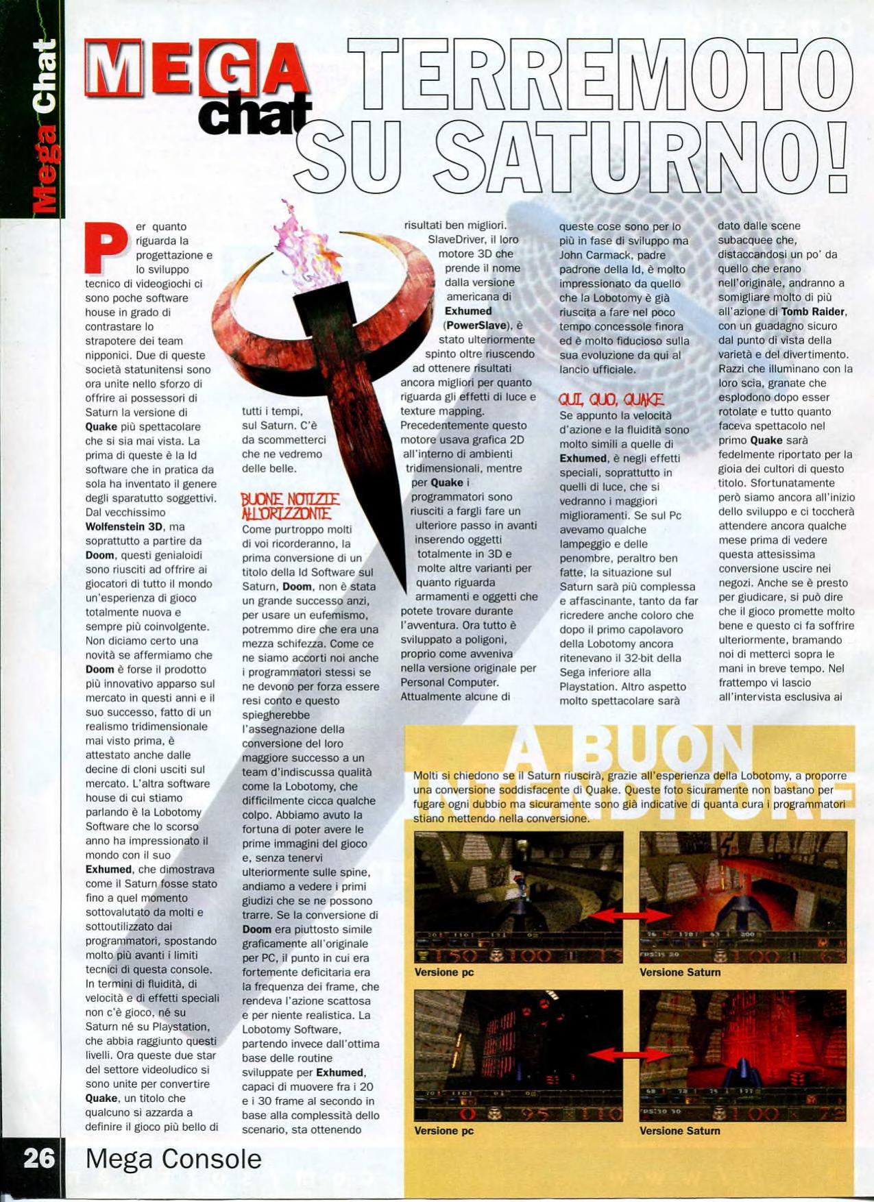 “GameFan: Quake runs on a minimum spec PC of a Pentium 60 with 8 megs of RAM. Just how on earth is the Sega Saturn going to cope?!