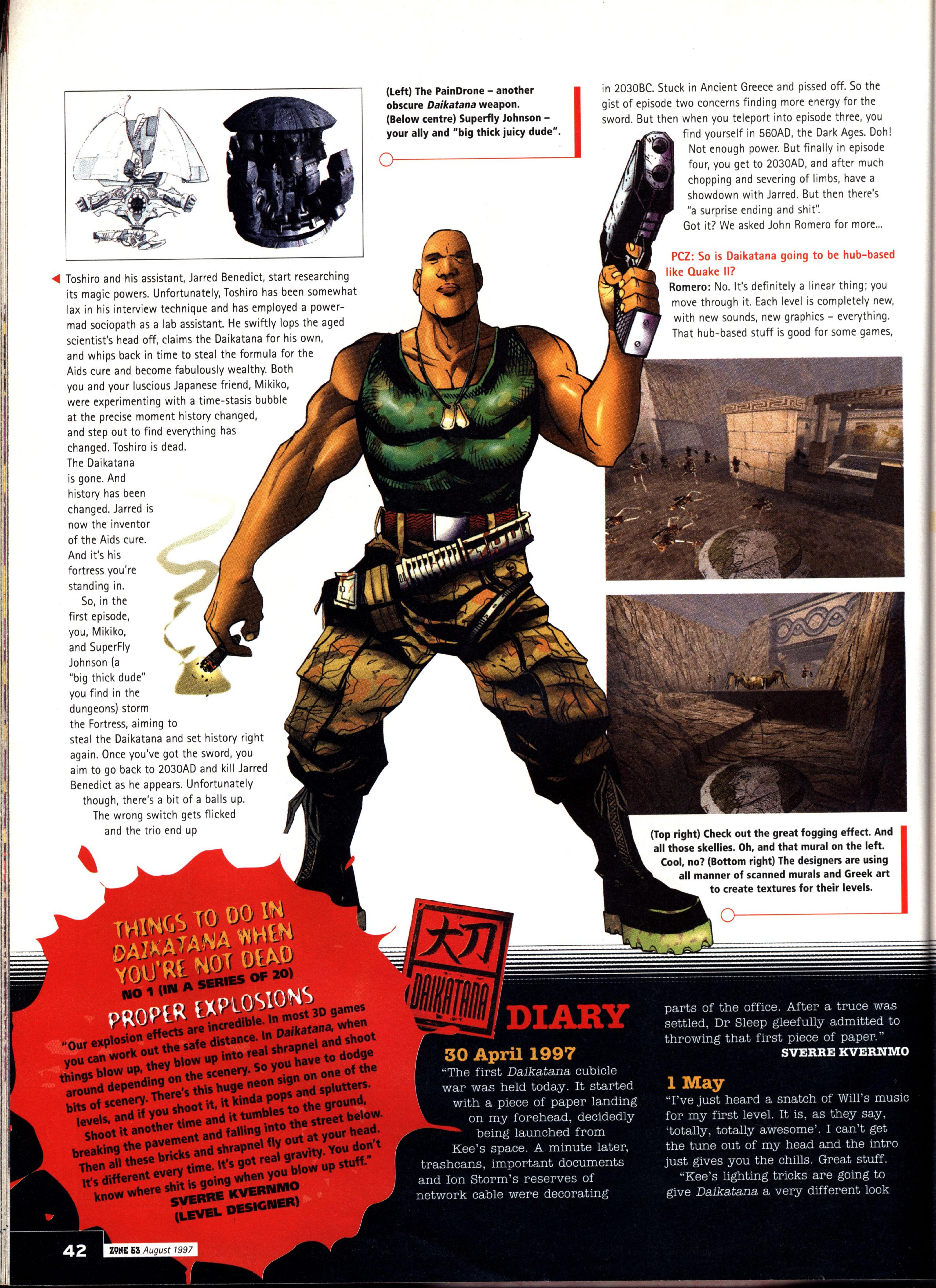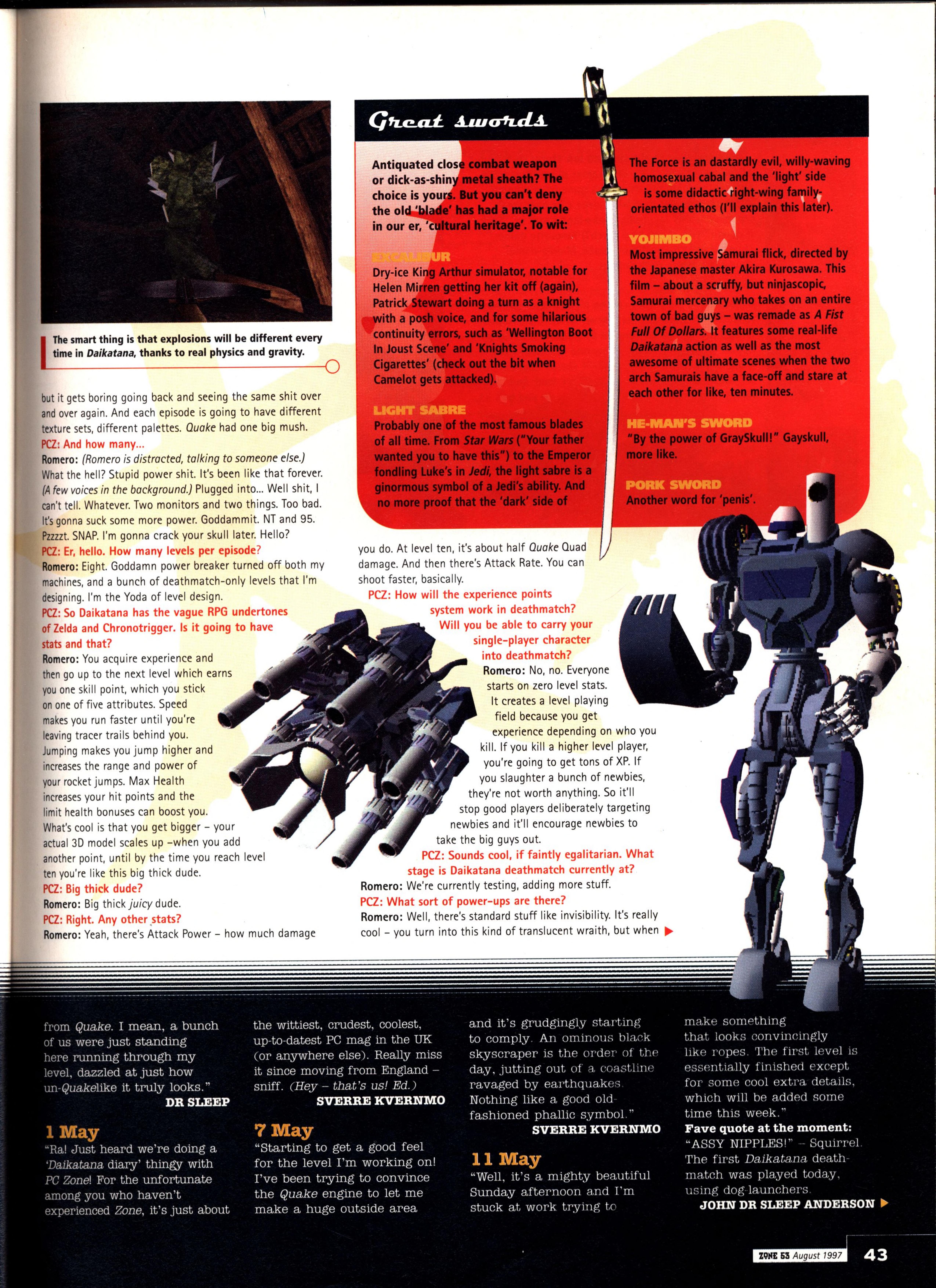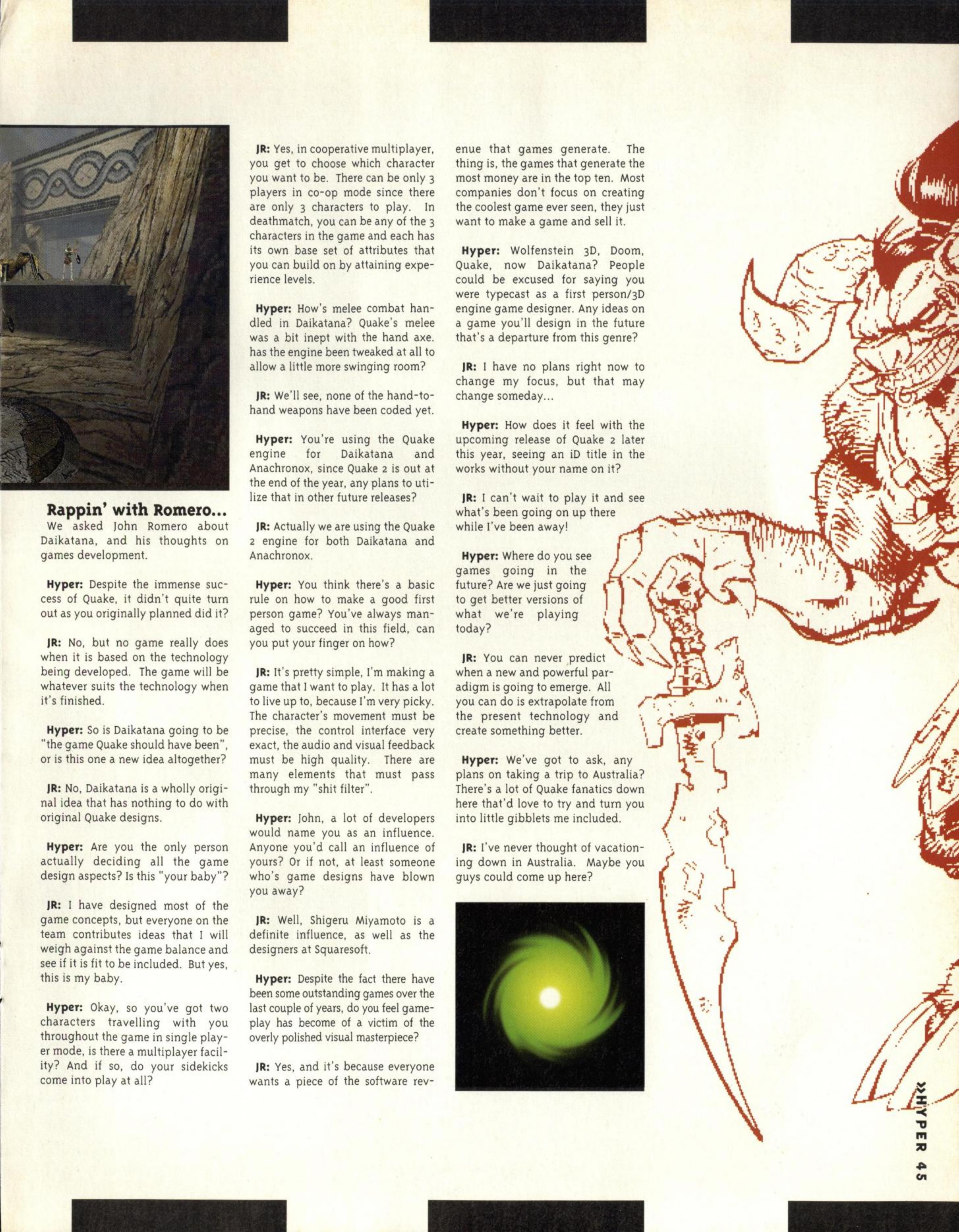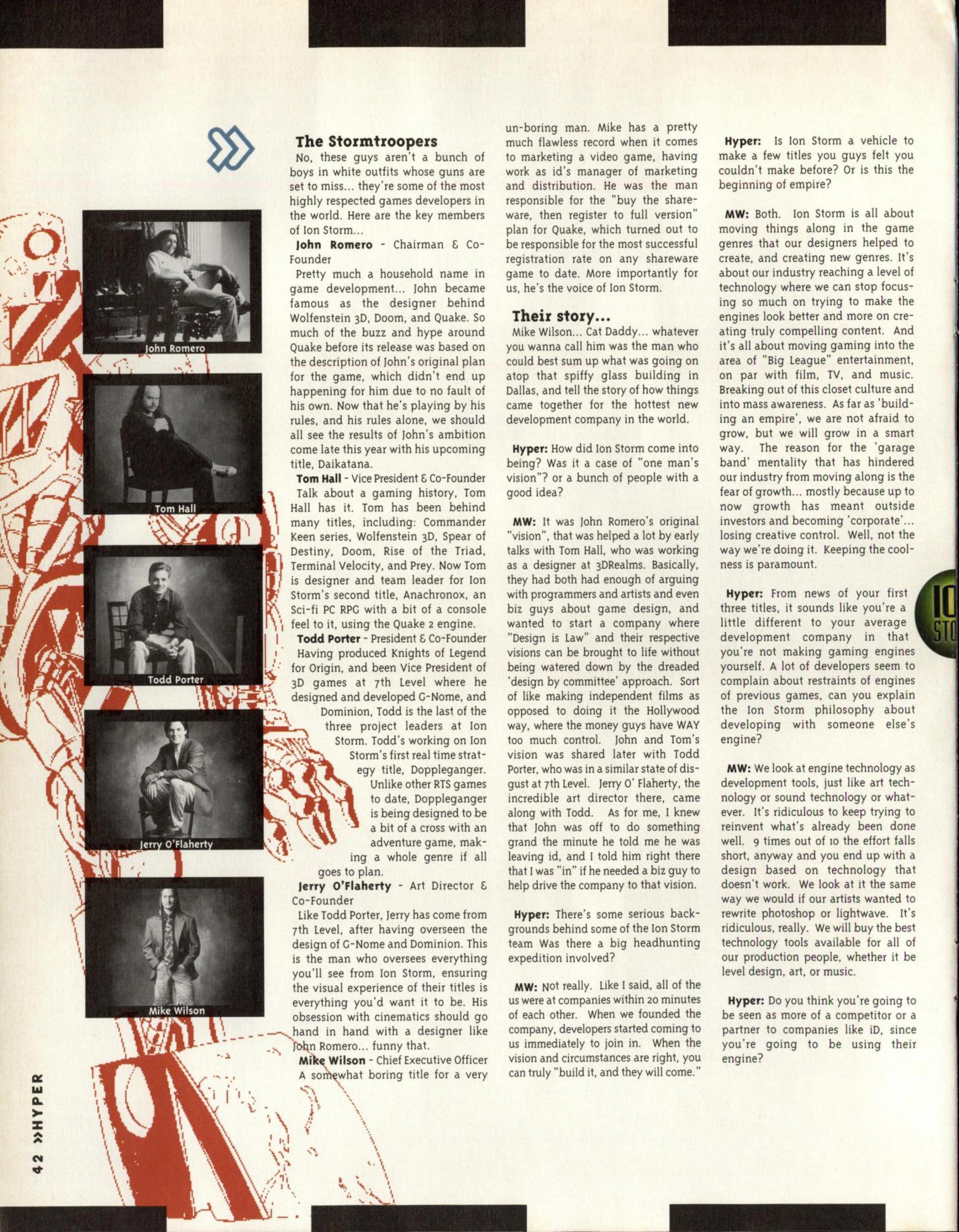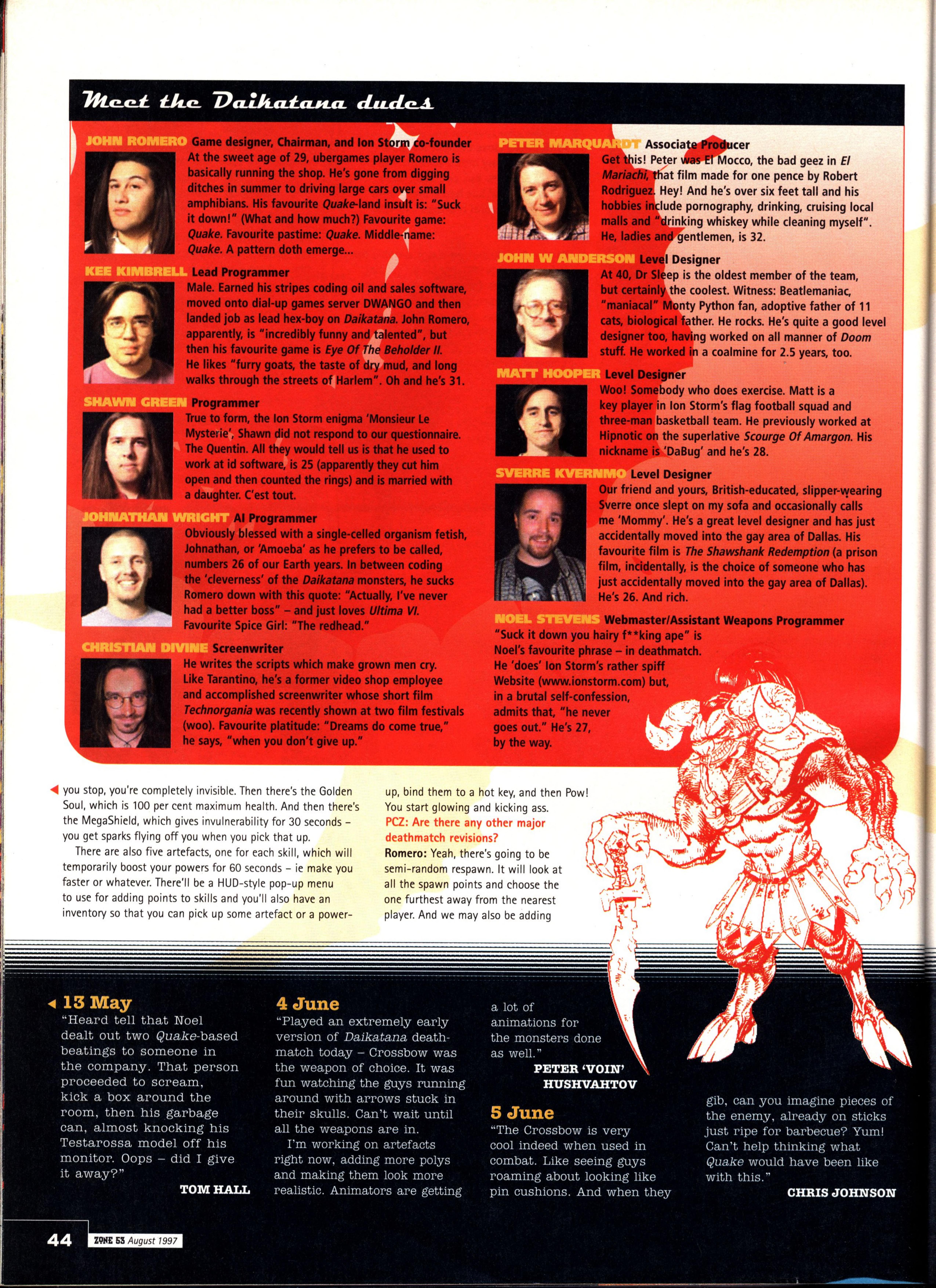 “Few new details about the game were forthcoming, bar a reiteration that Quake II is a complete redesign with nothing carried over from the original game concept except for the Quake Unified Engine (a new version which integrates 3D accelerator support, Windows 95/NT and Internet gameplay all in one bite-sized EXE). So total is the redesign, in fact, that the name ‘Quake‘ may even be dropped.”