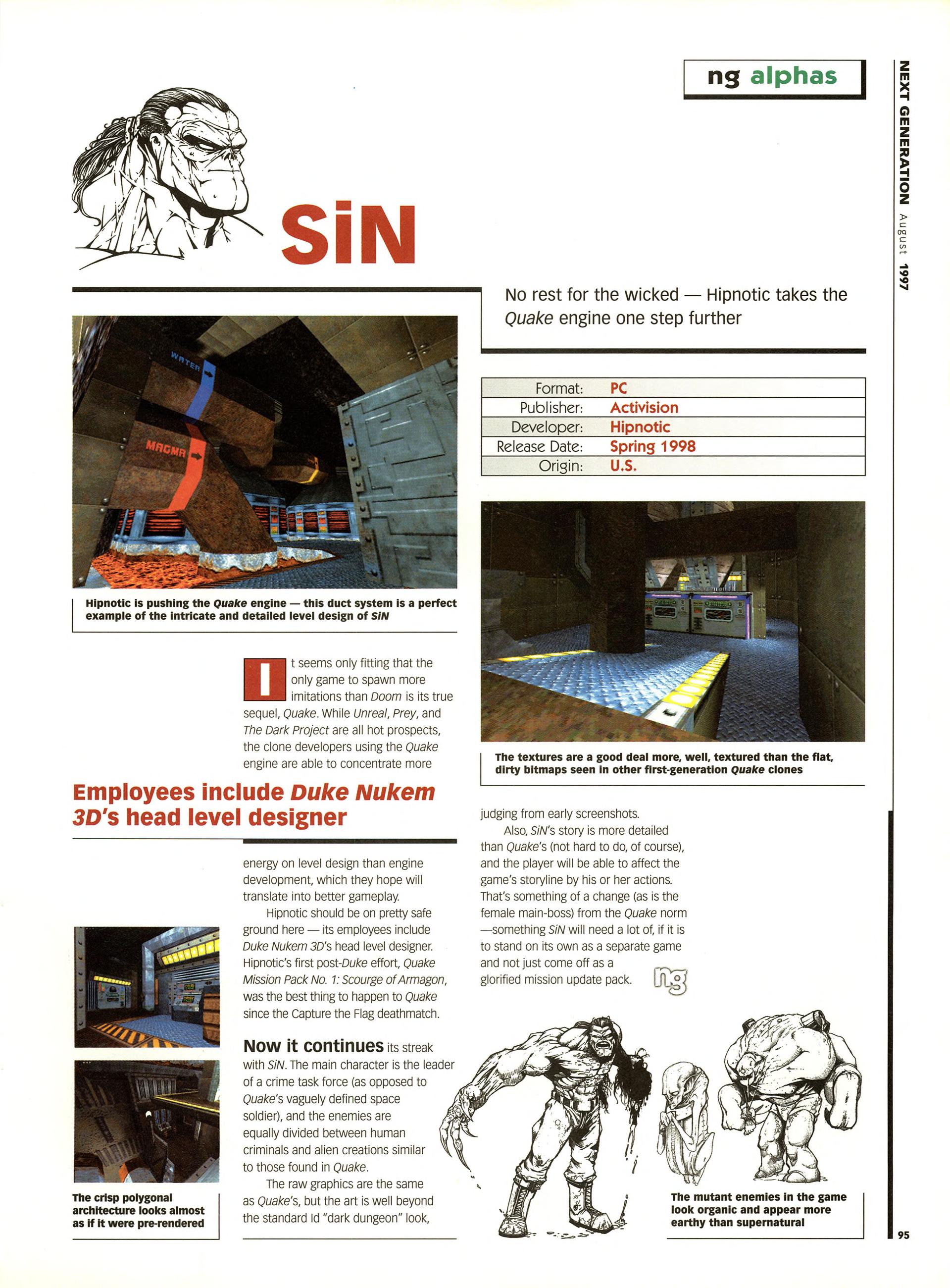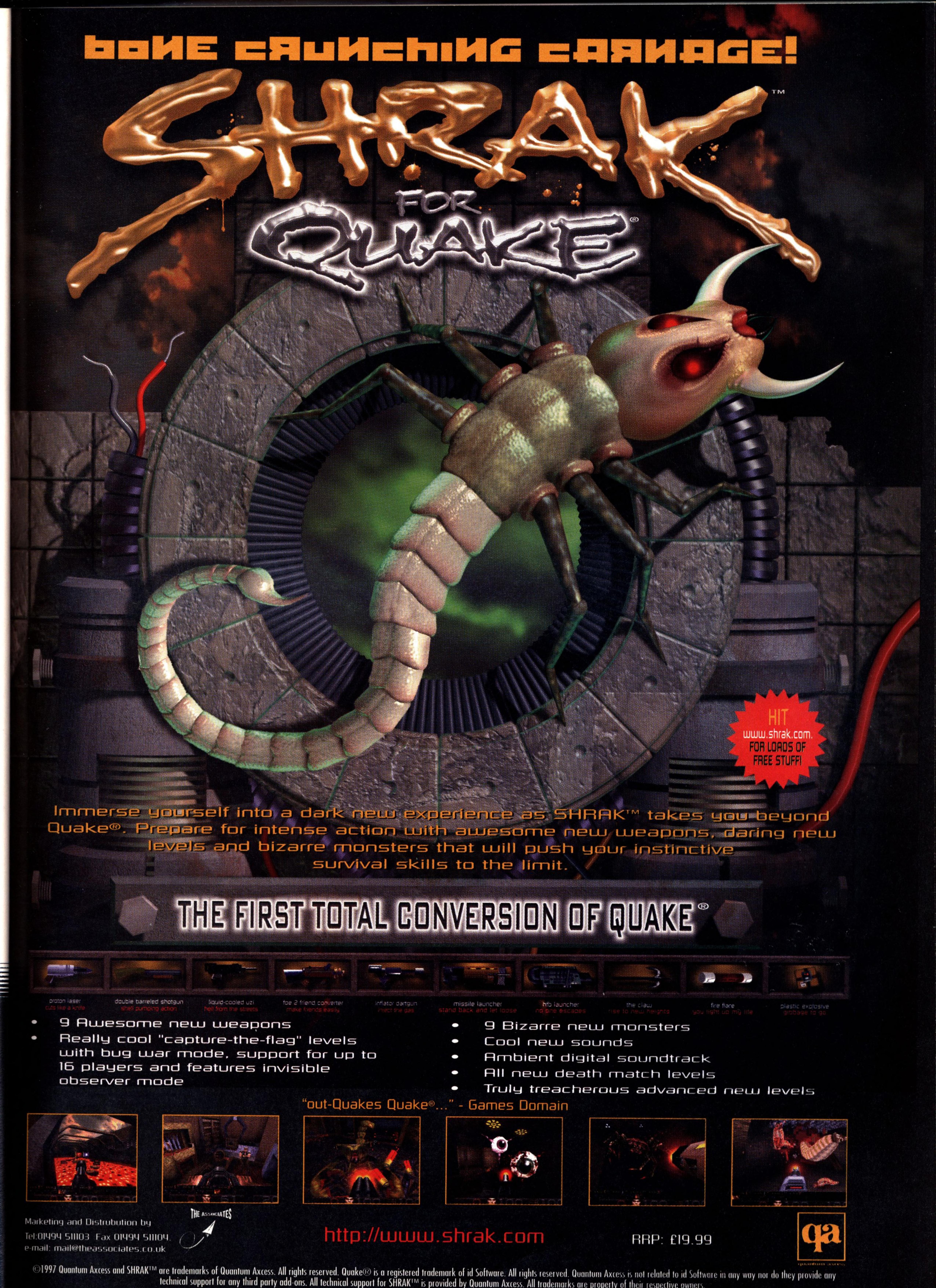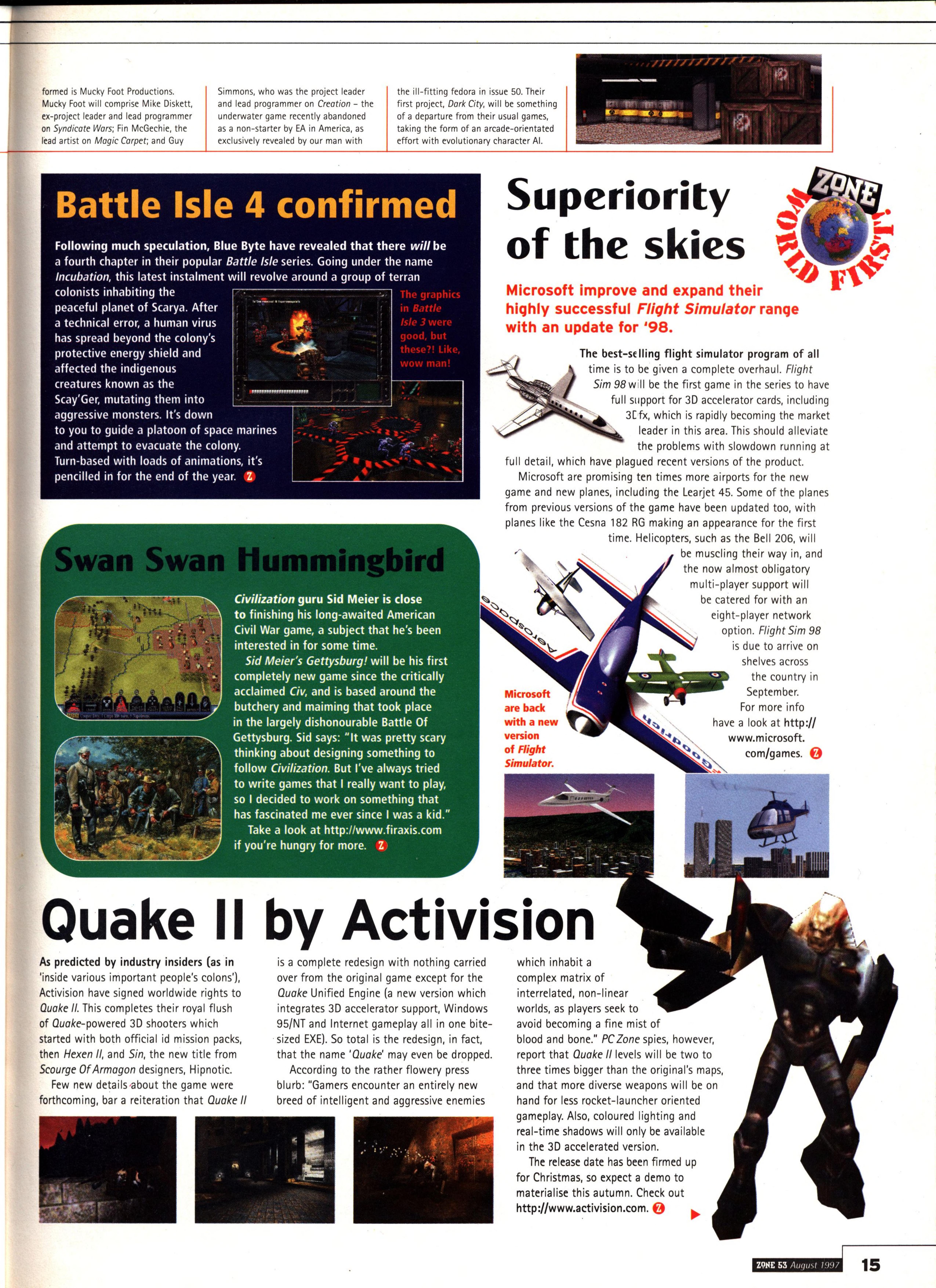“As predicted by industry insiders (as in ‘inside various important people’s colons’), Activision have signed worldwide rights to Quake II. This completes their royal flush of Quake-powered 3D shooters which started with both official id mission packs, then Hexen II, and Sin, the new title from Scourge of Armagon designers, Hipnotic.”