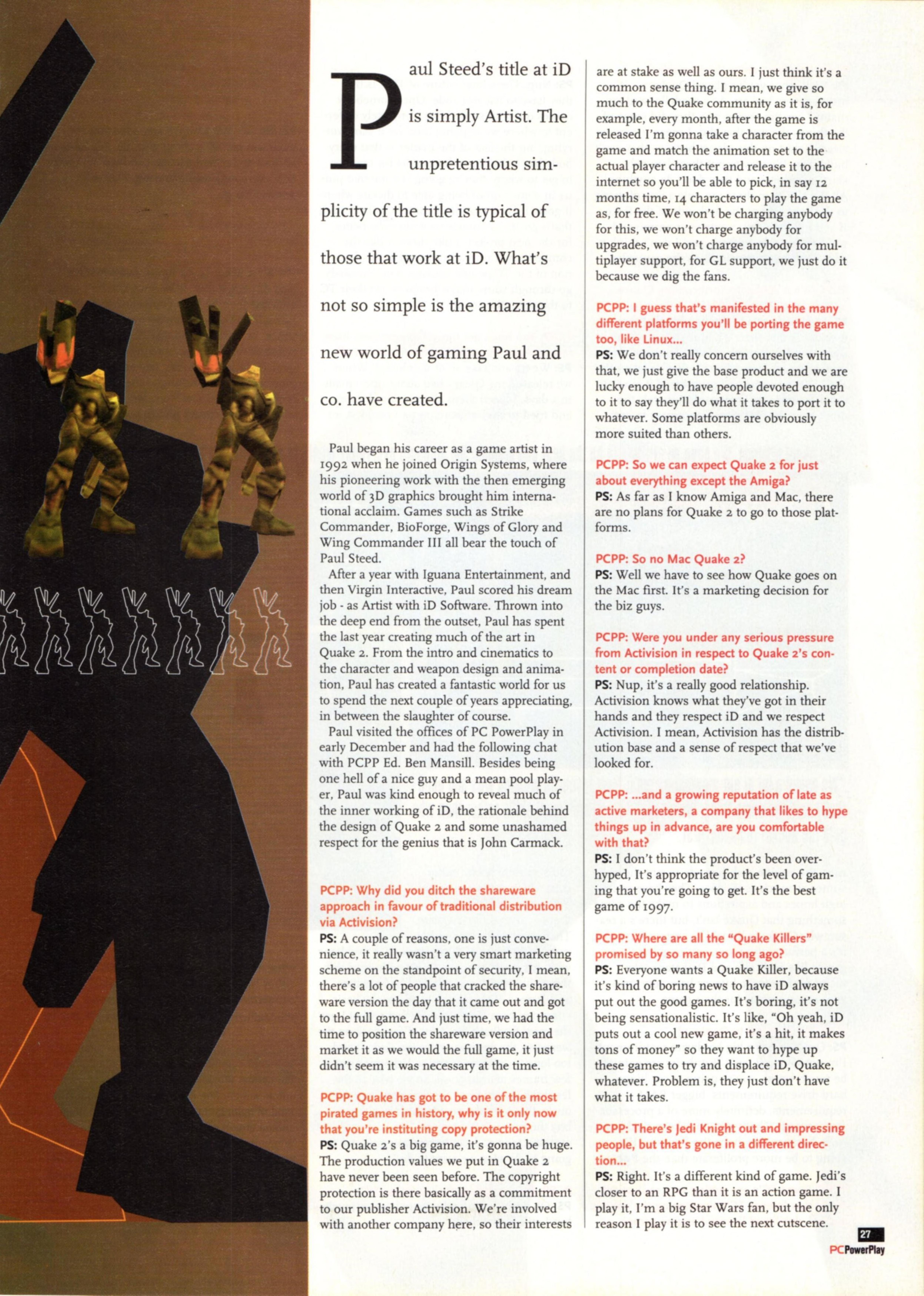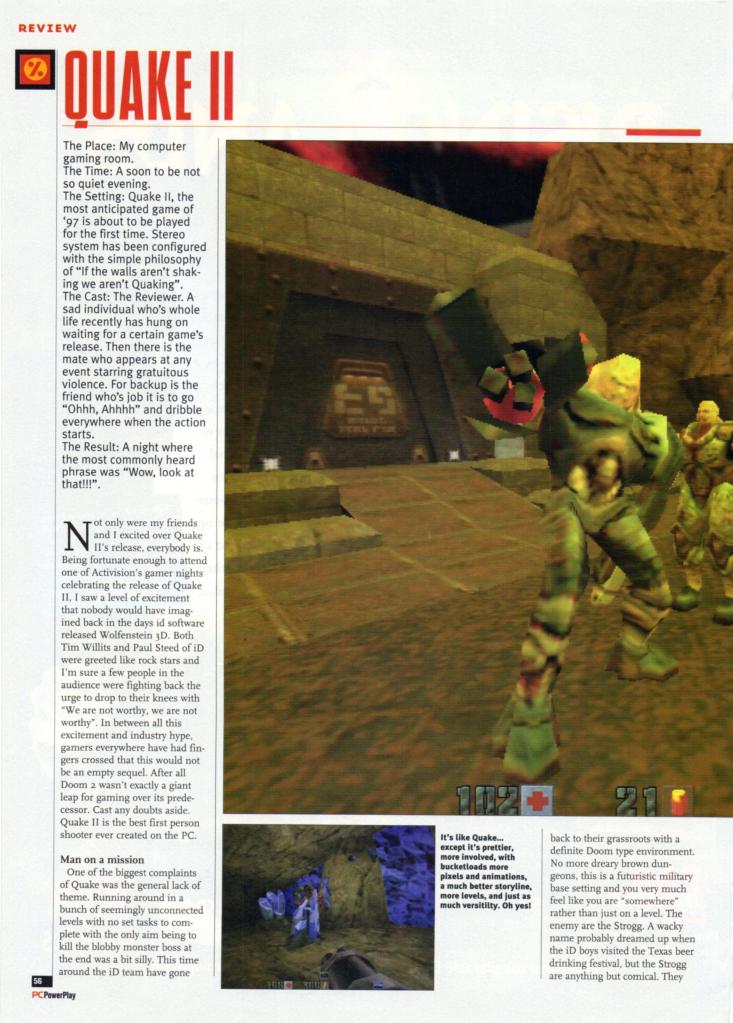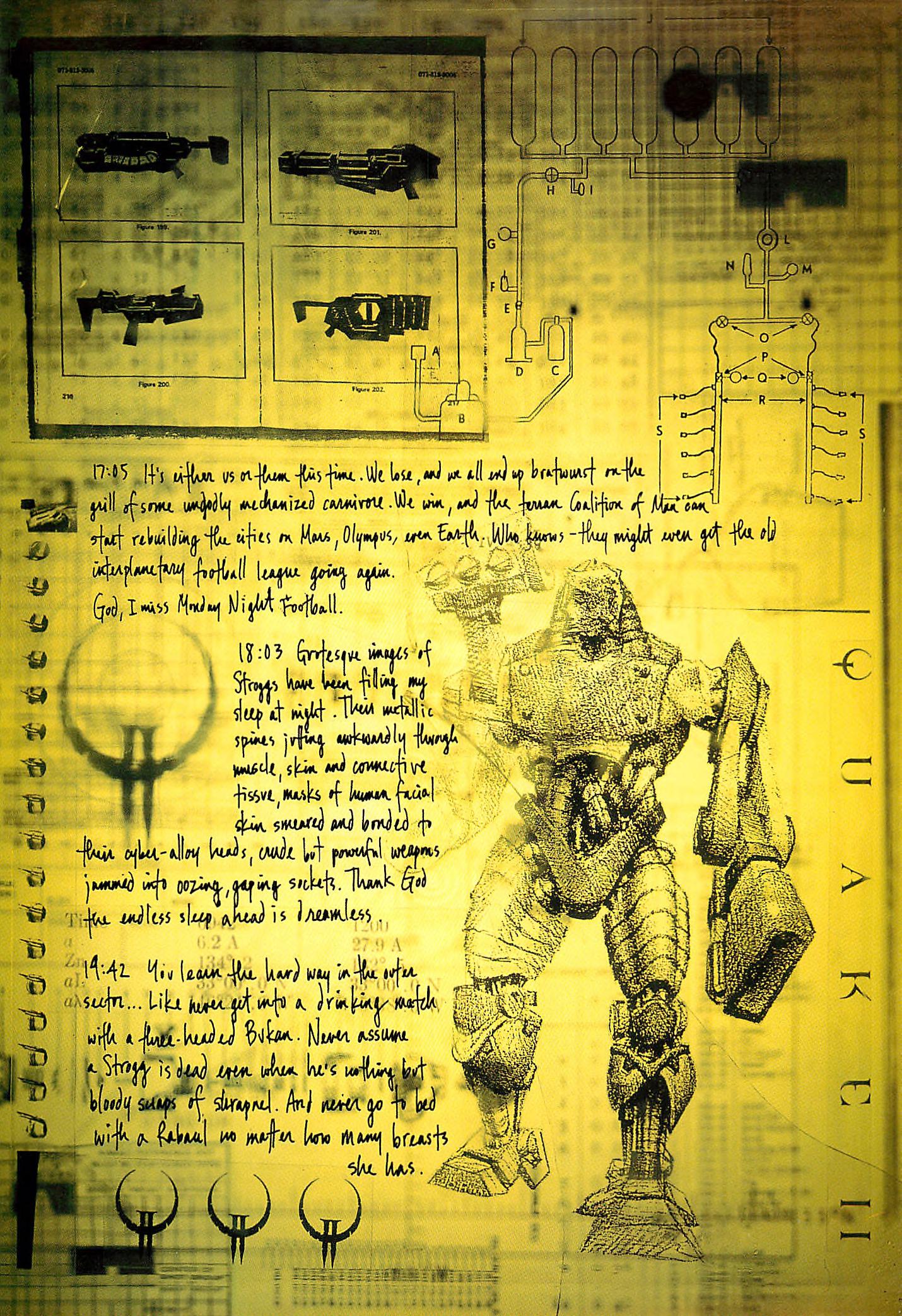 “Grotesque images of Stroggs have been filling my sleep at night. Their metallic spines jutting awkwardly through muscle, skin and connective tissue, masks of human facial skin smeared and bonded to their cyber-alloy heads, crude but powerful weapons jammed into oozing, gaping sockets. Thank God the endless sleep ahead is dreamless.”