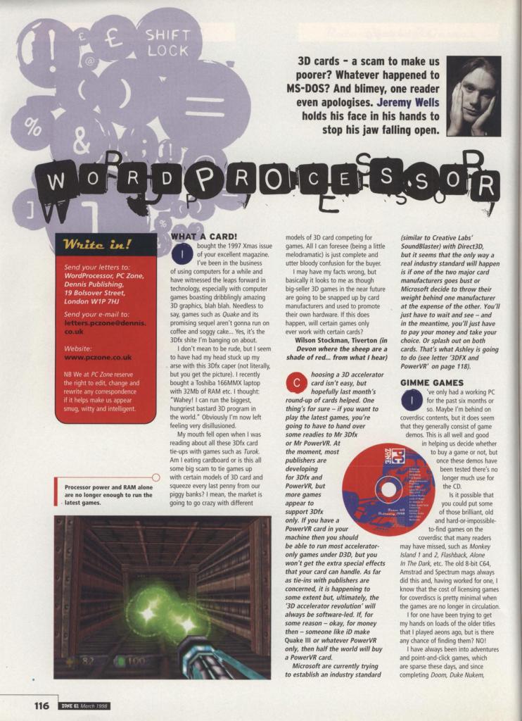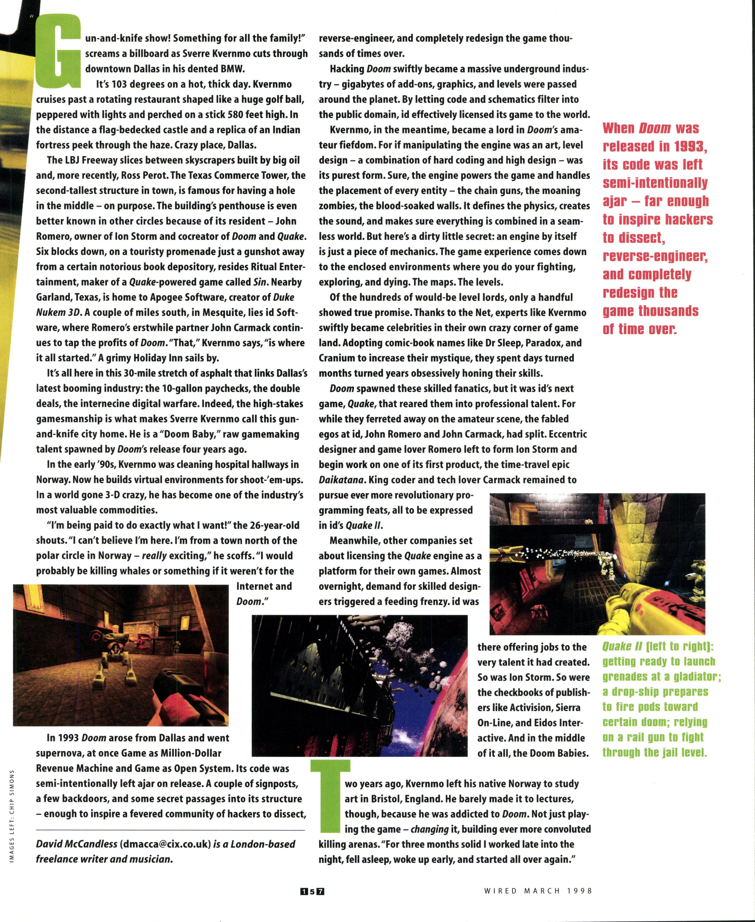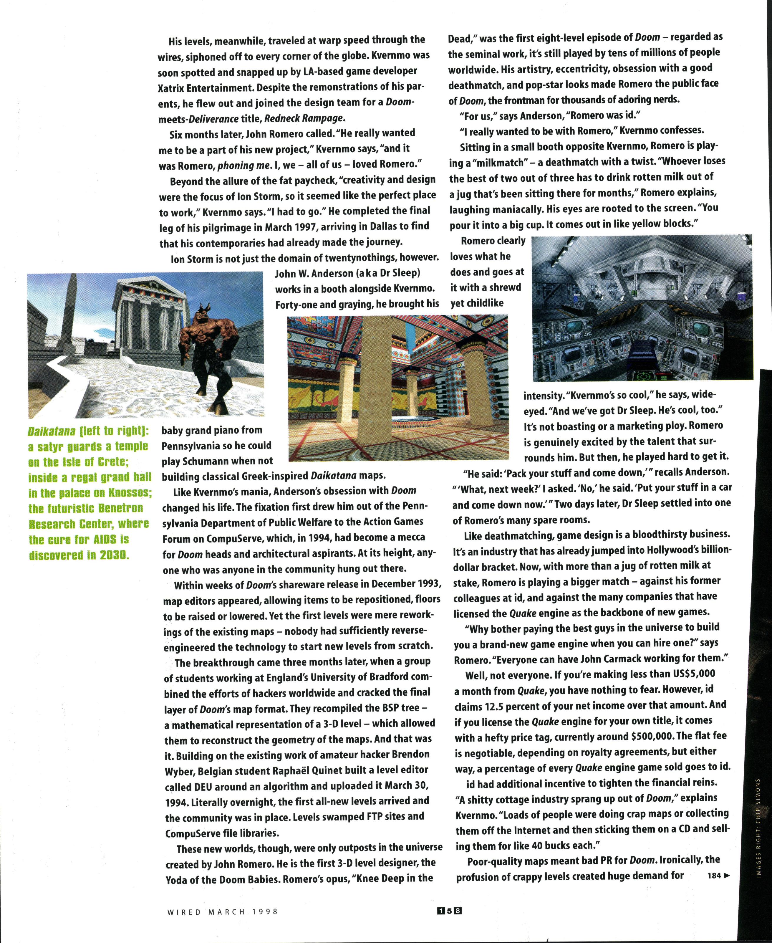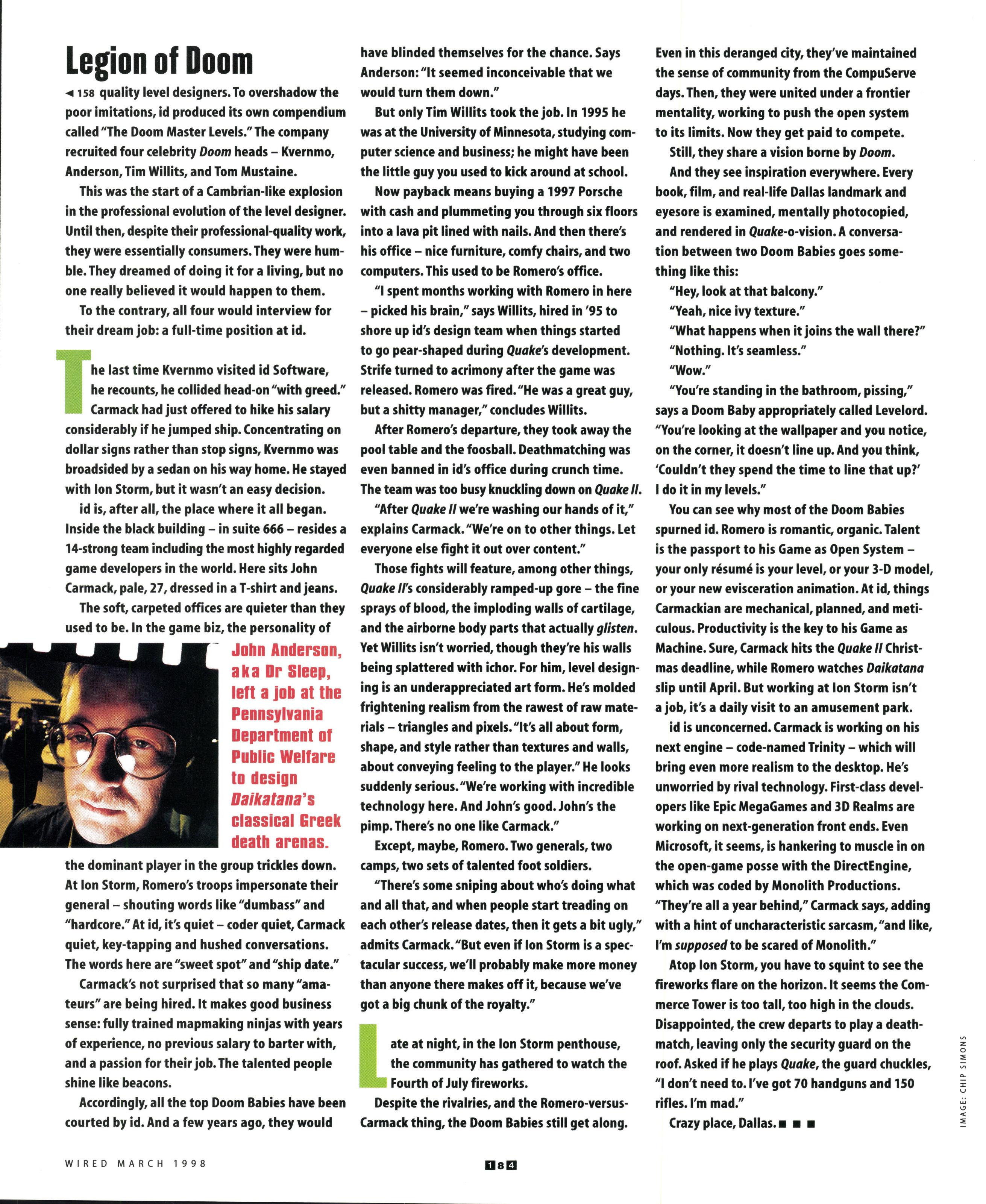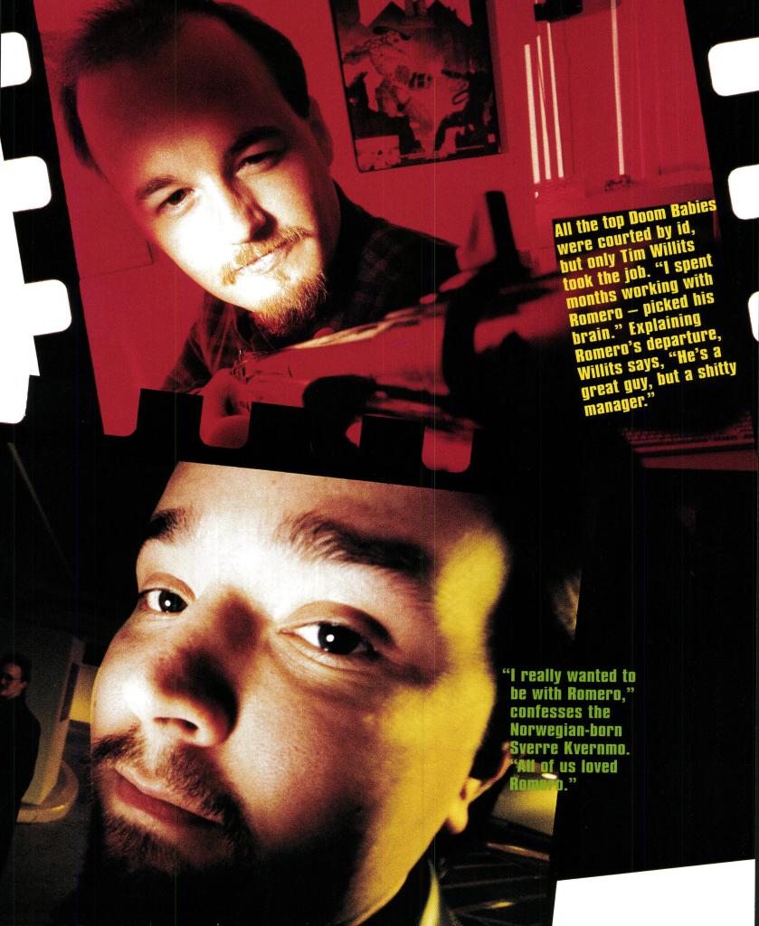 “All the top Doom Babies were courted by id, but only Tim Willits took the job. ‘I spent months working with Romero – picked his brain.’ Explaining Romero’s departure, Willits says, ‘He’s a great guy, but a shitty manager.'”