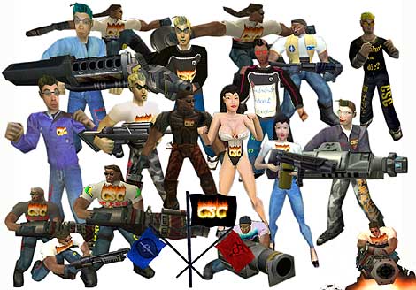 "DQC is a Quake club formed in February 1999 under the name of 'Dame Quaker's Club' to exchange information on Quake 2 Deathmatch. Originally the current members BV and R-STAR started small, and then DQC entered the online battle Quake 2 at Ultra Violence Pasadena. And now the chatty Kathy who was a resident member at that time has become a useless PC bastard (^ ^; Steadily increased to the present. Jimmy Jazz, who has become famous for his suspicious audio goods, is also a member from the beginning." -R-STAR