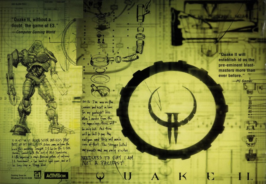 "'We've built an entire world. It's not like Quake — four episodes of unrelated crap — we've built a planet and a race of aliens. We have areas in the game that people can identify with — bunkers, hangars, warehouses, power stations and stuff. And then we've established missions and goals for each area. We wanted people to believe they were in a real place.' This is Tim Willits talking. He's lead level designer on Quake II."