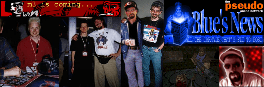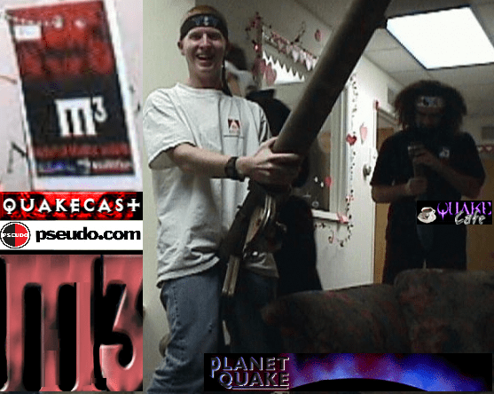 "M3: Manhattan Memorial (day) Marathon. m3 was a quake LAN party in NYC, May 23-May 26, 1997. m3 was free, and was held at Pseudo Online (home of quakecast). although m3 was byoc, many quakers graciously left their computers on, explicitly allowing those without computers to play quake. m3 was sponsored by the cyberweb cafe, pseudo online, and planetquake."