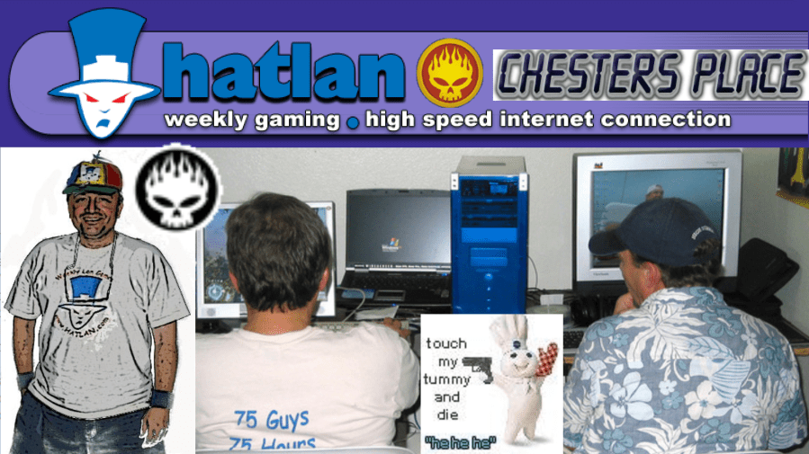 "HatLan on 10/2/04 in Anaheim: 50 year birthdays with 50 players! HatTriQk and G1zm0 put together equal 100 years old for our next big party! Even our host BadDos is having his birthday on the party day! That's 124 years! Doom3, Far Cry, UT2004 and Quake 2 ???"
