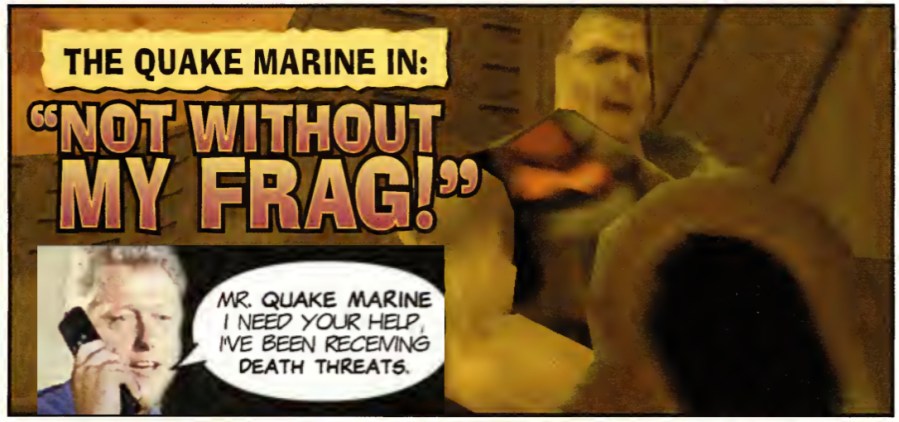 In the previous installment, Quake Marine saved US President Bill Clinton from the insidious deer. In the far future, an older, wiser Quake Marine reflects on his greatest challenge!!!