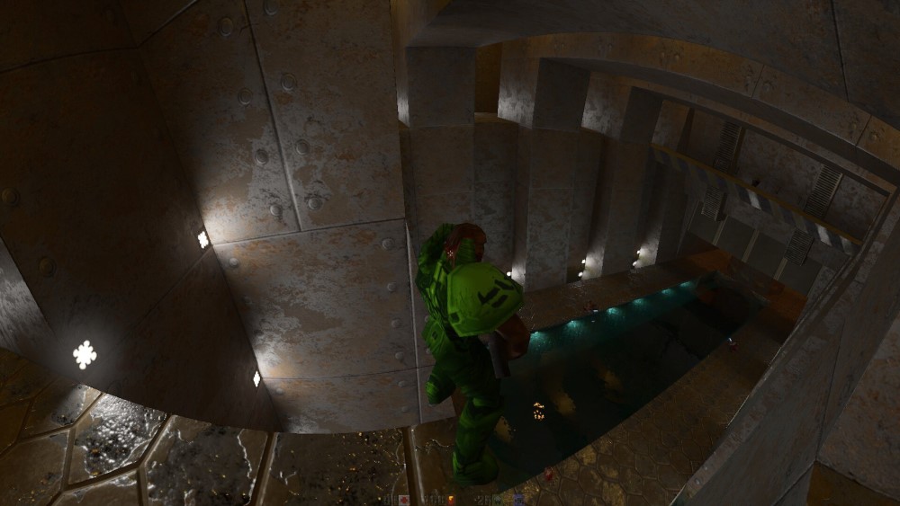 "Those are all Quake 2 textures with a bit of messing about to fit the theme - since doing this I've figured out how Quake 2 RTX materials work and modded it to load higher resolution models in maps so could improve on this a lot. There are a few free photorealistic texture packs out there that include stuff like that but would need some adjustment (roughness/specular, normal and metal/chrome maps) to make them materials in Quake 2 RTX." -Rroff