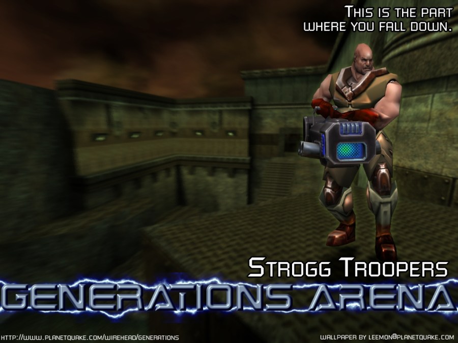 "Generations Arena is a mod for Quake 3 Arena that allows for "generations" from Wolfenstein, Doom, Quake, and Quake 2. The player can also play as a default Quake 3 class. It was made for pure nostalgia and fun, letting people play their favorite Id generation; and is also legal, unlike Q2:Generations."