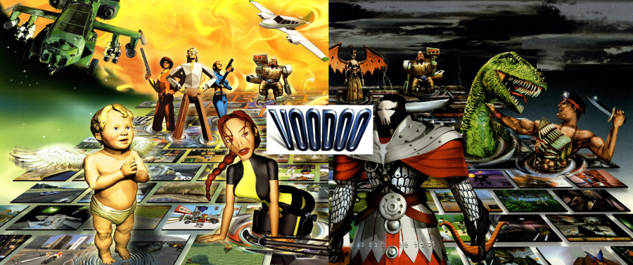 "Dominate the 3D universe with Voodoo acceleration. 3Dfx Interactive delivers the fastest-amazingly fluid 3D ever. The eye-searing graphics and killer special effects in your game arsenal will now run at blazing speed."